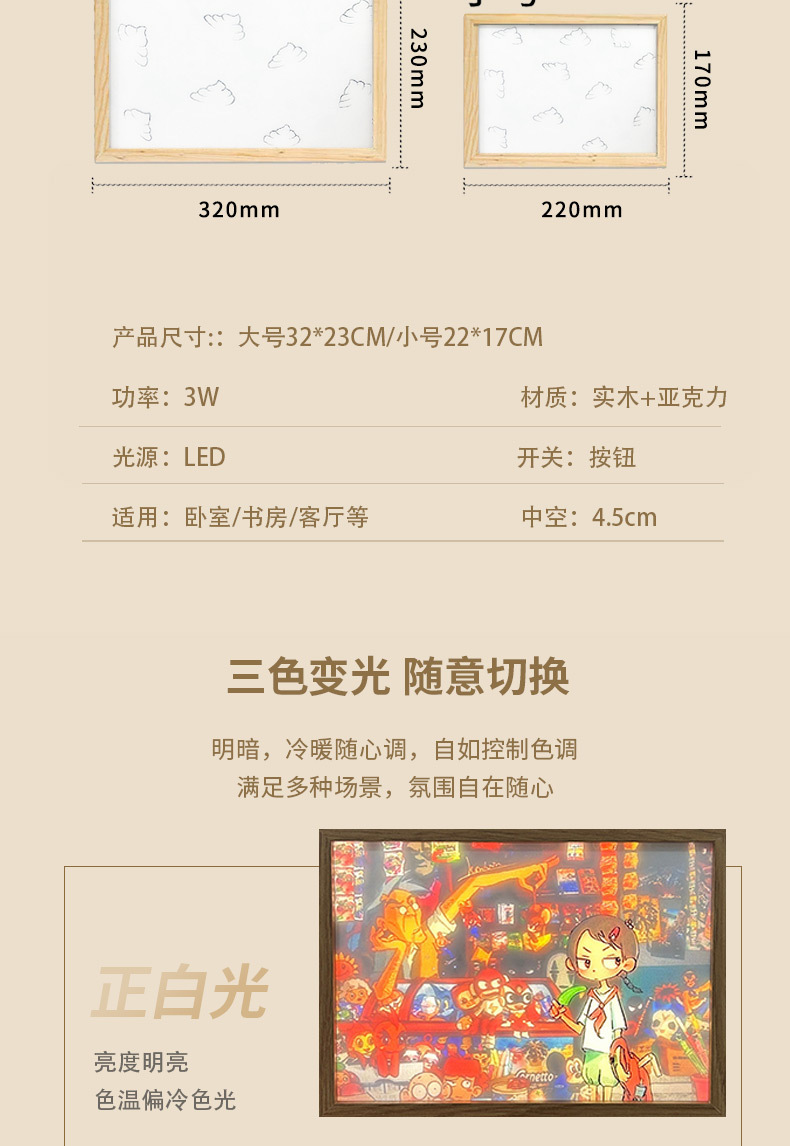 • A4 대형 [USB 플러그인 모델] 우드 컬러 3색 조명
