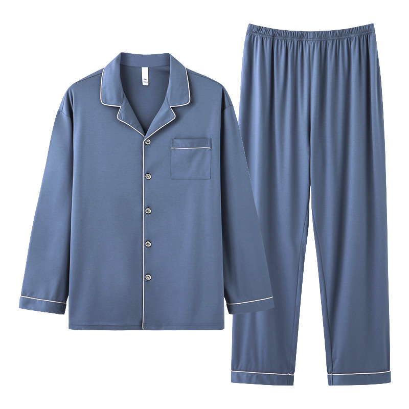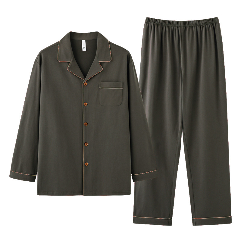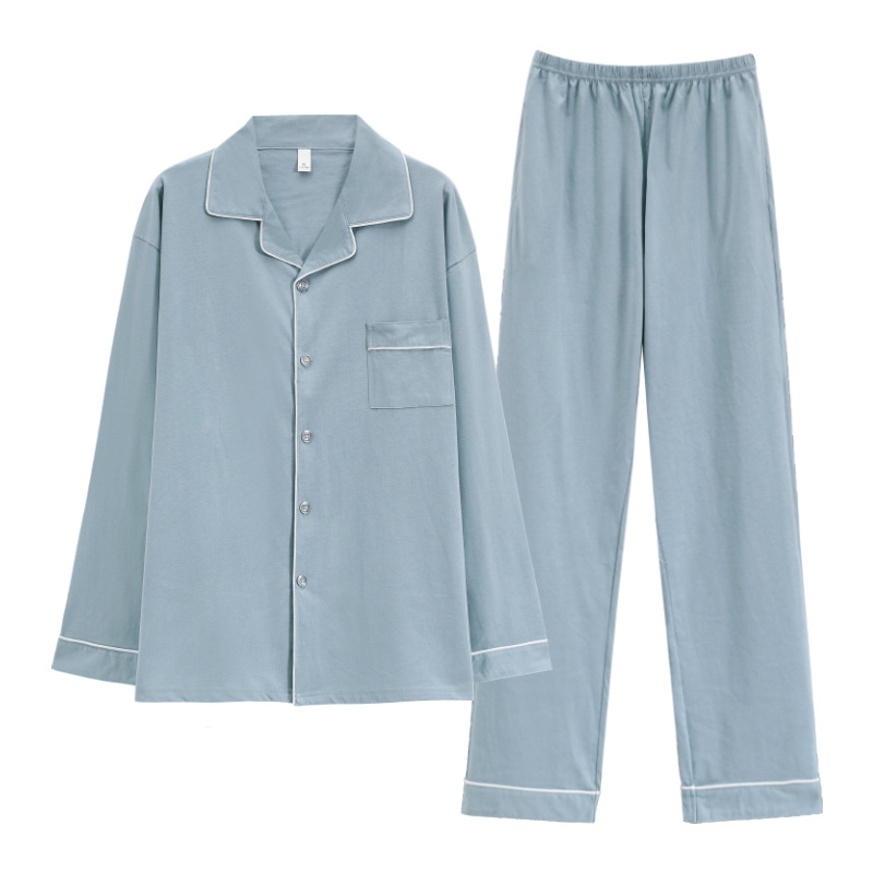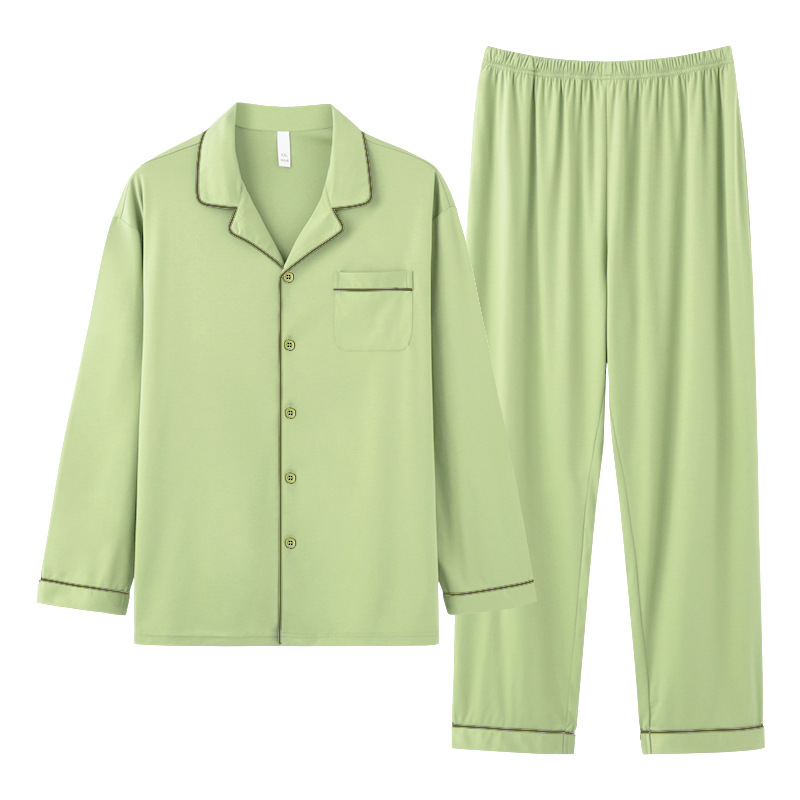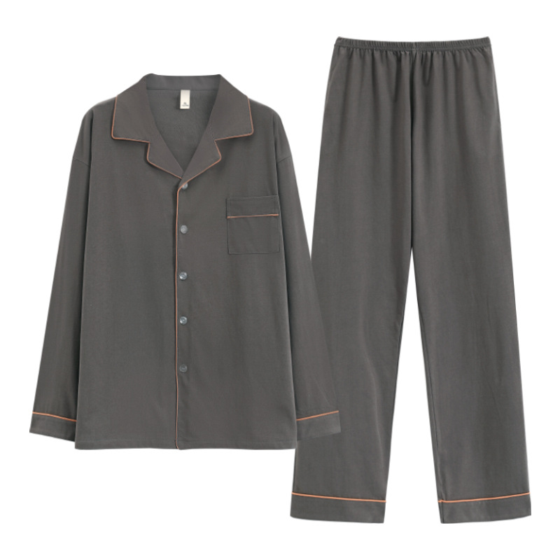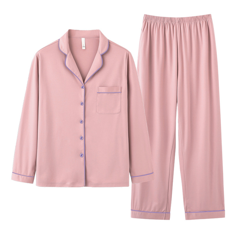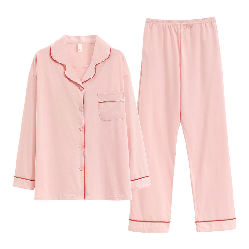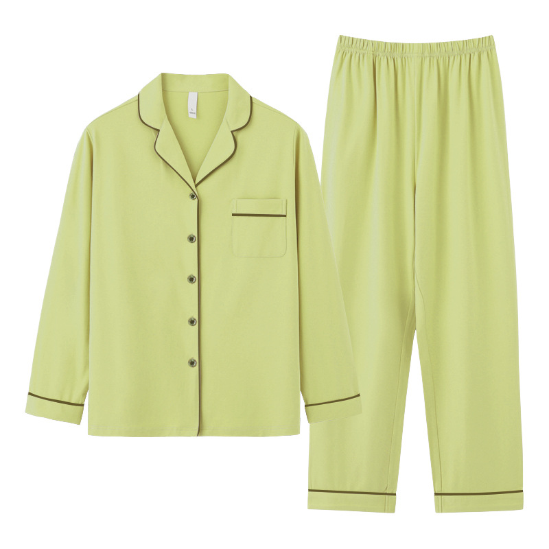 가을과 겨울 커플 잠옷 여자의 봄과 가을 순면 긴 소매 단색 카디건 아웃웨어 플러스 사이즈 가정 의류 남자의 세트