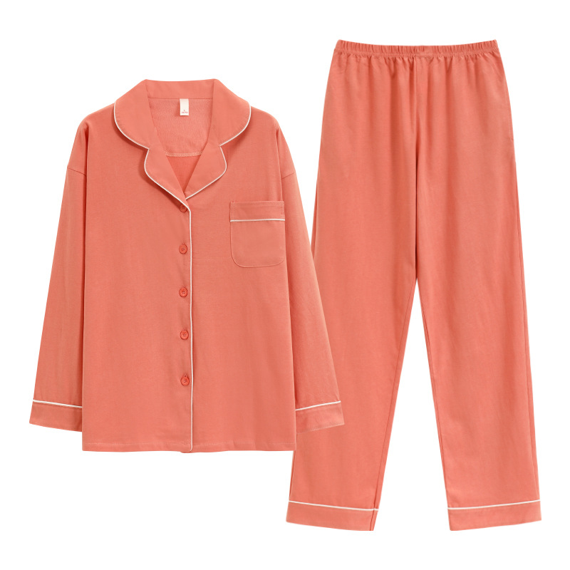 가을과 겨울 커플 잠옷 여자의 봄과 가을 순면 긴 소매 단색 카디건 아웃웨어 플러스 사이즈 가정 의류 남자의 세트스토어 가기