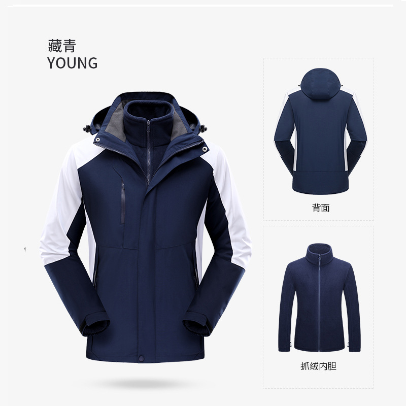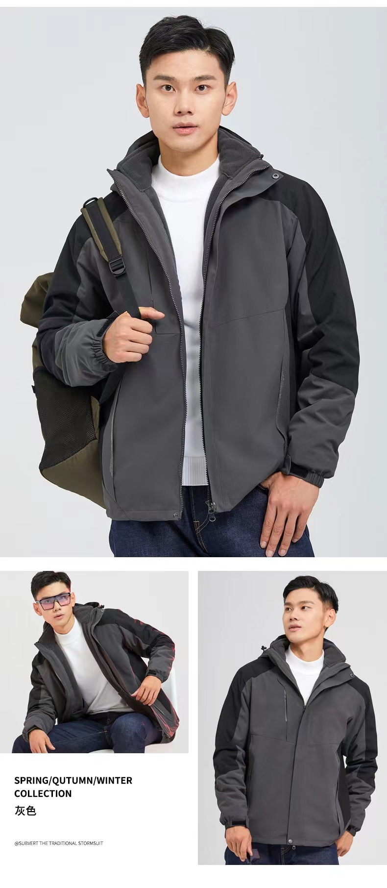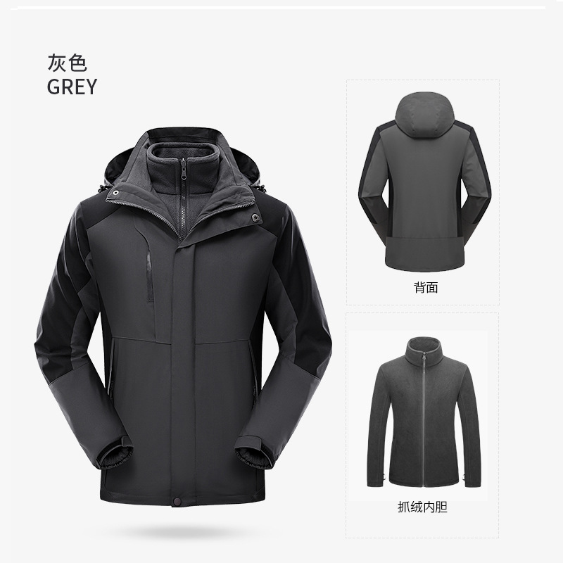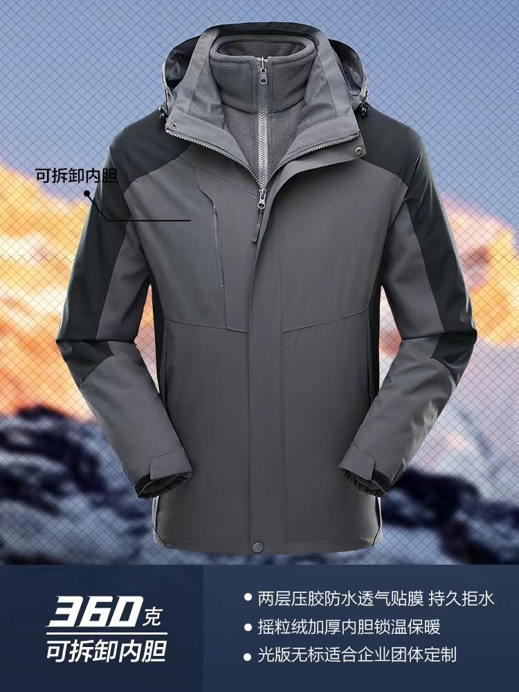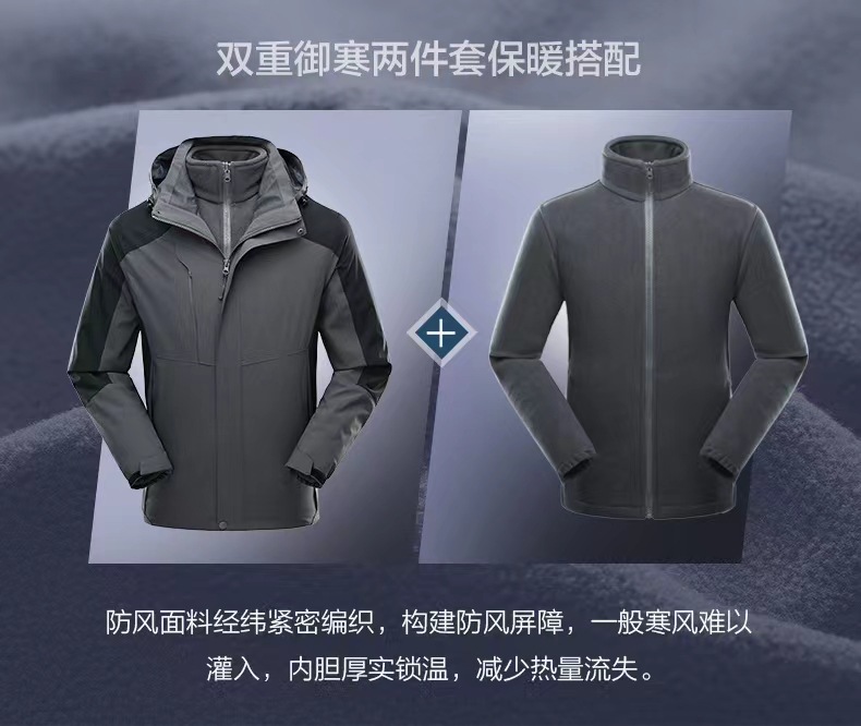 자수 재킷 남자의 3-in-1 방수 재킷 야외 등산 세트 방풍 기모 작업복 세트 로고