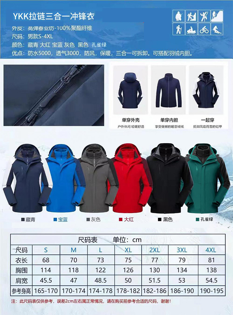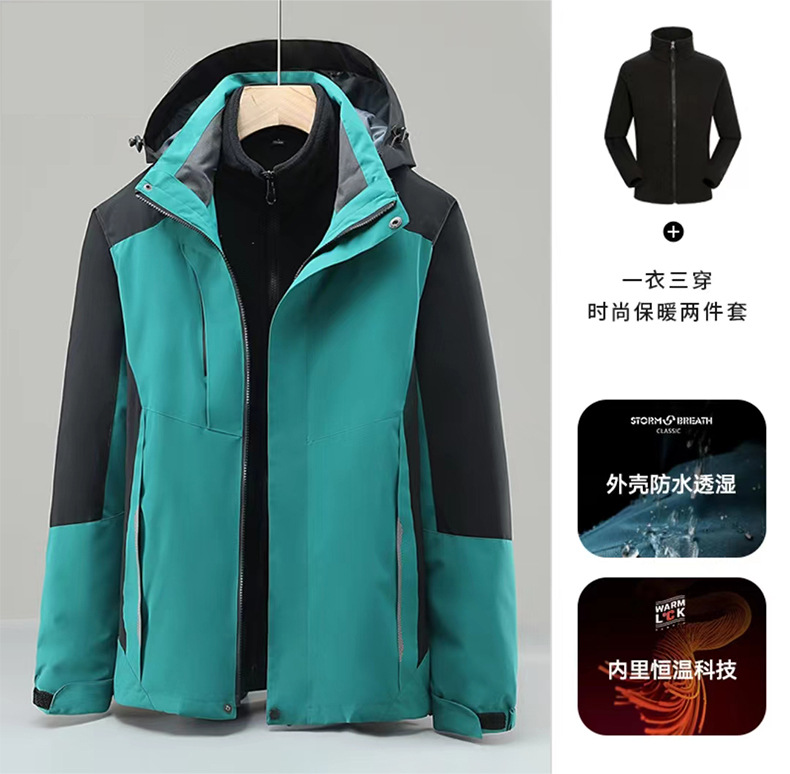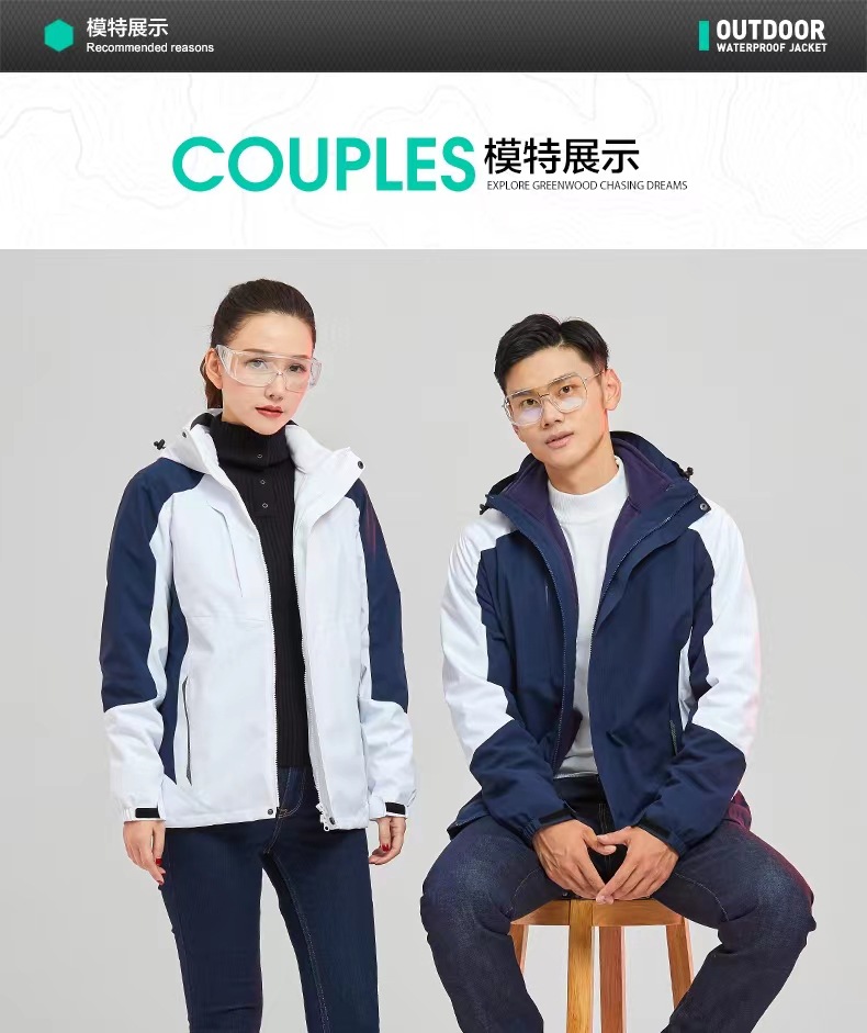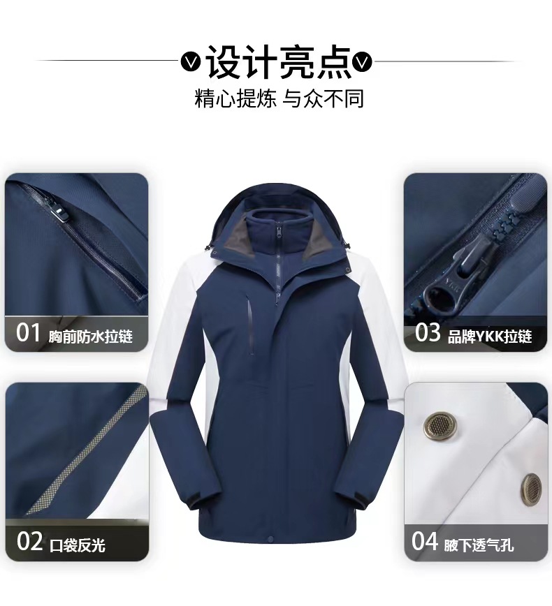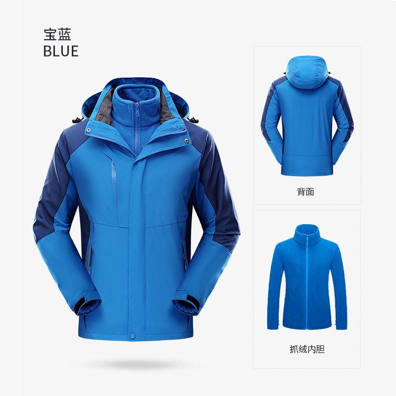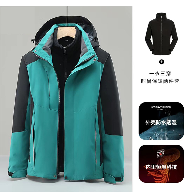 자수 재킷 남자의 3-in-1 방수 재킷 야외 등산 세트 방풍 기모 작업복 세트 로고