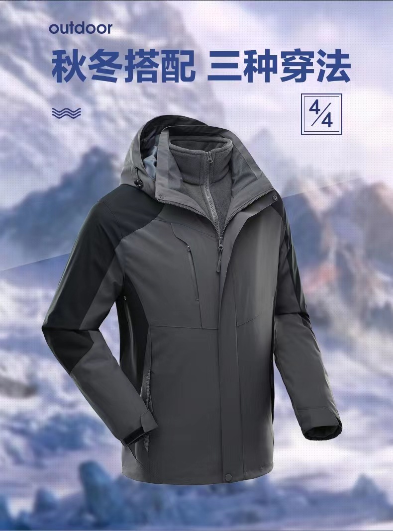 자수 재킷 남자의 3-in-1 방수 재킷 야외 등산 세트 방풍 기모 작업복 세트 로고스토어 가기