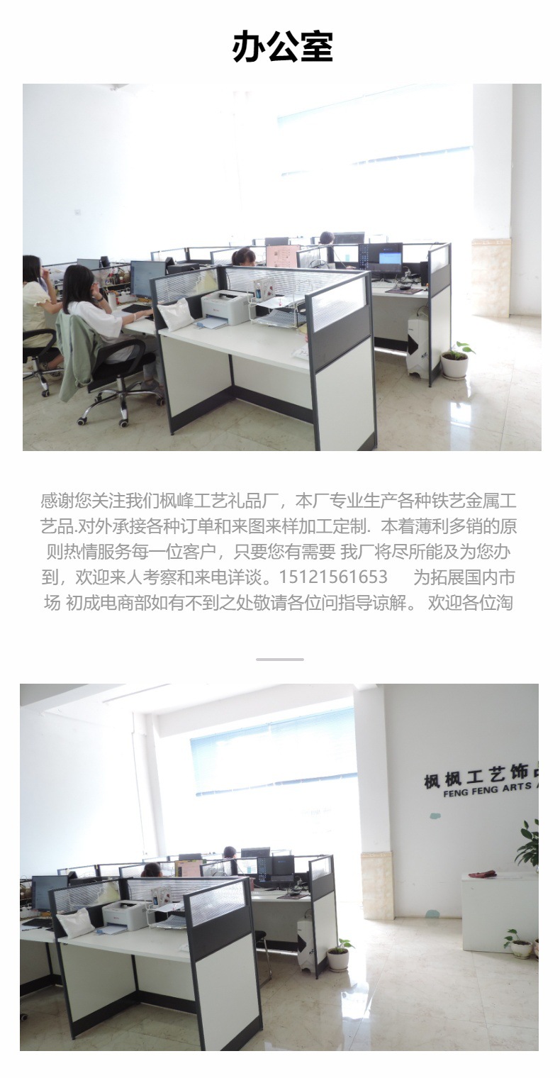 感谢您关注我们艾赤工艺礼品厂,本厂专业生产各种铁艺金属工艺品.对外承接各种订单和来图来样加工定制. 本着薄利多销的原则热情服务每一位客户,只要您有需要 我厂将尽所能及为您办到,欢迎来人考察和来电详谈。15121561653 为拓展国内市场 初成电商部如有不到之处敬请各位问指导谅解。 欢迎各位淘宝商家前来合作批发,本厂为商家提供一件代发,批发服务。竭诚合作 携手共赢