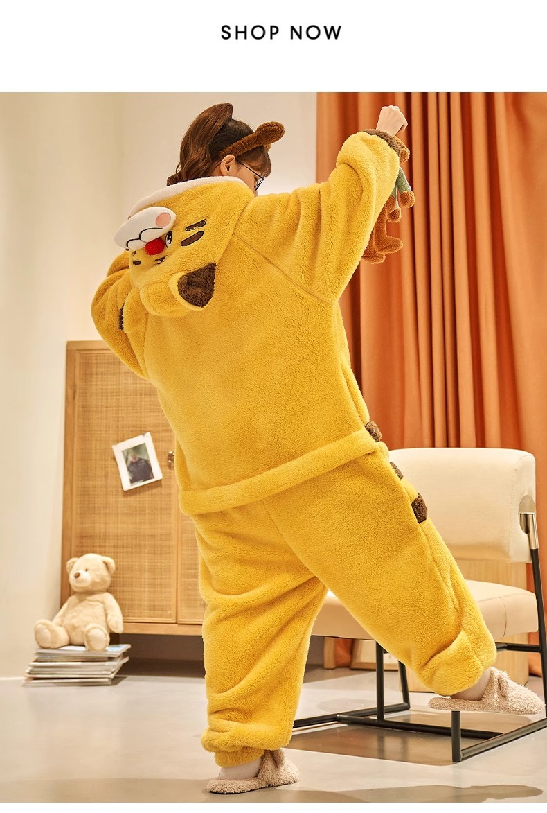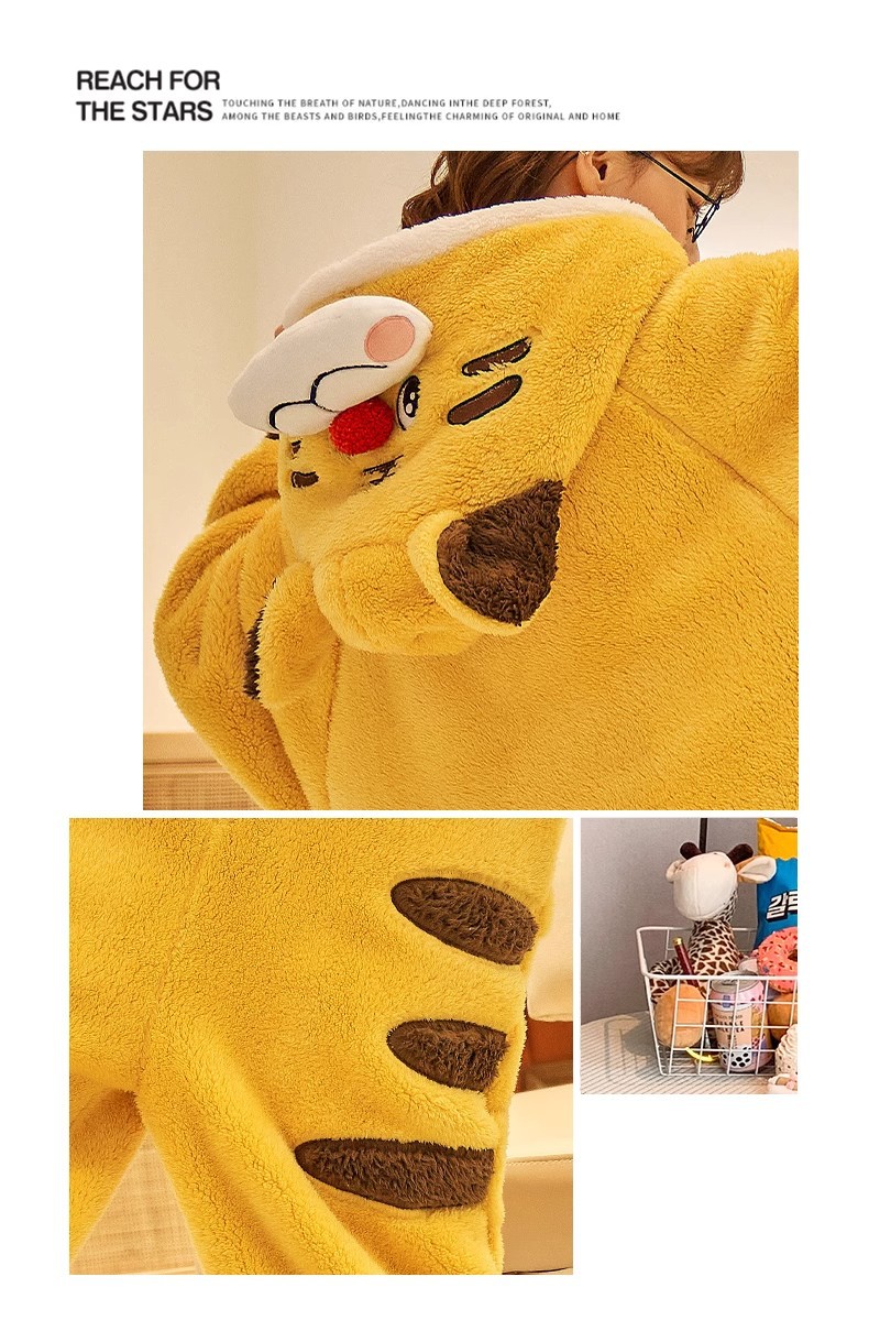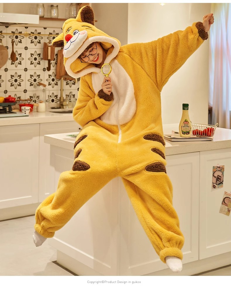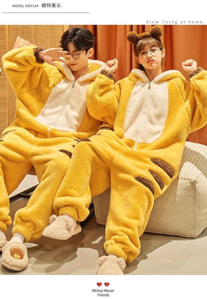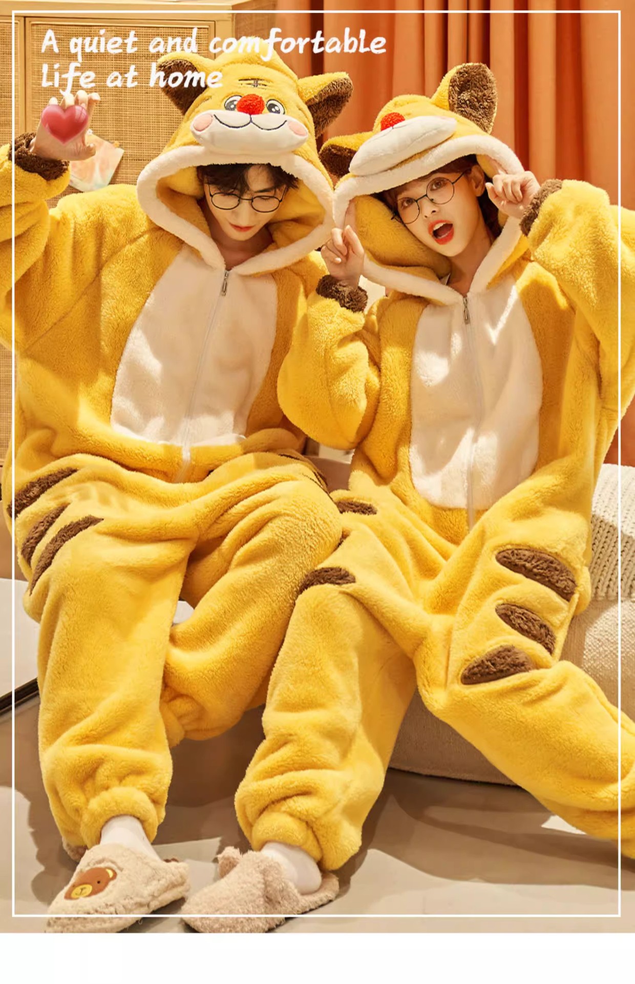 2025년 신상 가을 겨울 커플 호랑이 원피스 잠옷 산호 벨벳 만화 캐릭터 후드가 달린 두꺼운 홈웨어스토어 가기