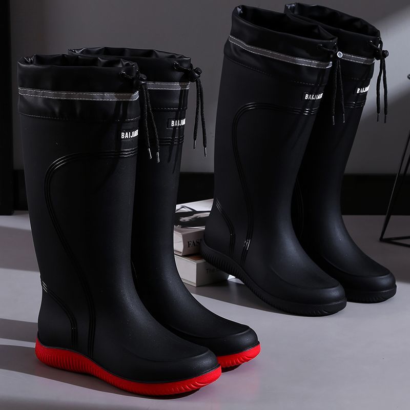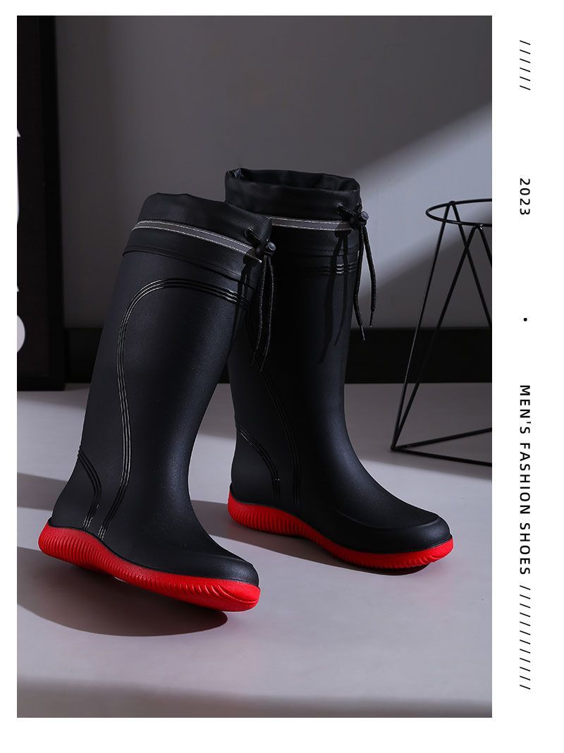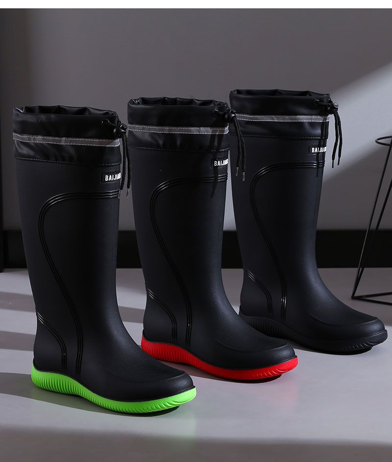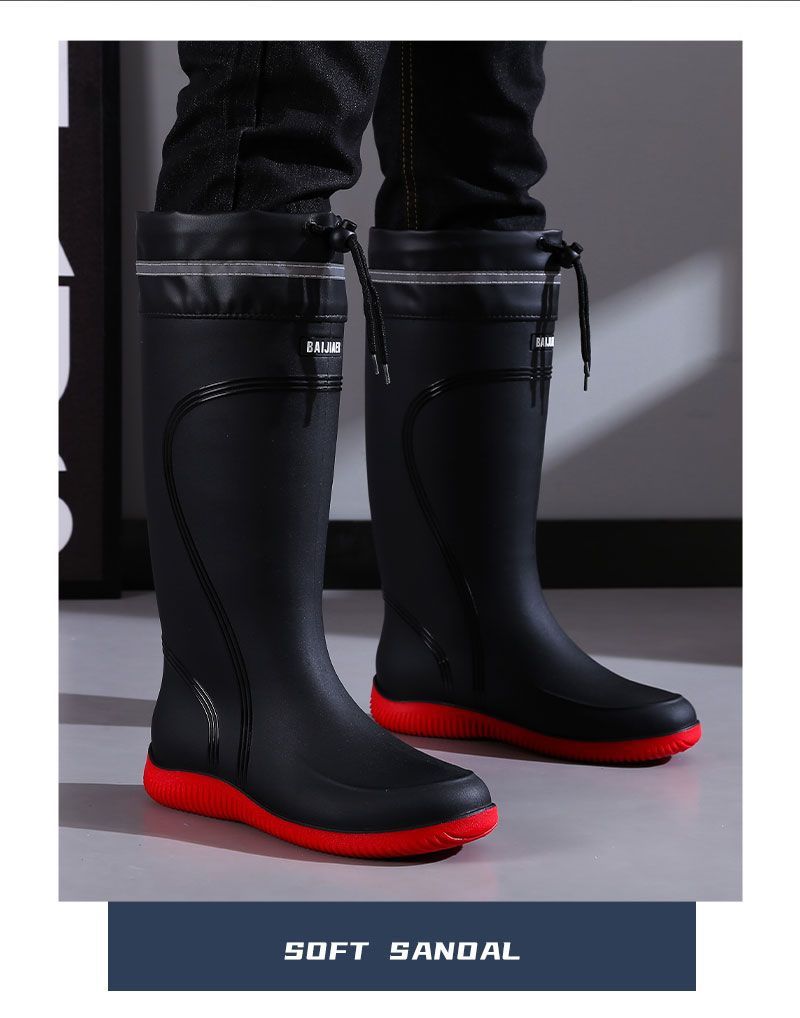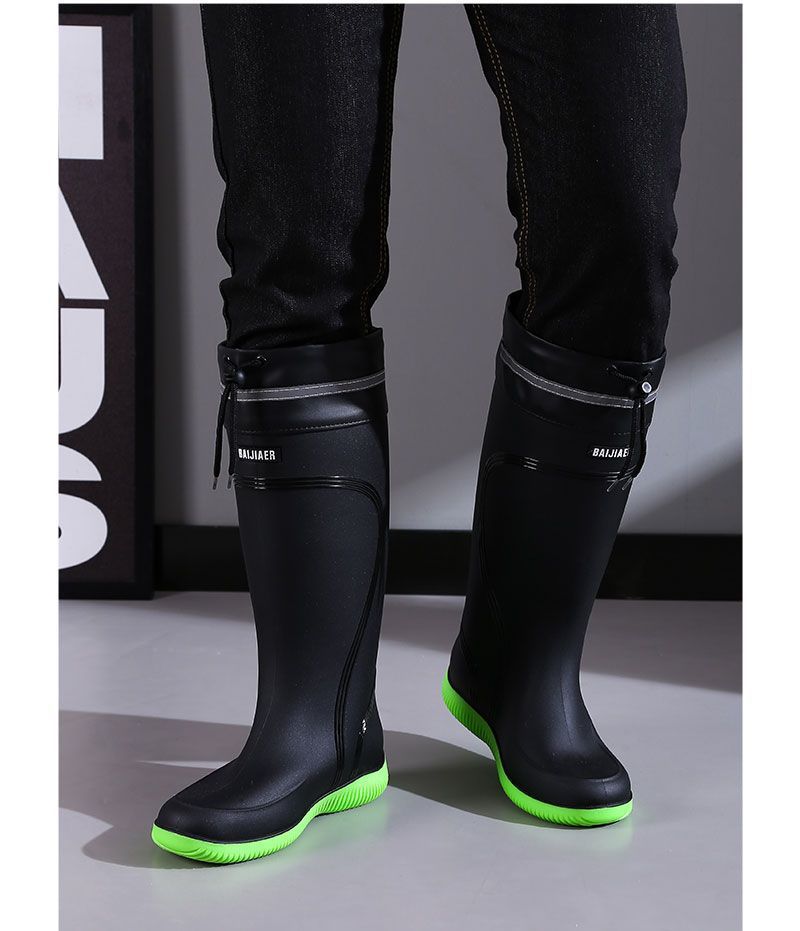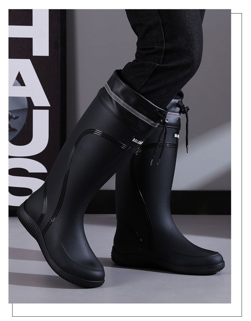 남성용 높은 비 신발 긴 두꺼운 유행 반사 미끄럼 방지 방수 부츠 양털 내마모성 고무 신발 야외 낚시 신발
