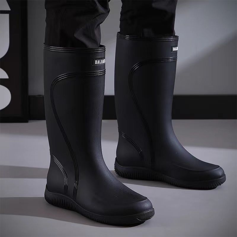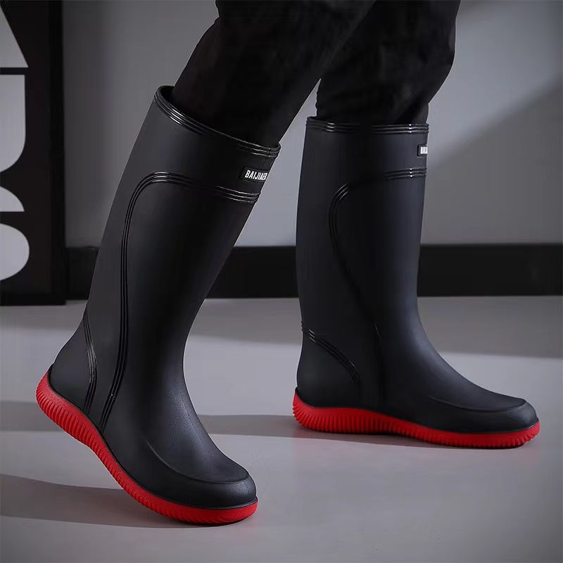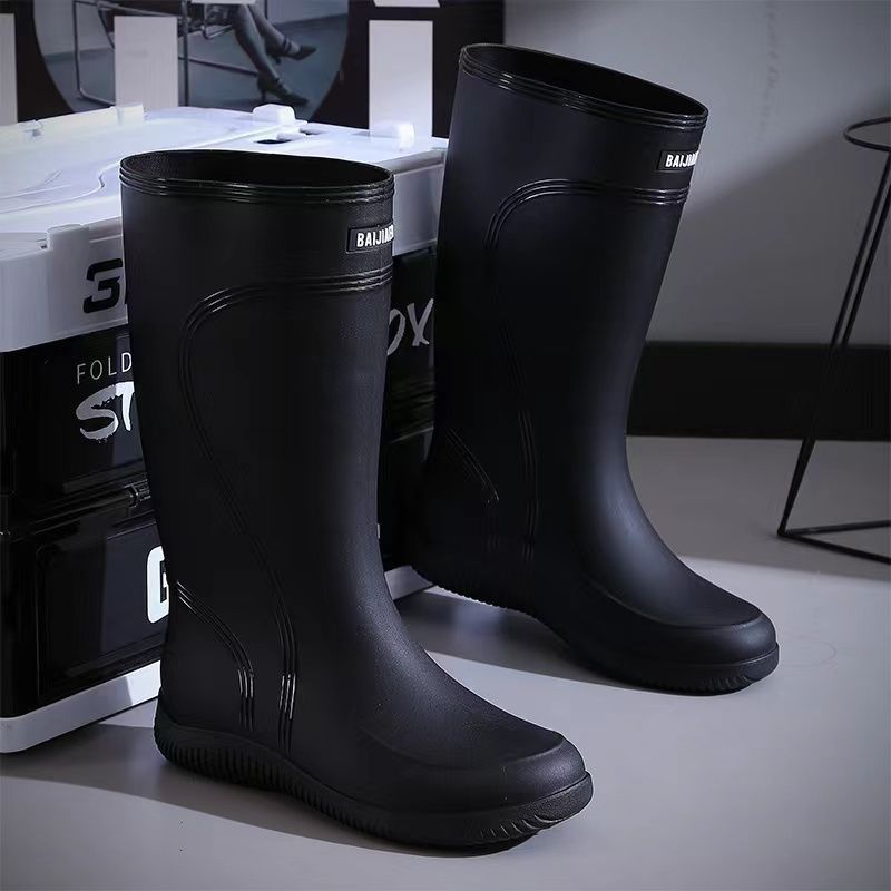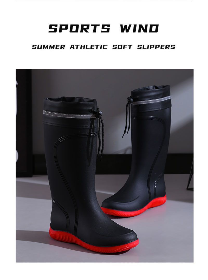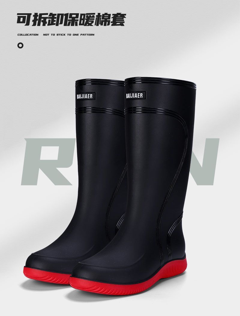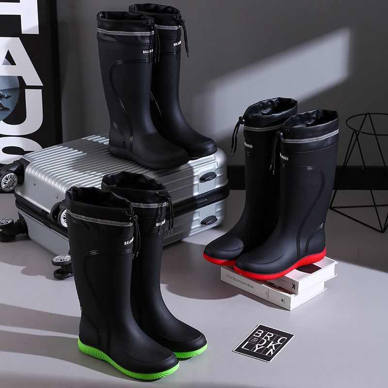 남성용 높은 비 신발 긴 두꺼운 유행 반사 미끄럼 방지 방수 부츠 양털 내마모성 고무 신발 야외 낚시 신발