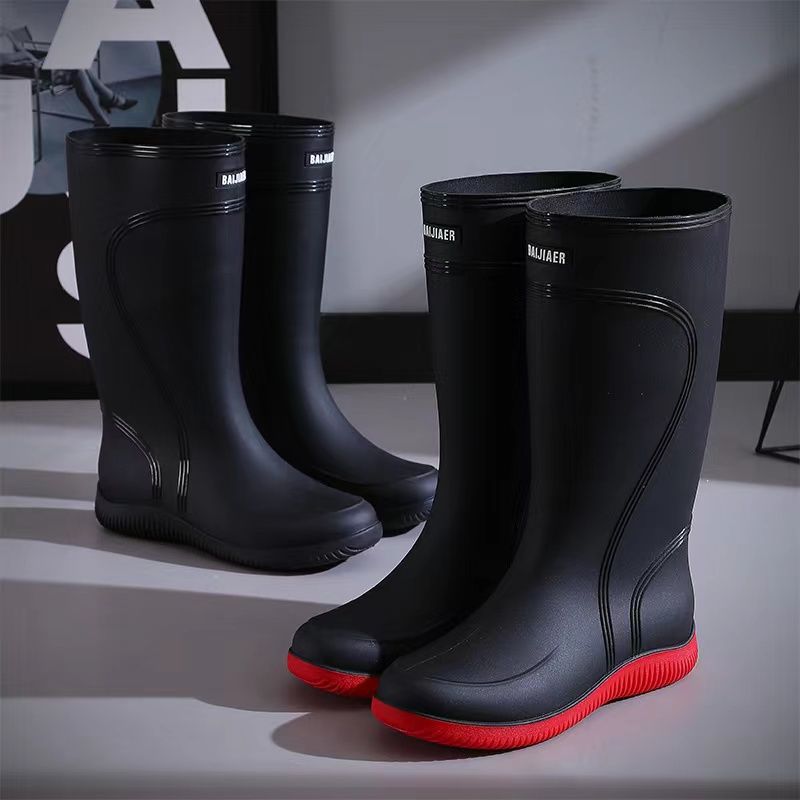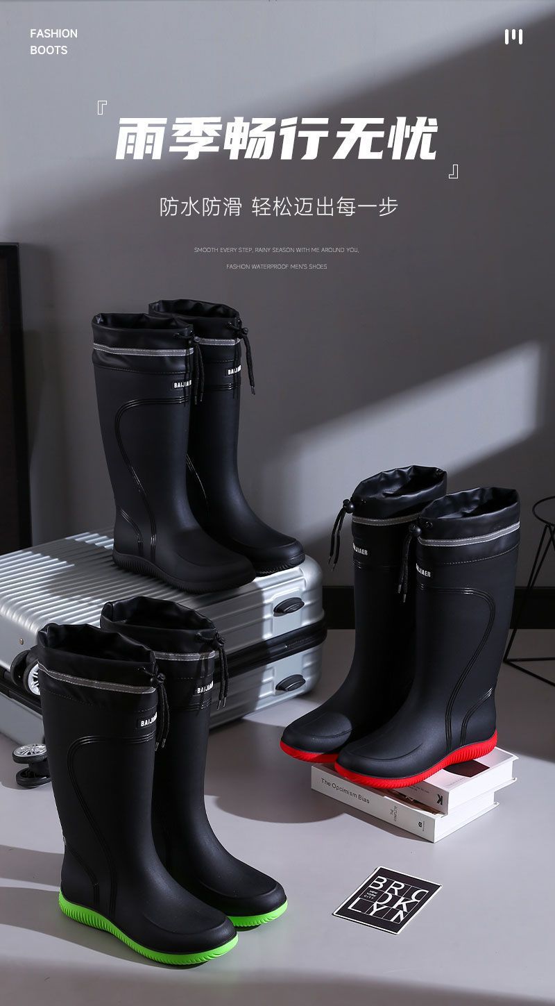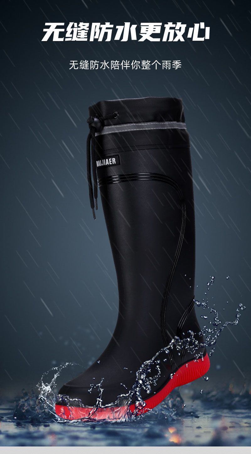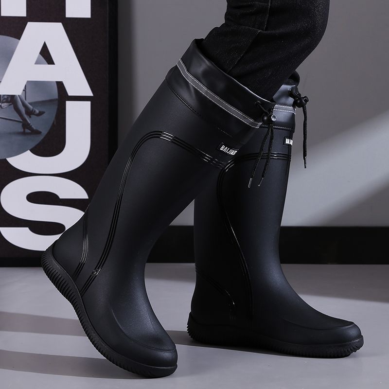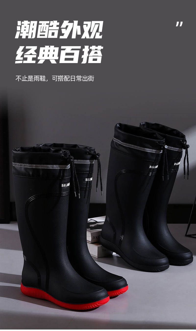 남성용 높은 비 신발 긴 두꺼운 유행 반사 미끄럼 방지 방수 부츠 양털 내마모성 고무 신발 야외 낚시 신발스토어 가기