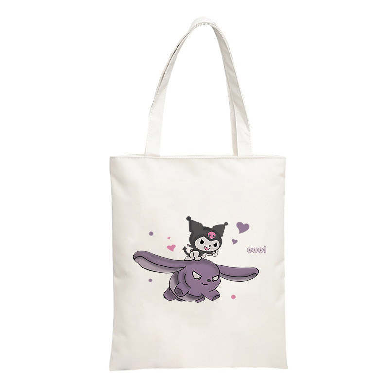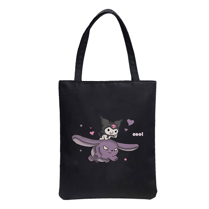 귀여운 만화 패턴 쿠로미 스티치 인쇄 캔버스 가방 토트 백 학생 책 가방 쇼핑백 대용량