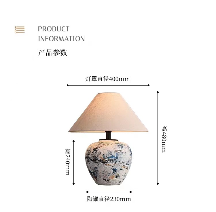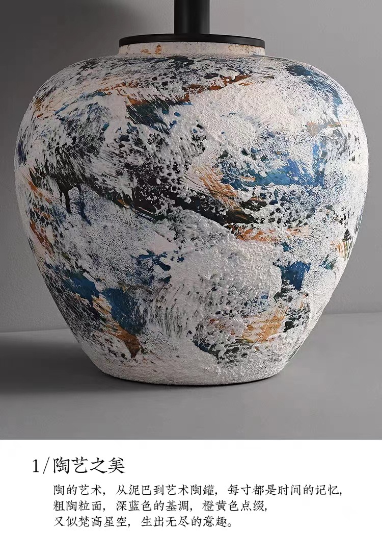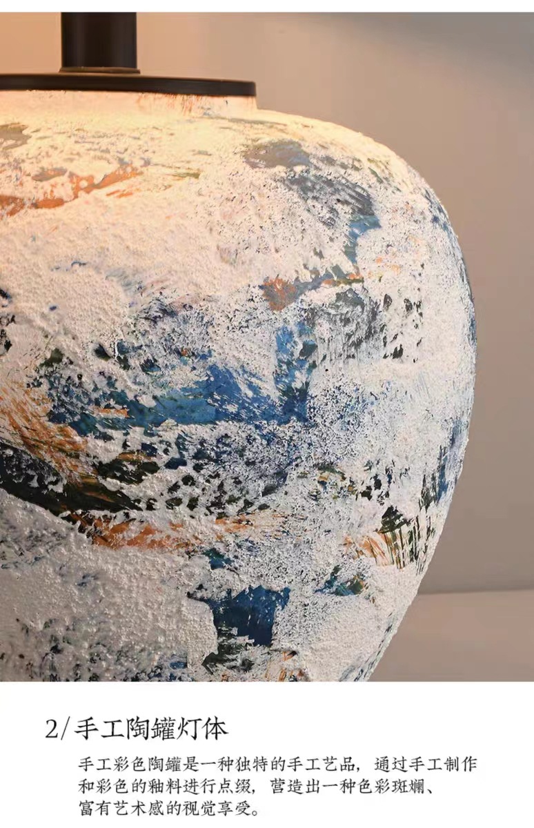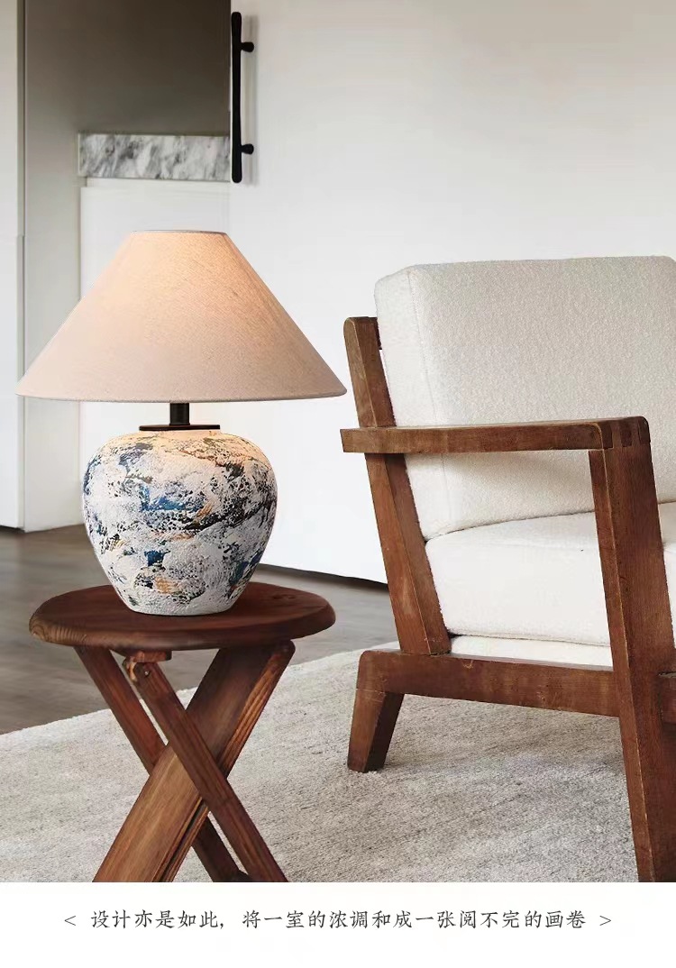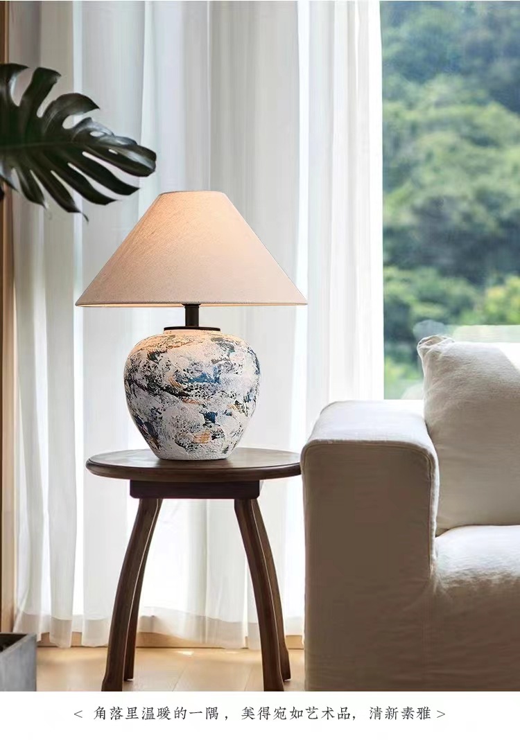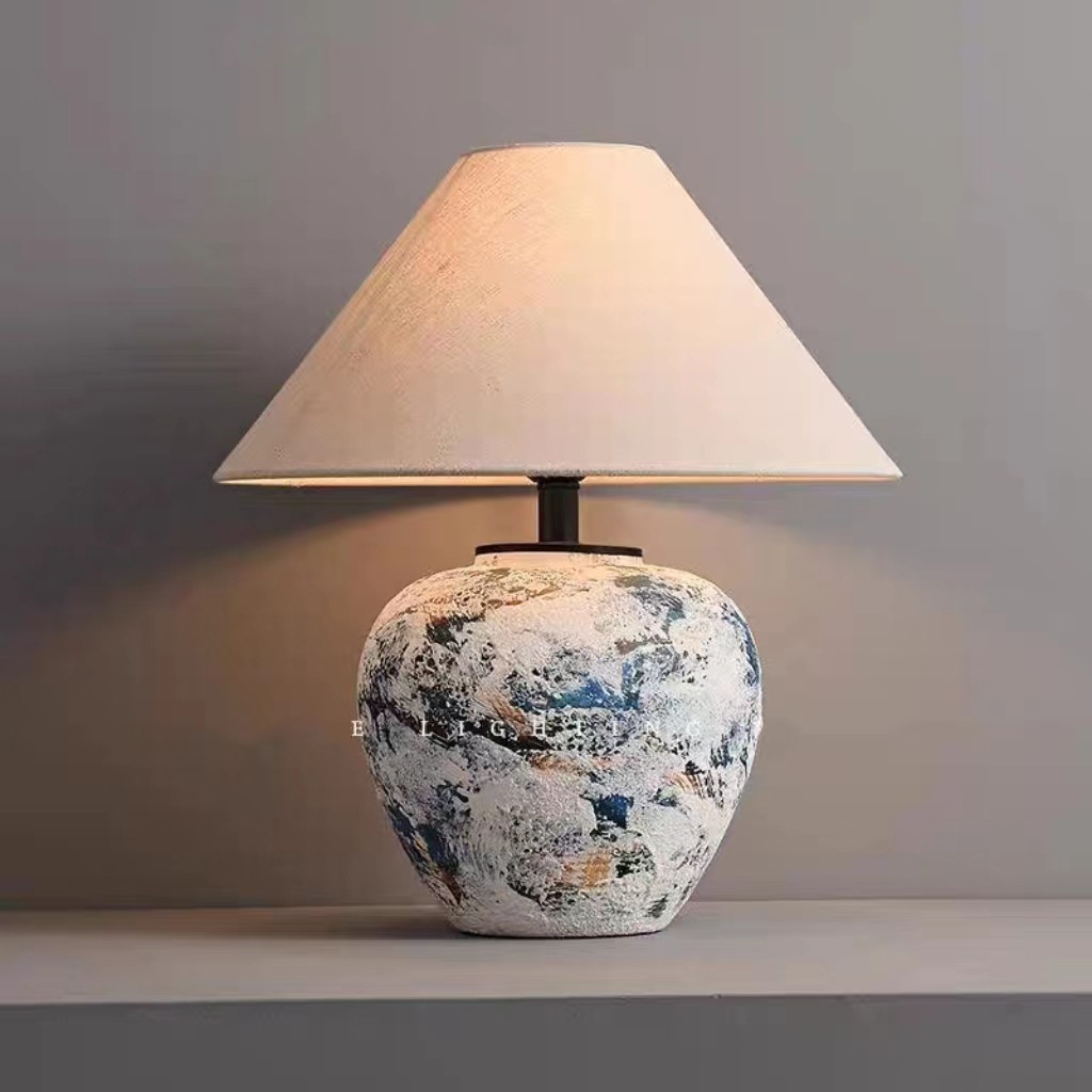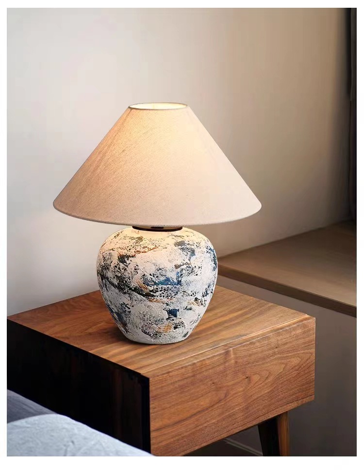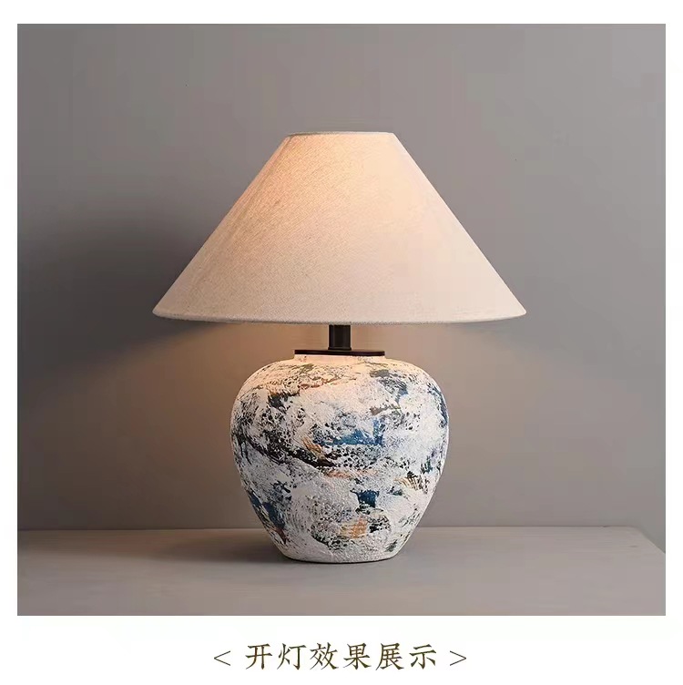 실리 스타일 수제 도자기 냄비 테이블 램프 일본식 B & B 디자이너 거실 침실 침대 옆 장식 테이블 램프