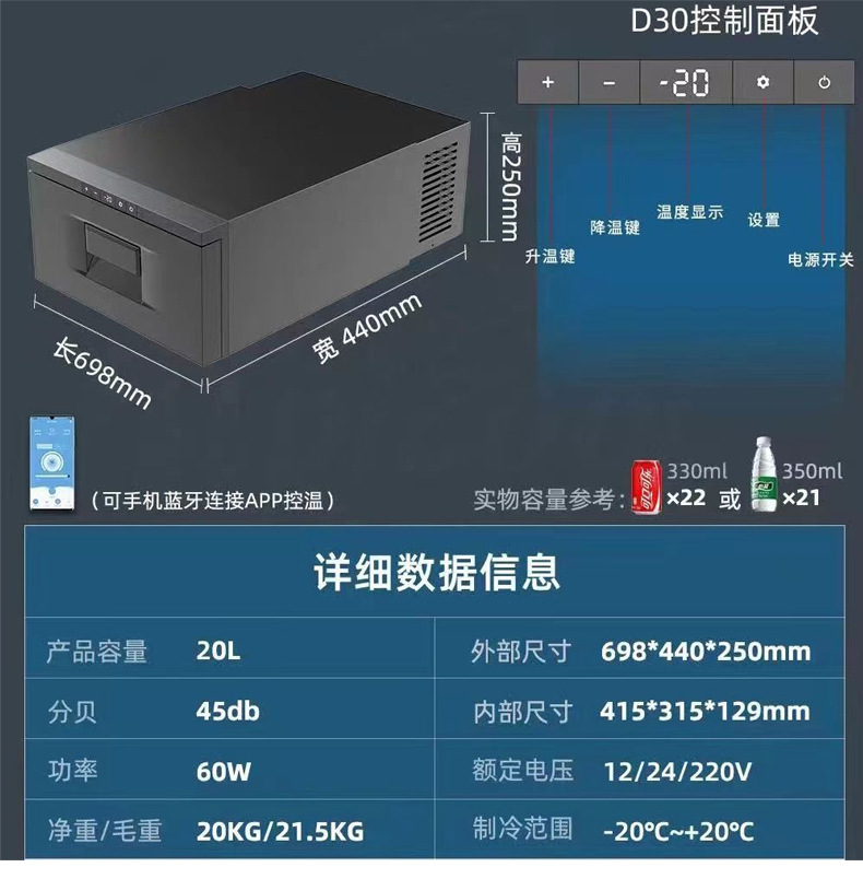 20L 서랍형 자동차 냉장고 RV 트럭 SUV 개조 특수 12v 압축기 냉장 미니 냉장고 24V스토어 가기