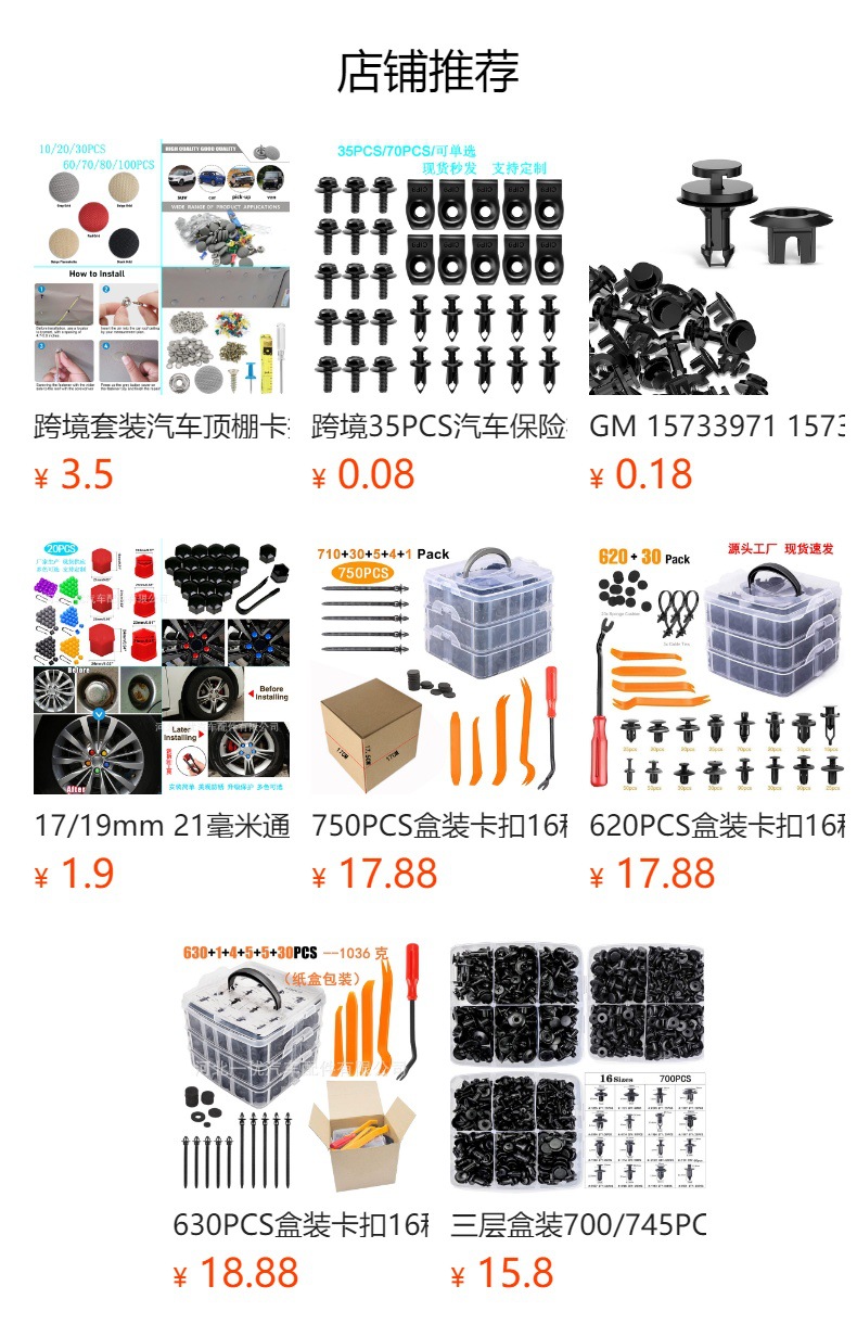 국경 간 725PCS 박스형 버클 범용 자동차 범퍼 나사 수리 리벳 패스너 세트 액세서리스토어 가기