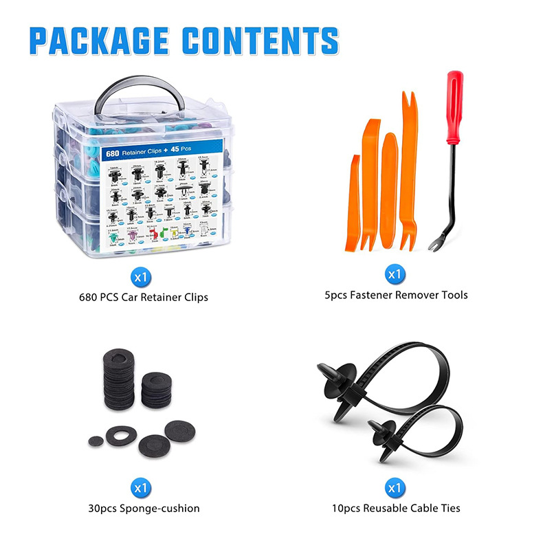 국경 간 725PCS 박스형 버클 범용 자동차 범퍼 나사 수리 리벳 패스너 세트 액세서리