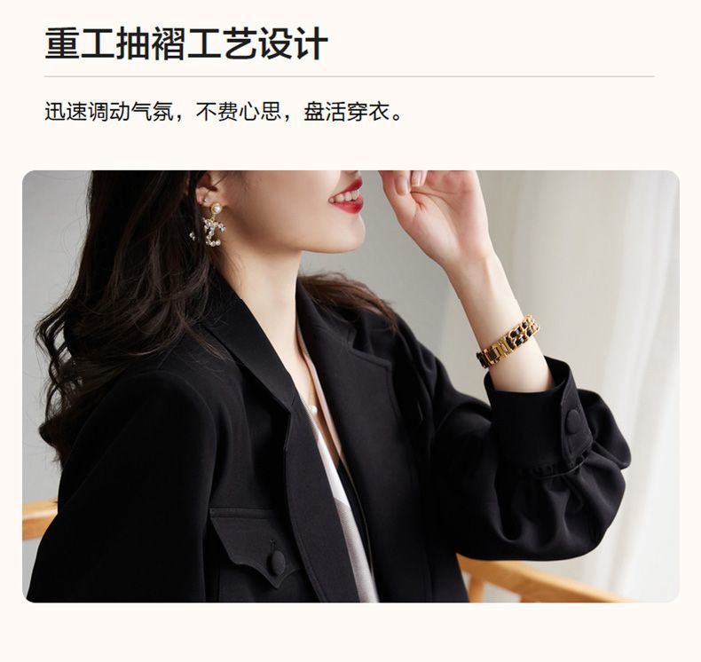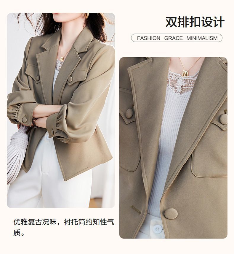 캐주얼 긴팔 자켓 여성 2023 가을 새로운 한국식 세트 탑 올매치 재킷 루즈한 짧은 트렌치 코트스토어 가기