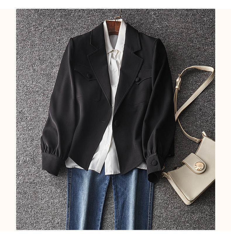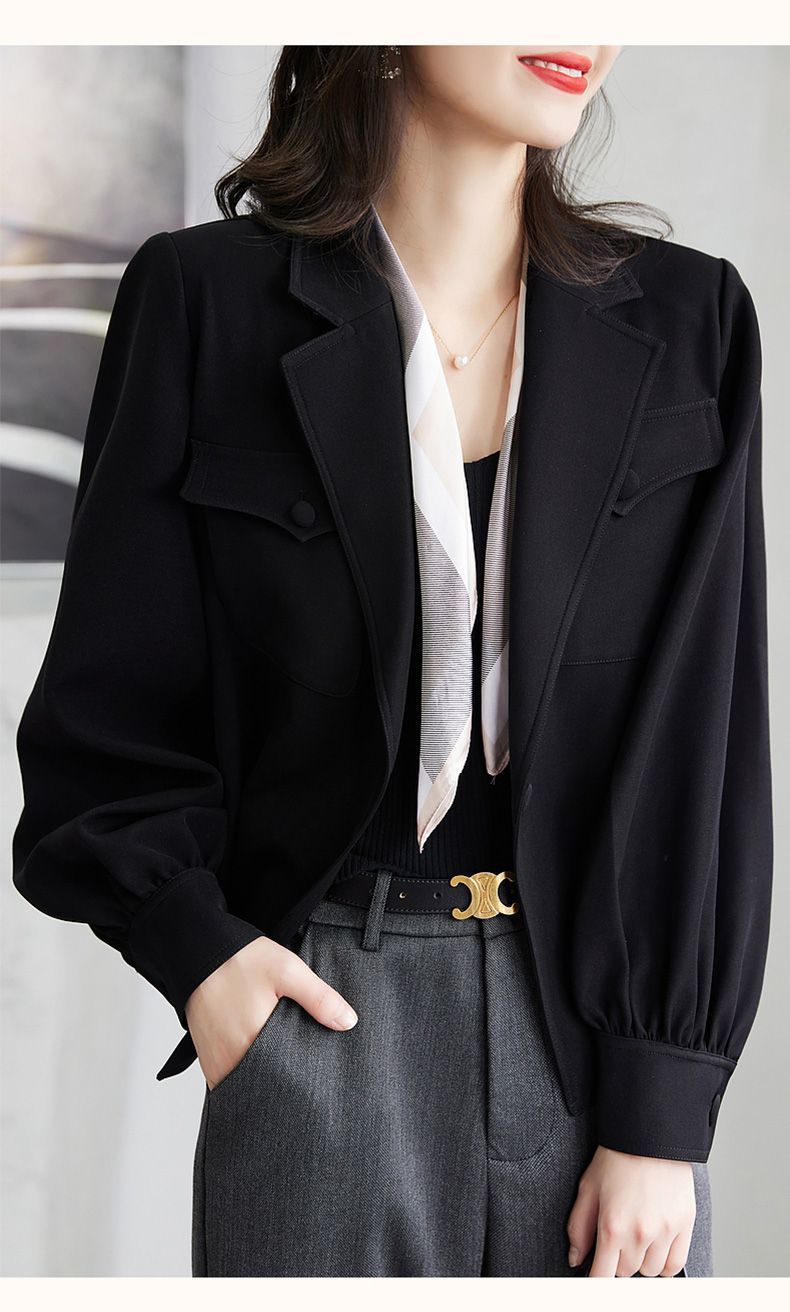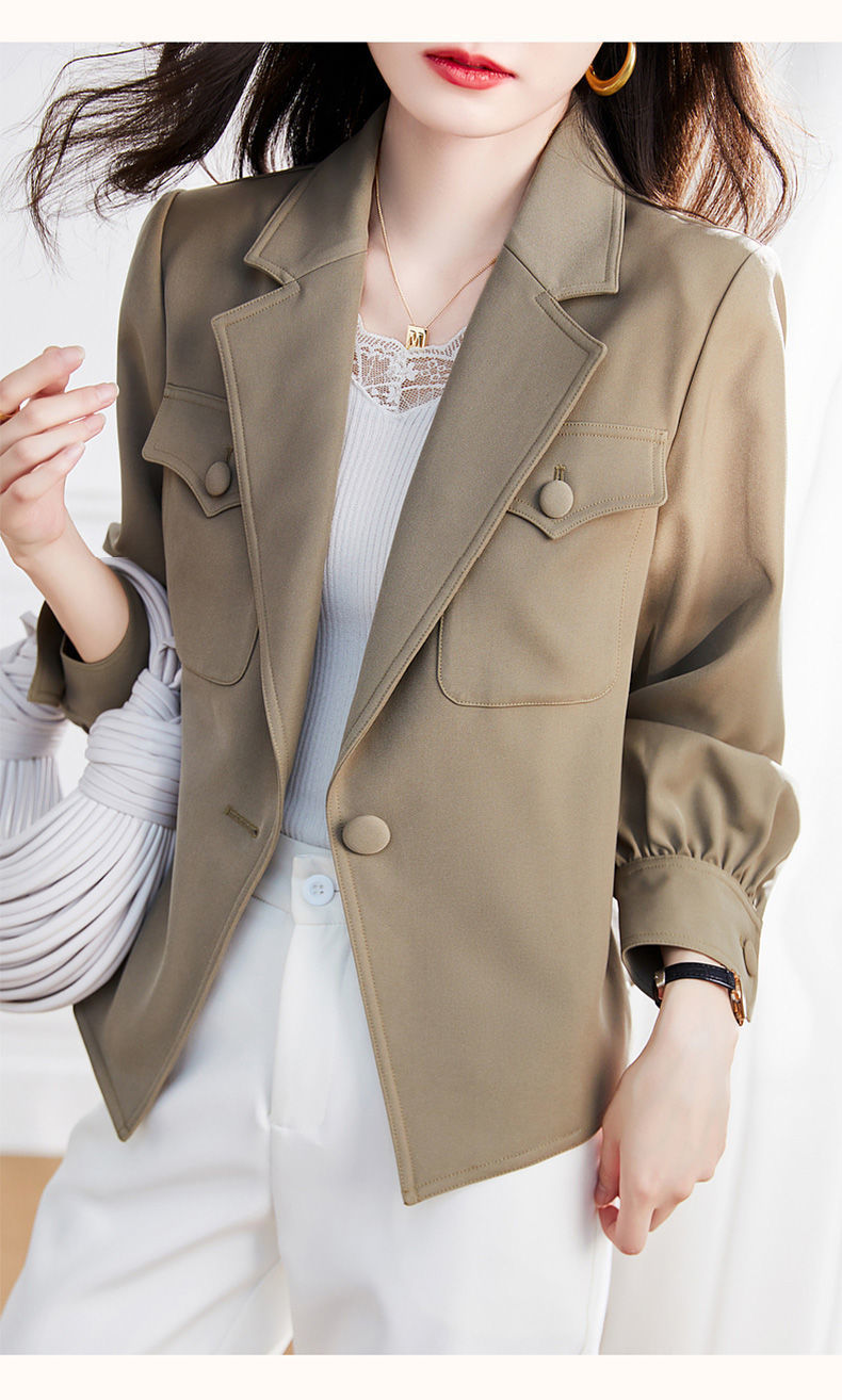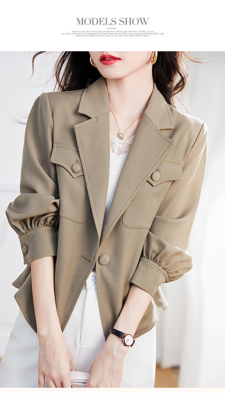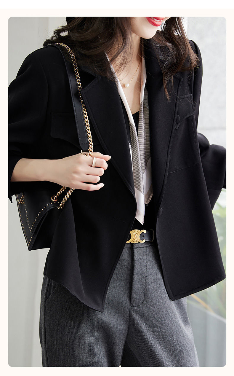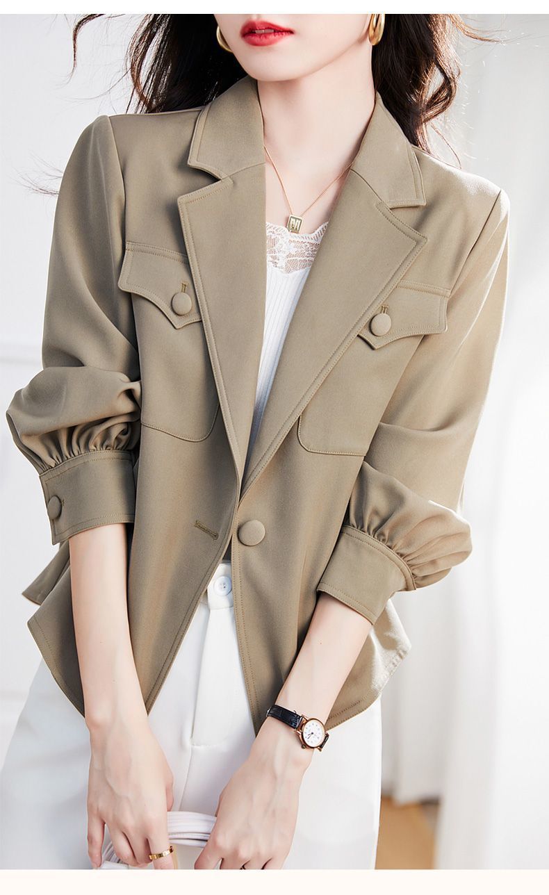 캐주얼 긴팔 자켓 여성 2023 가을 새로운 한국식 세트 탑 올매치 재킷 루즈한 짧은 트렌치 코트
