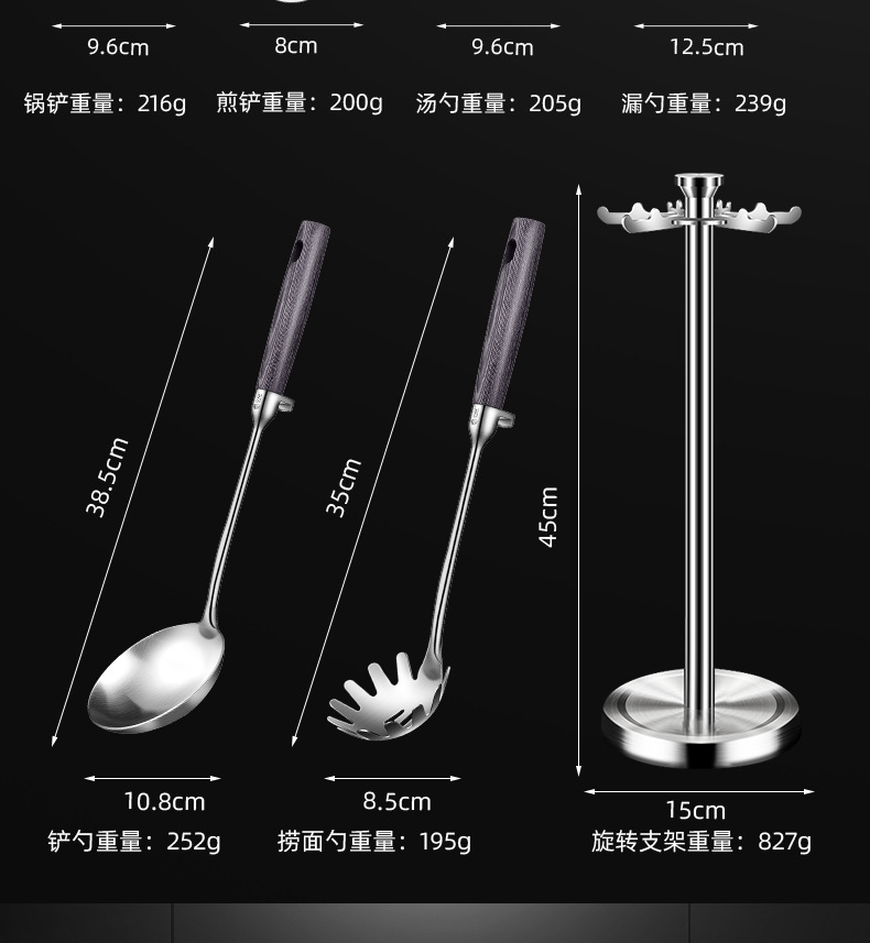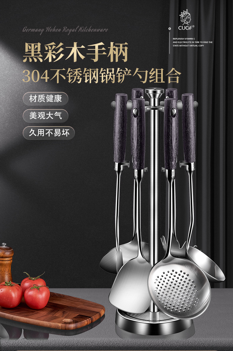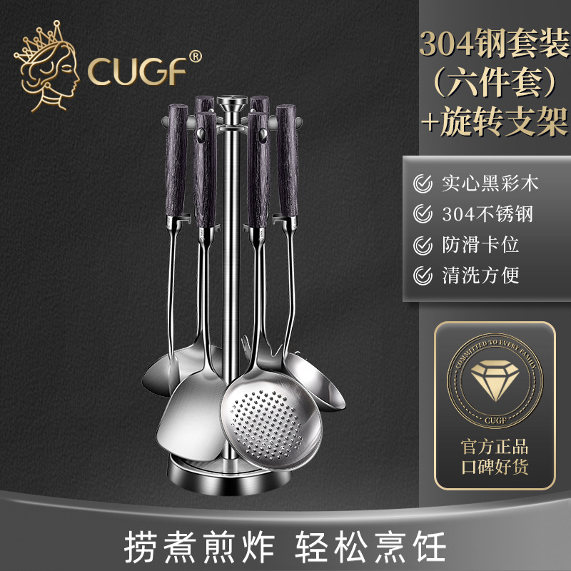 • 304 스틸 6 피스 세트 [주걱 튀김 삽 수프 숟가락 소쿠리 주걱 주걱 국수 스푼] 주걱 보관 랙