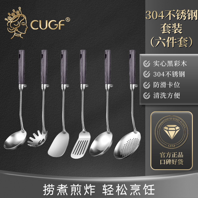 • 304 스틸 6 피스 세트 [주걱 튀김 삽 수프 스푼 소쿠리 주걱 스푼 국수 스푼]]