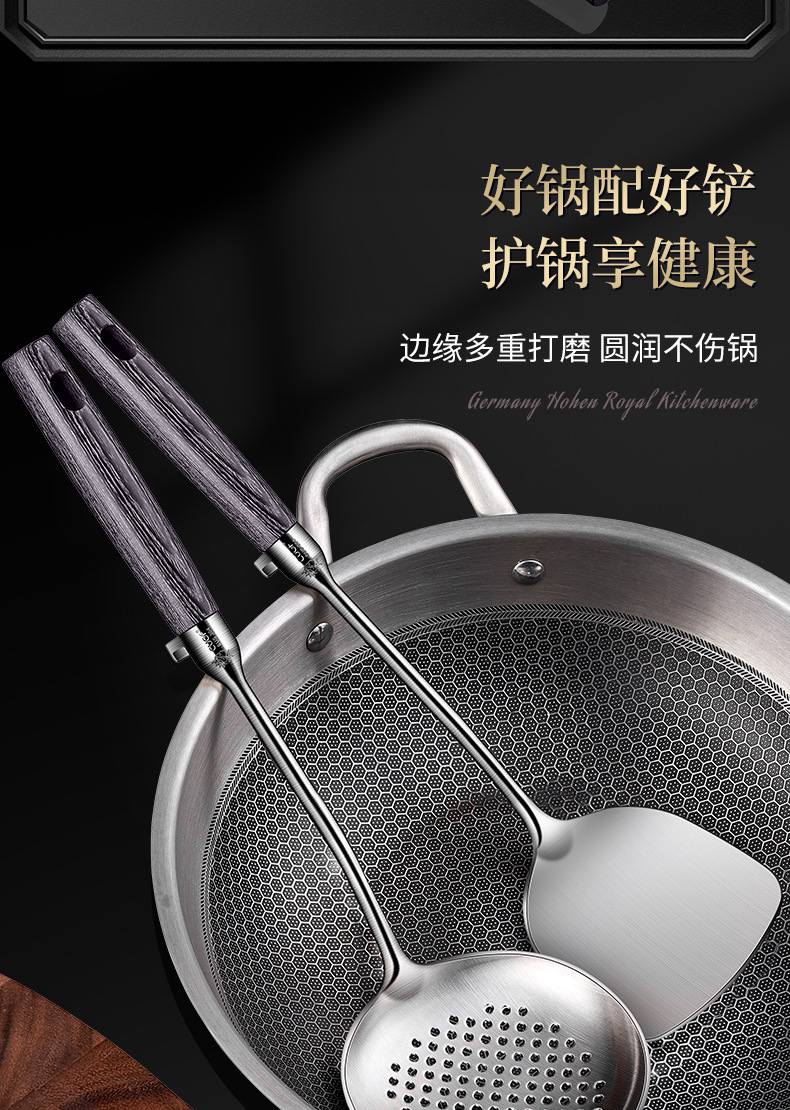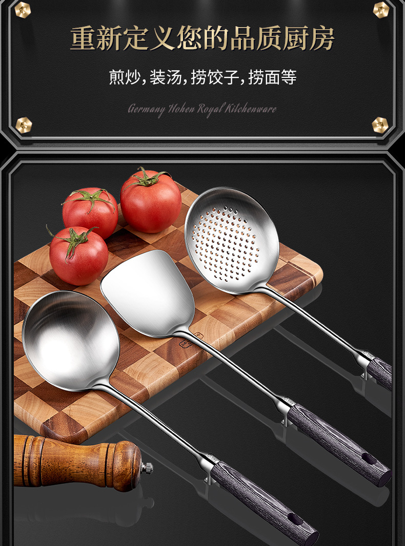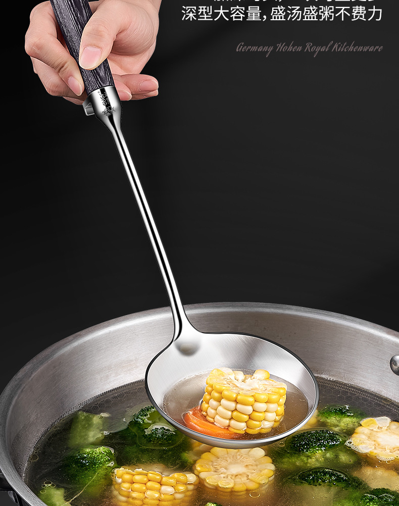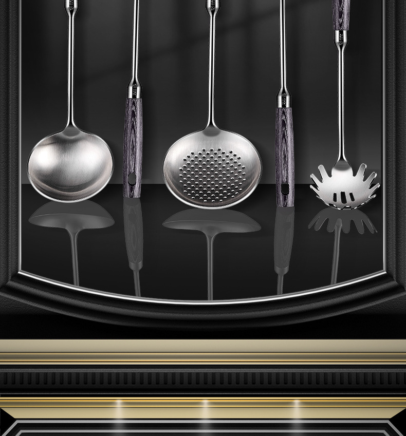 304 스테인레스 스틸 주걱 주방 특수 요리 주걱 가정용 고온 내성 볶음 숟가락 나무 손잡이 수프 주방 용품 세트