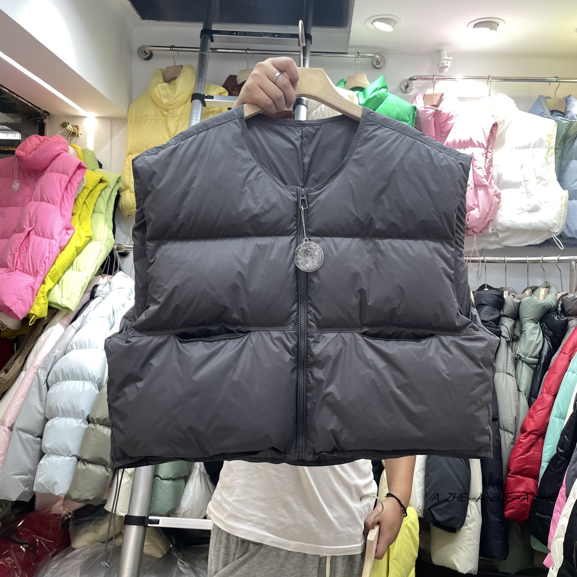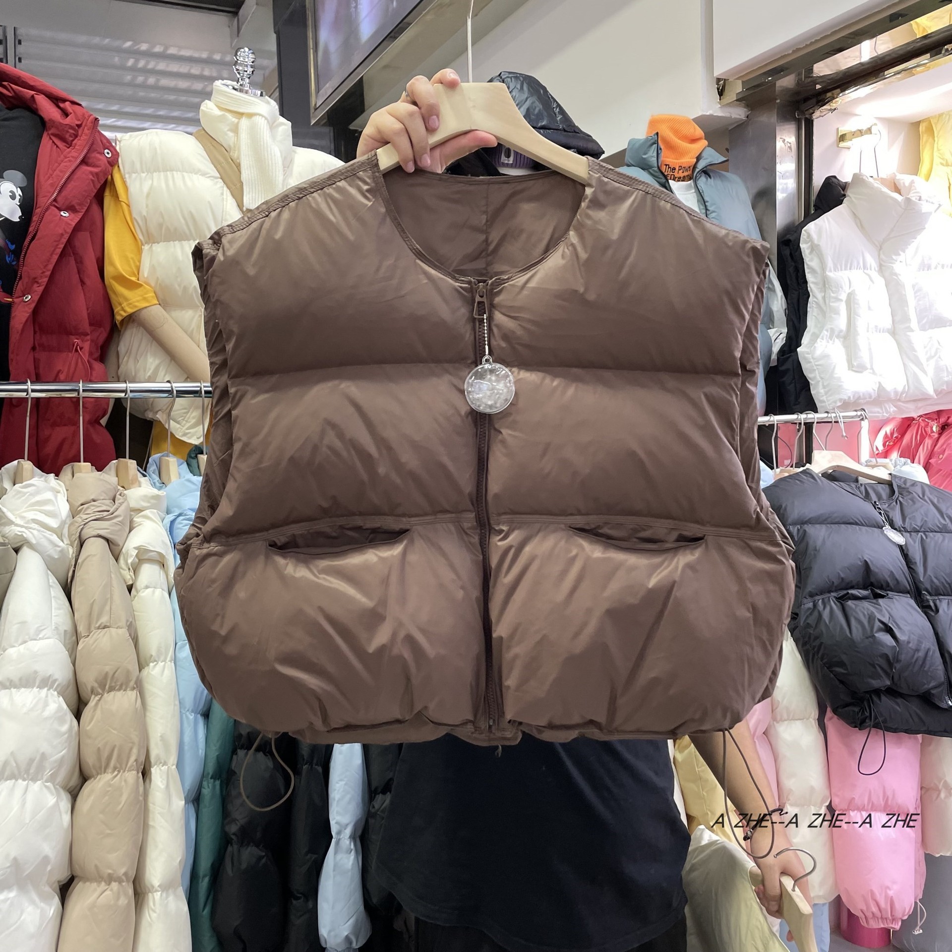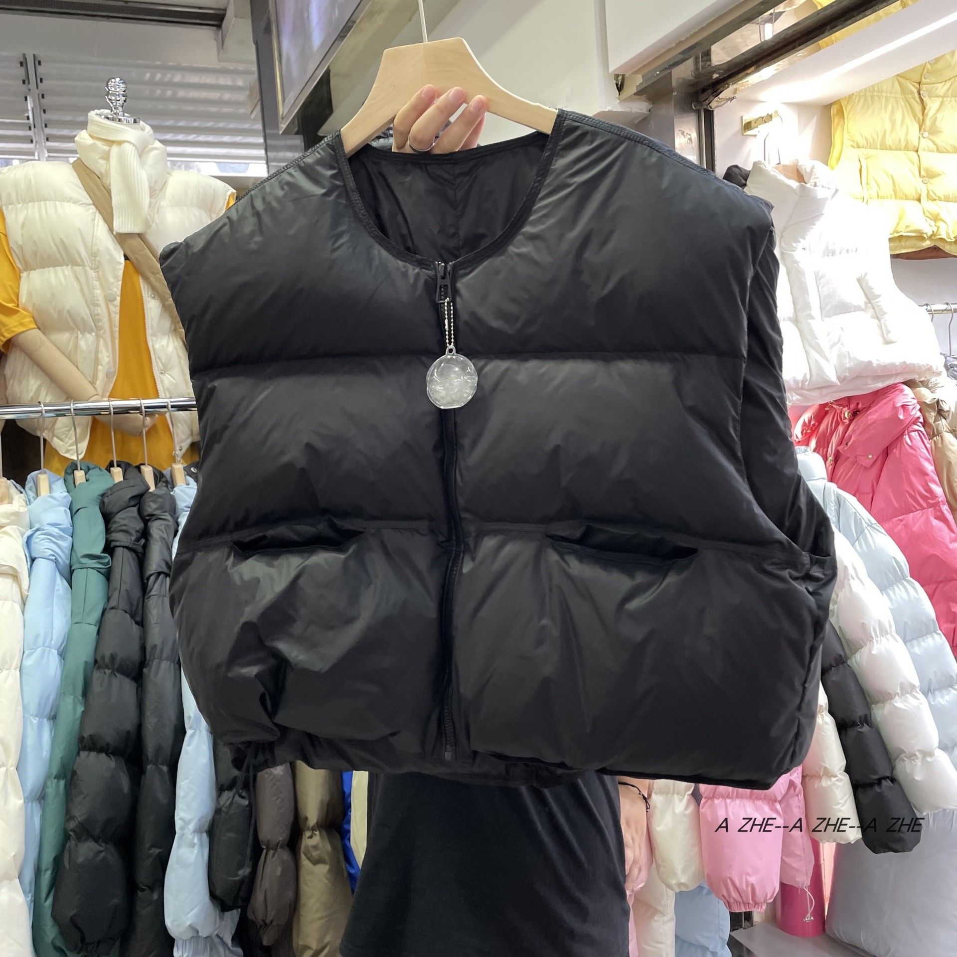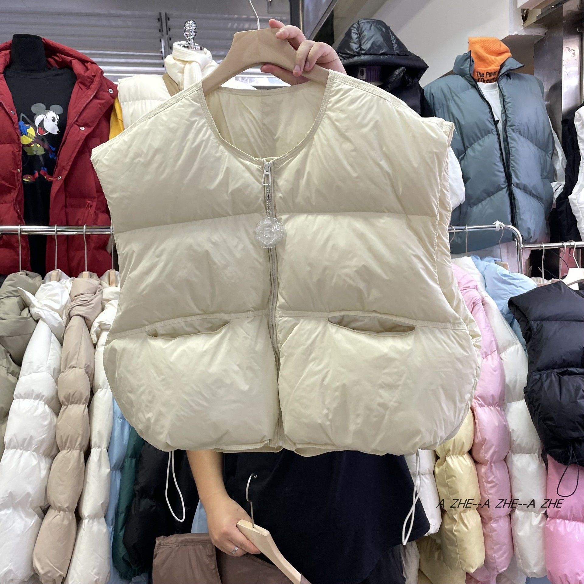 【이첸】24 겨울 평화 한국 스타일 패션 루즈핏 조끼 다운 재킷 여성용 조끼 숏 코트 트렌디한 스탠드 칼라스토어 가기