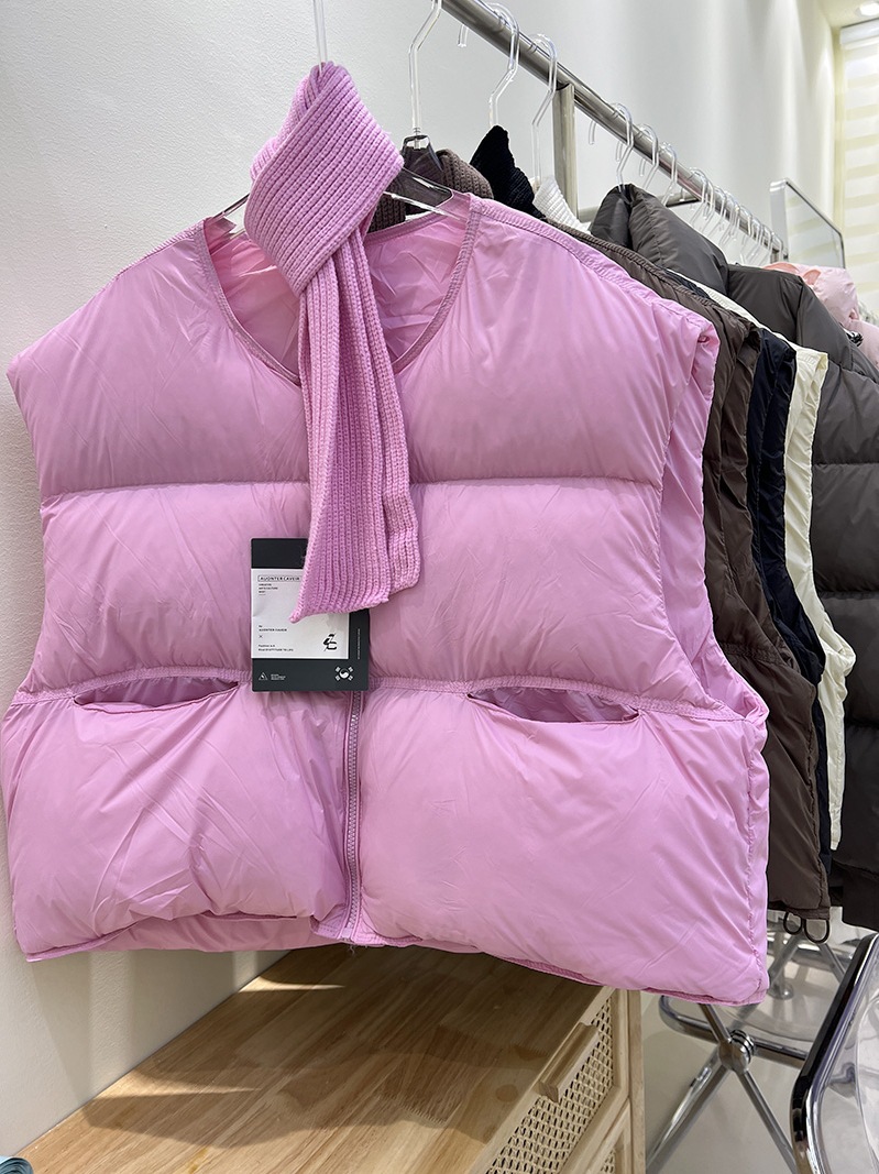 【이첸】24 겨울 평화 한국 스타일 패션 루즈핏 조끼 다운 재킷 여성용 조끼 숏 코트 트렌디한 스탠드 칼라