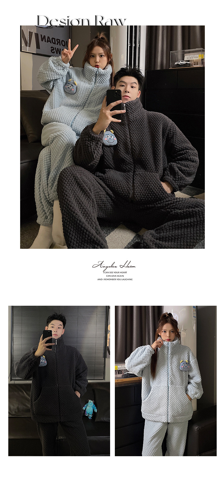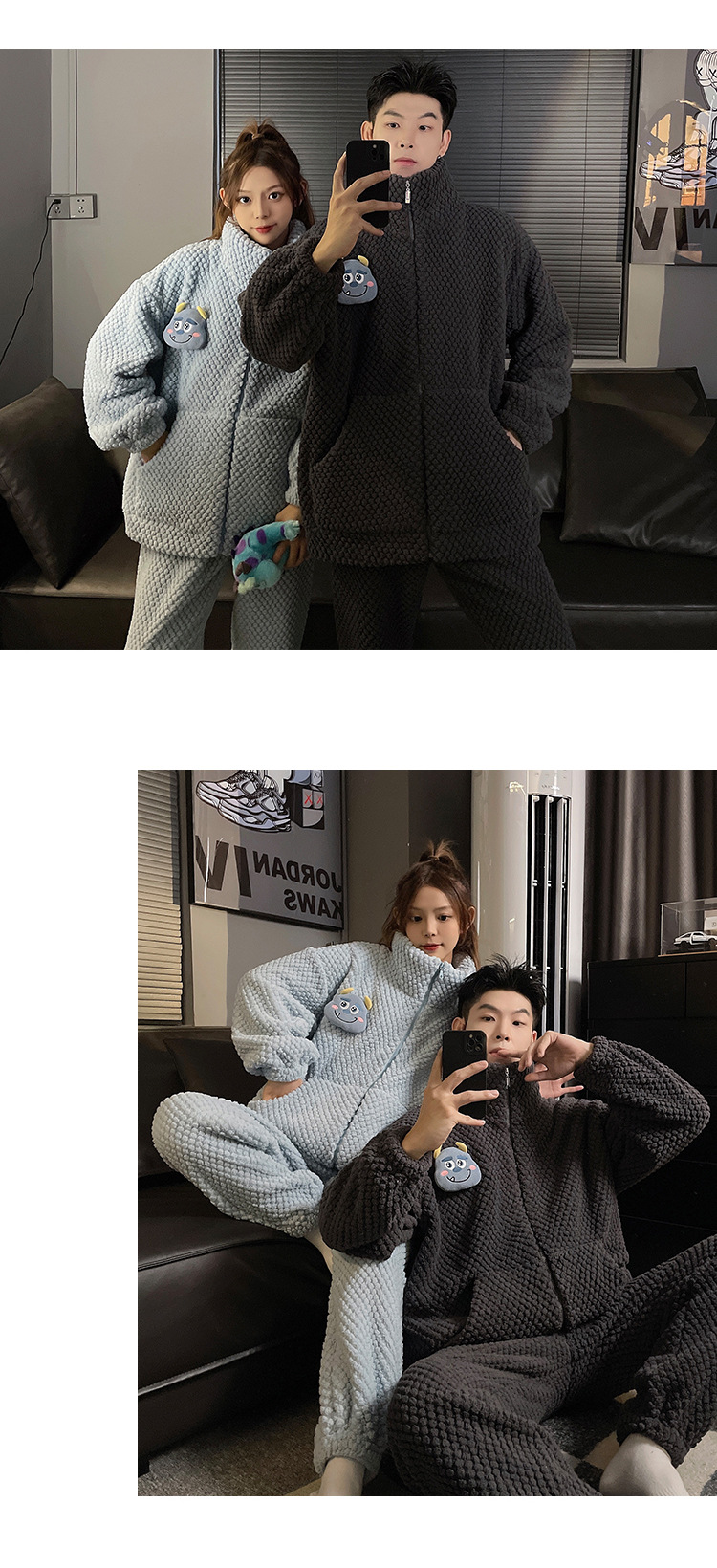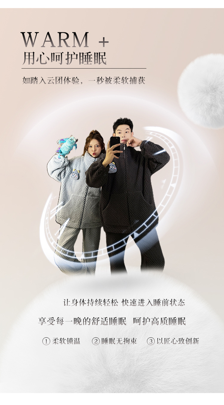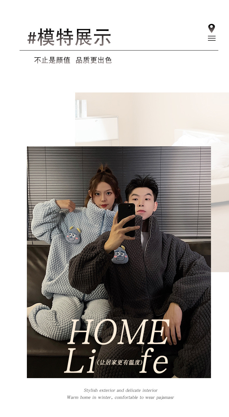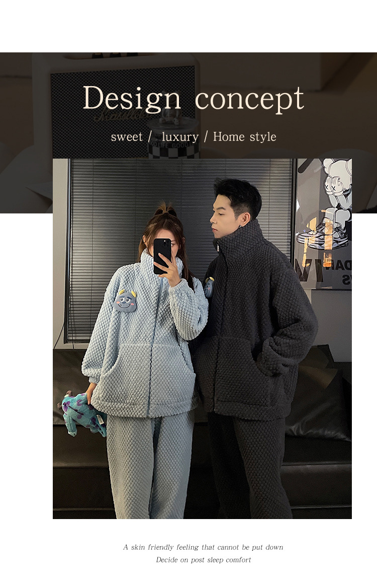 커플 잠옷 겨울 두꺼운 기모 여자의 산호 양털 귀여운 가을/겨울 지퍼 남자의 플란넬 가정 옷 세트스토어 가기