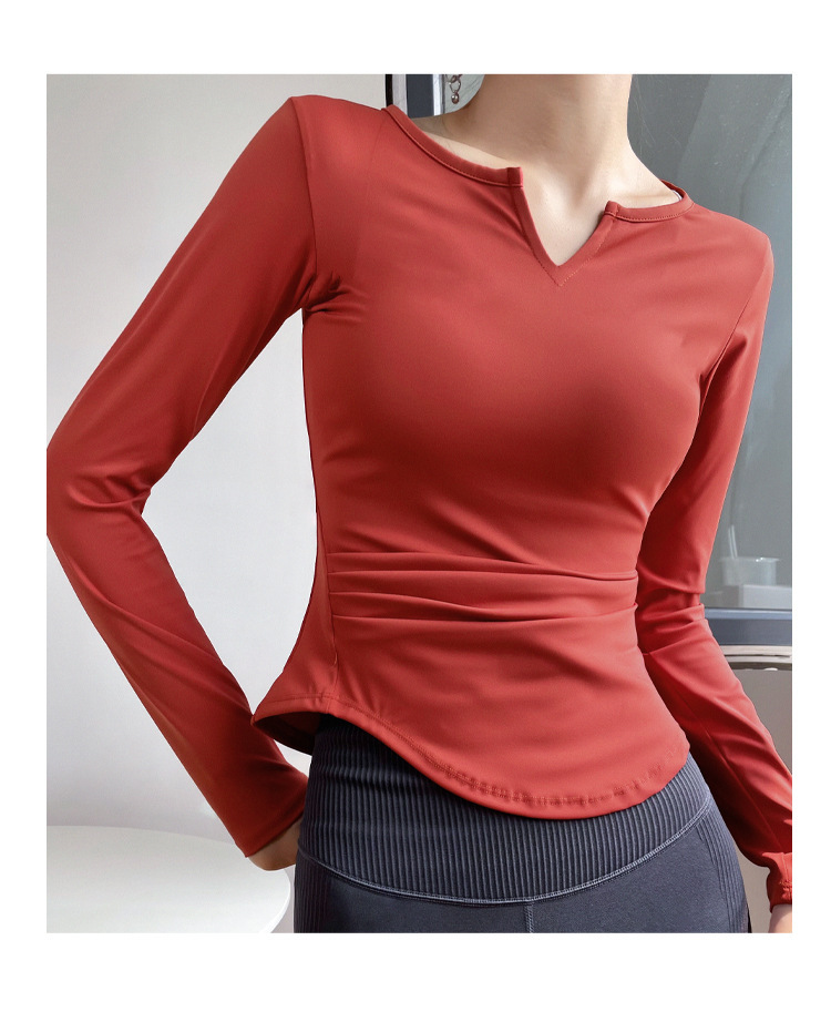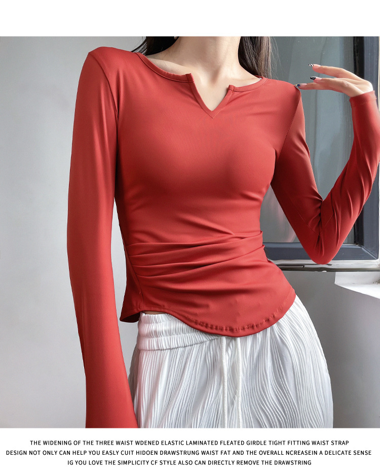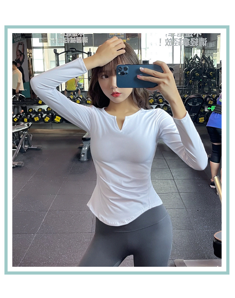 요가복 단색 심플 브이넥 타이트 허리 슬림핏 스포츠 누드감 티셔츠 얇은 슬림핏 러닝 피트니스 탑