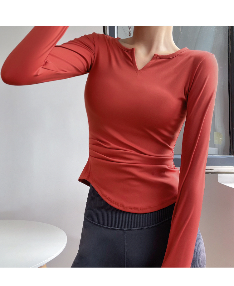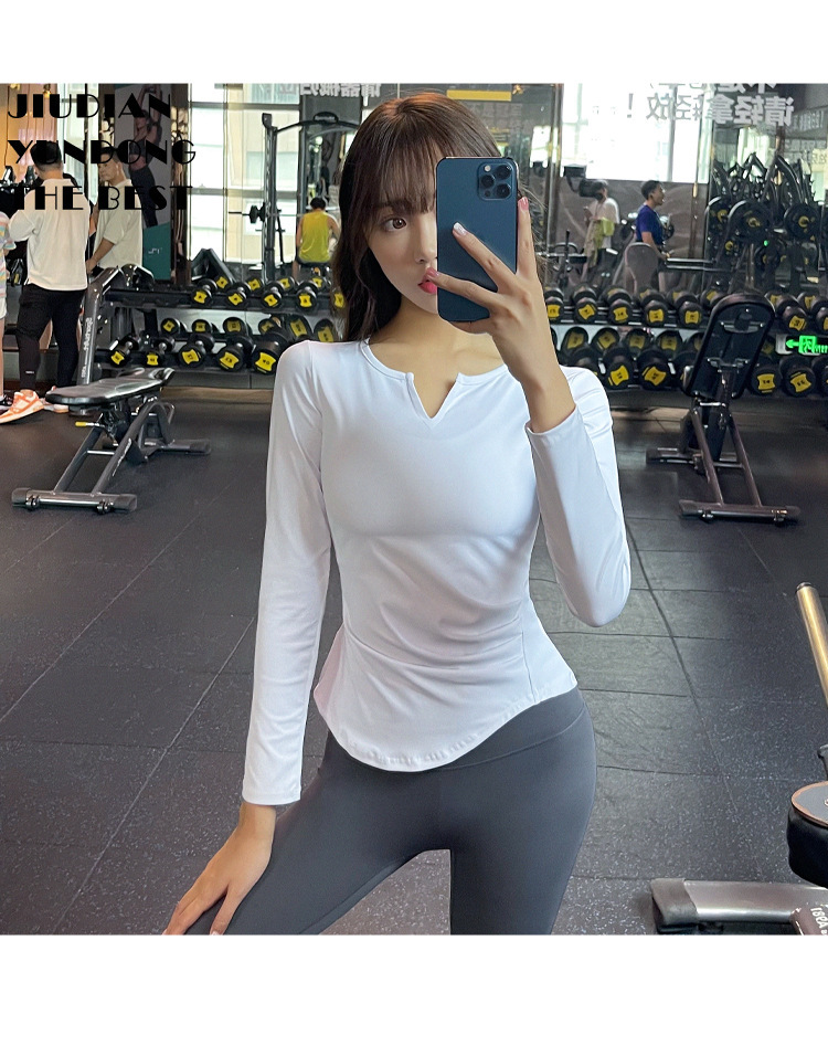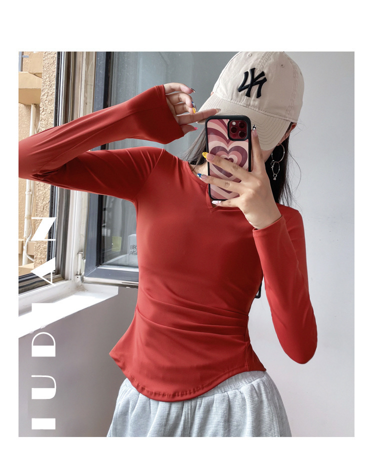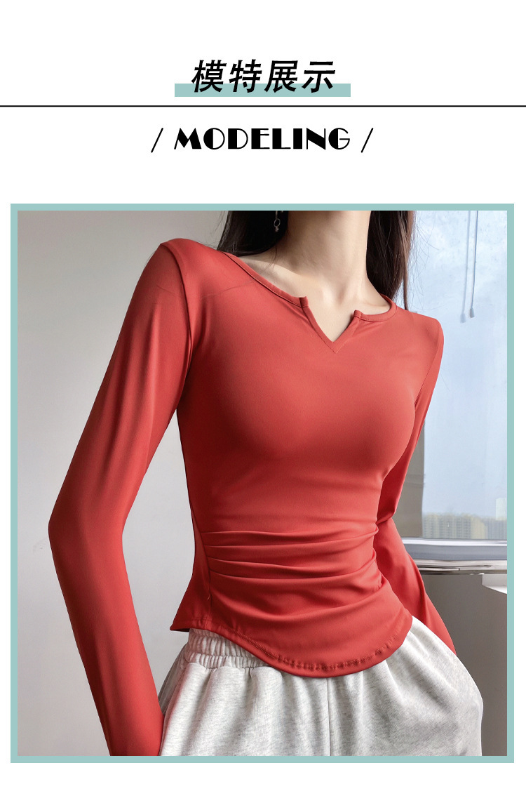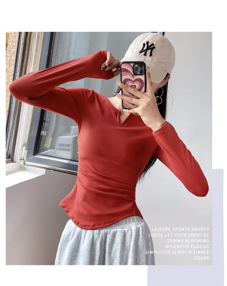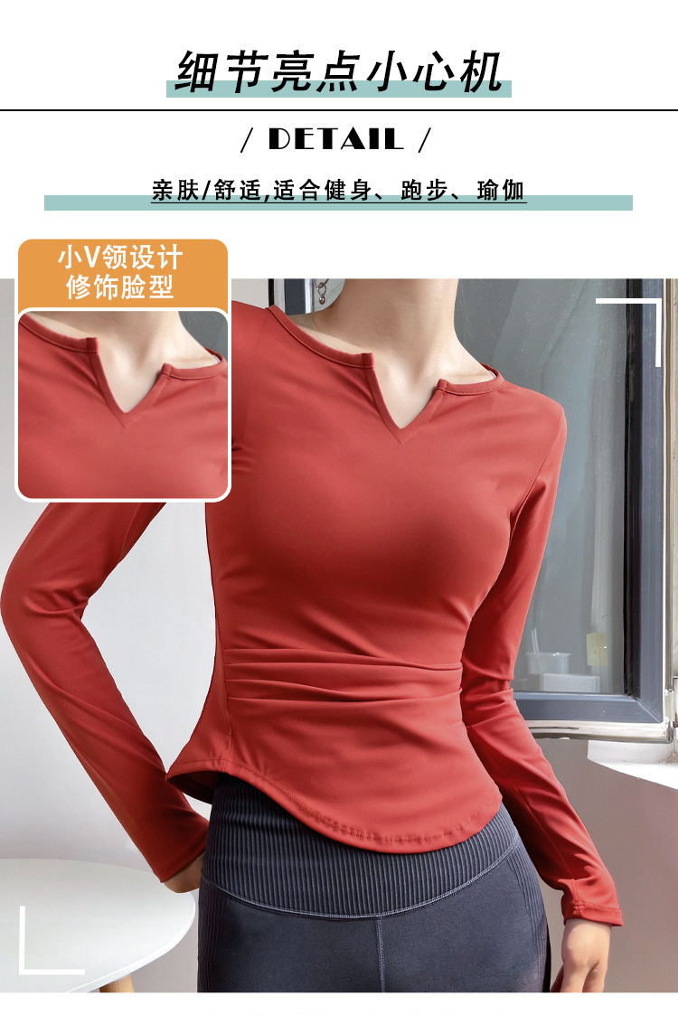 요가복 단색 심플 브이넥 타이트 허리 슬림핏 스포츠 누드감 티셔츠 얇은 슬림핏 러닝 피트니스 탑스토어 가기