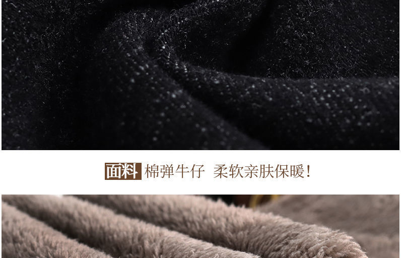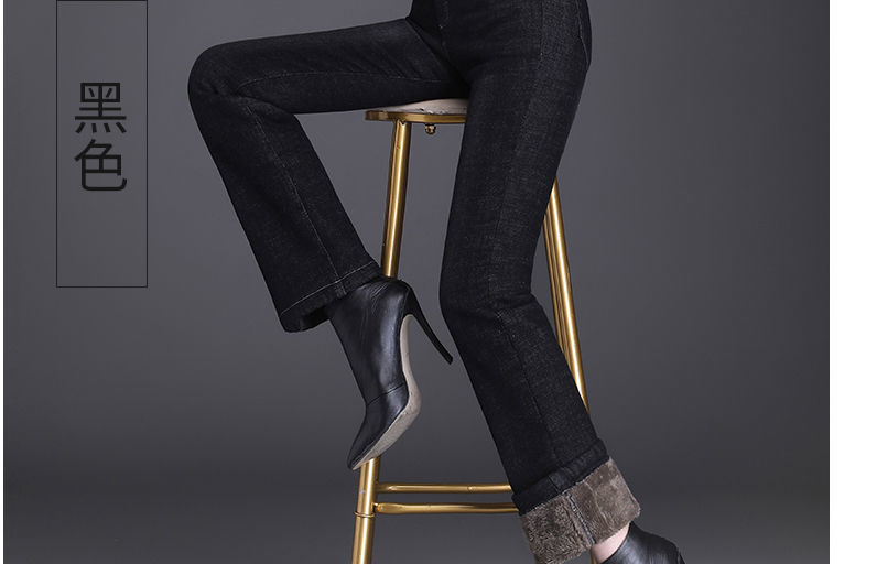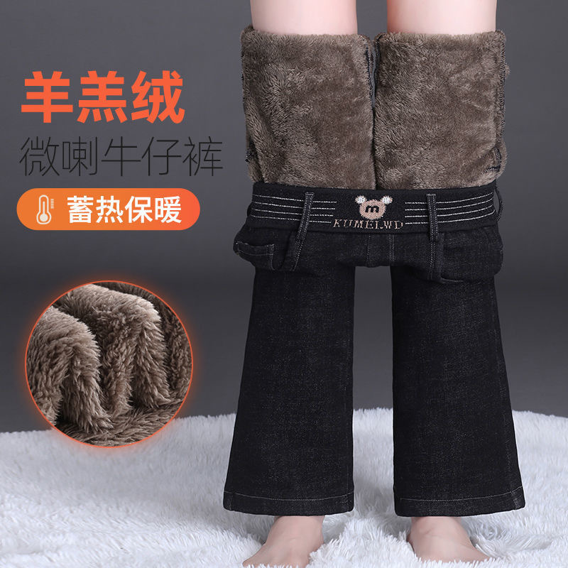 기모 청바지 여성 엘라스틱 하이 웨이스트 2023 겨울 새로운 양고기 양털 면 바지 두꺼운 마이크로 플레어 바지스토어 가기