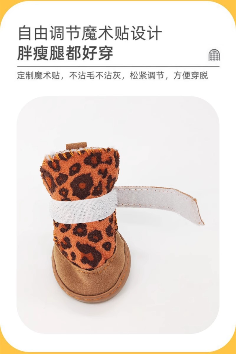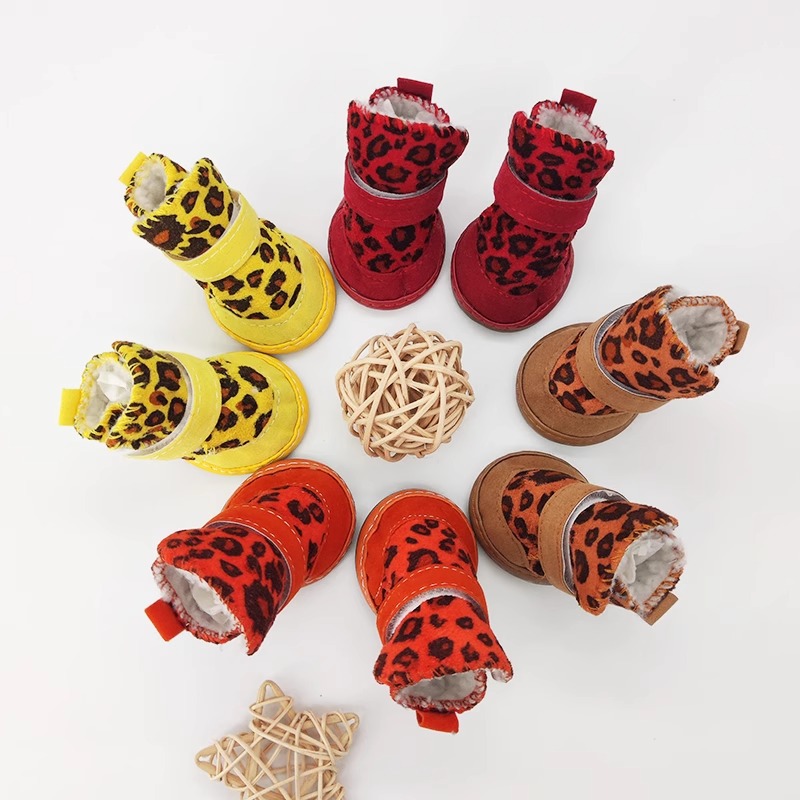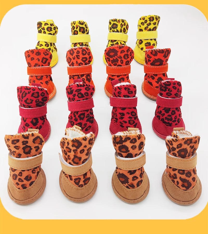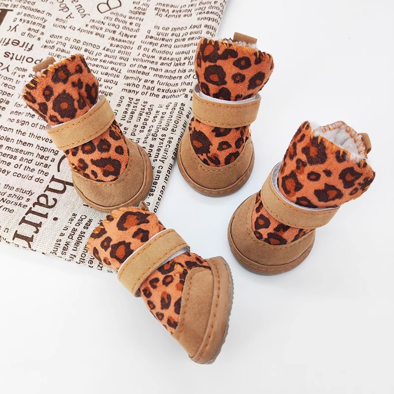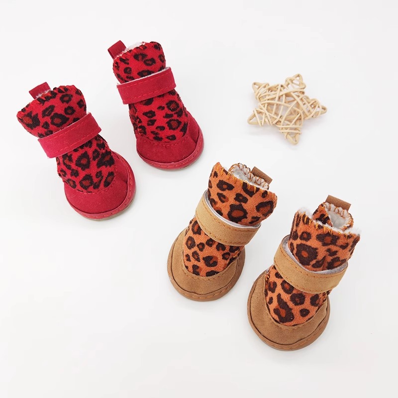 겨울 기모 애완 동물 테디 개 신발 곰보다 면화 신발 작은 개 표범 신발 겨울 발은 머리를 대체 할 수 있습니다