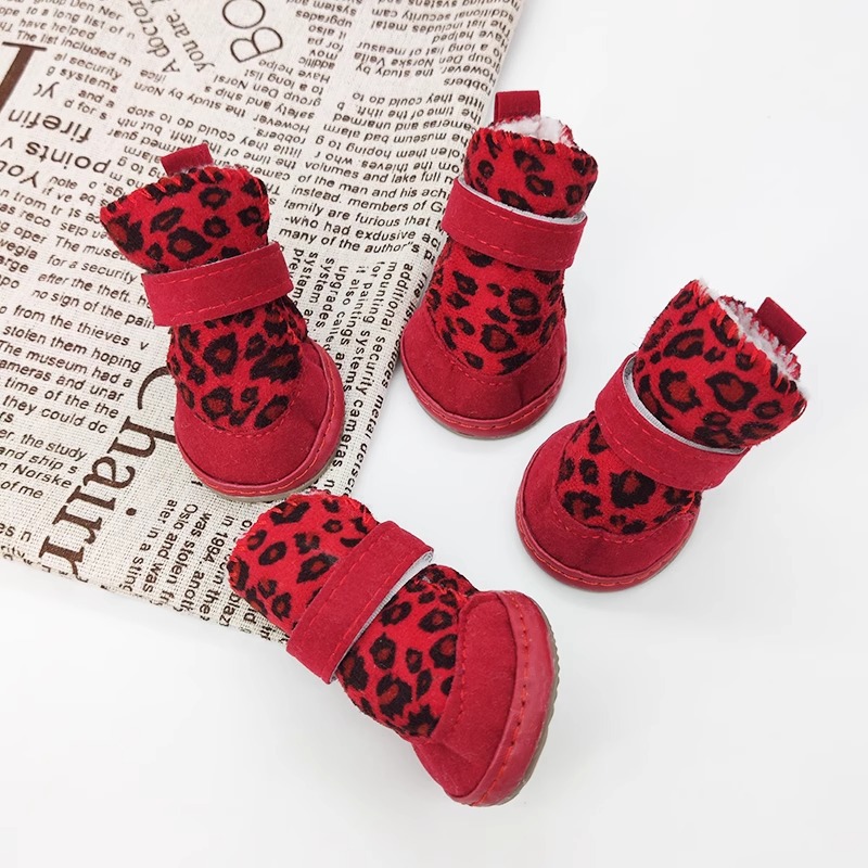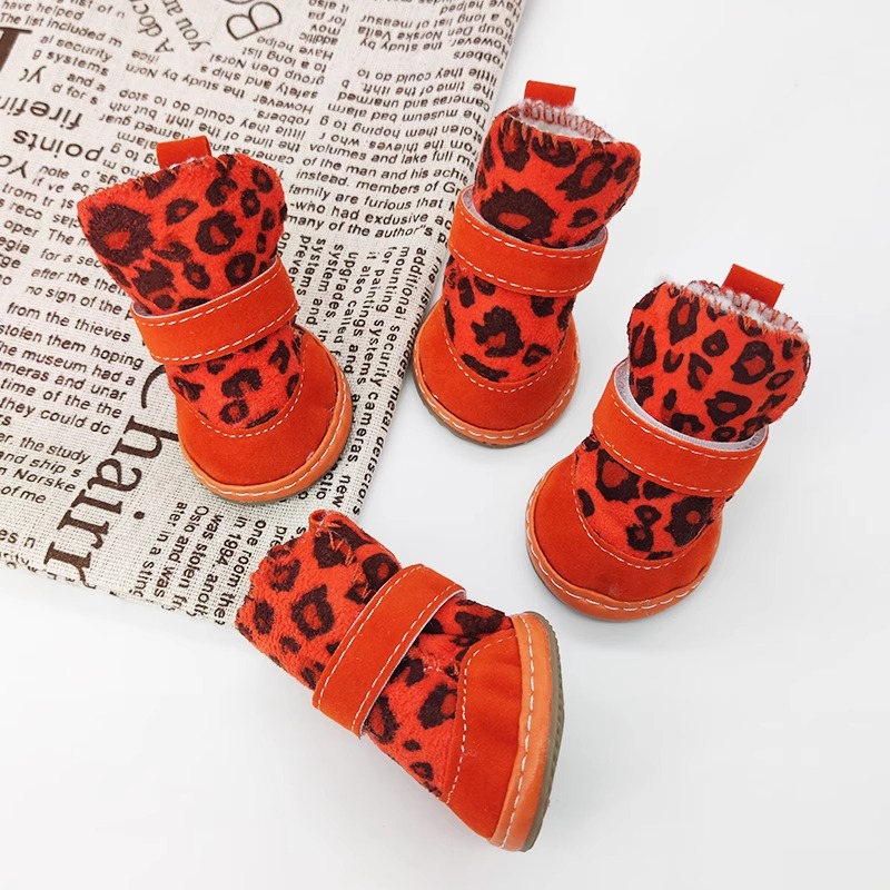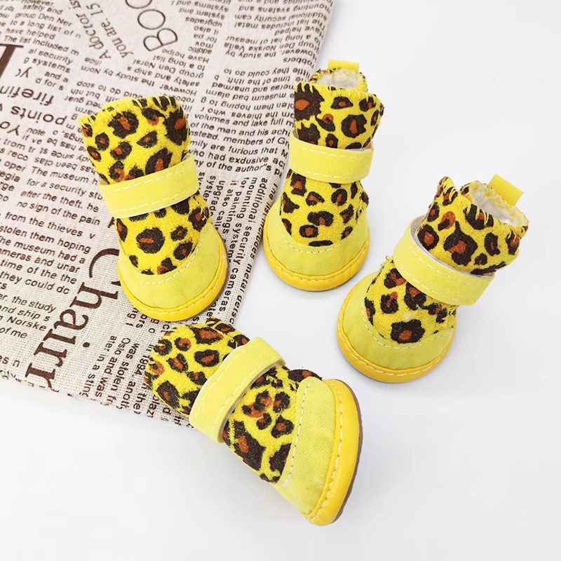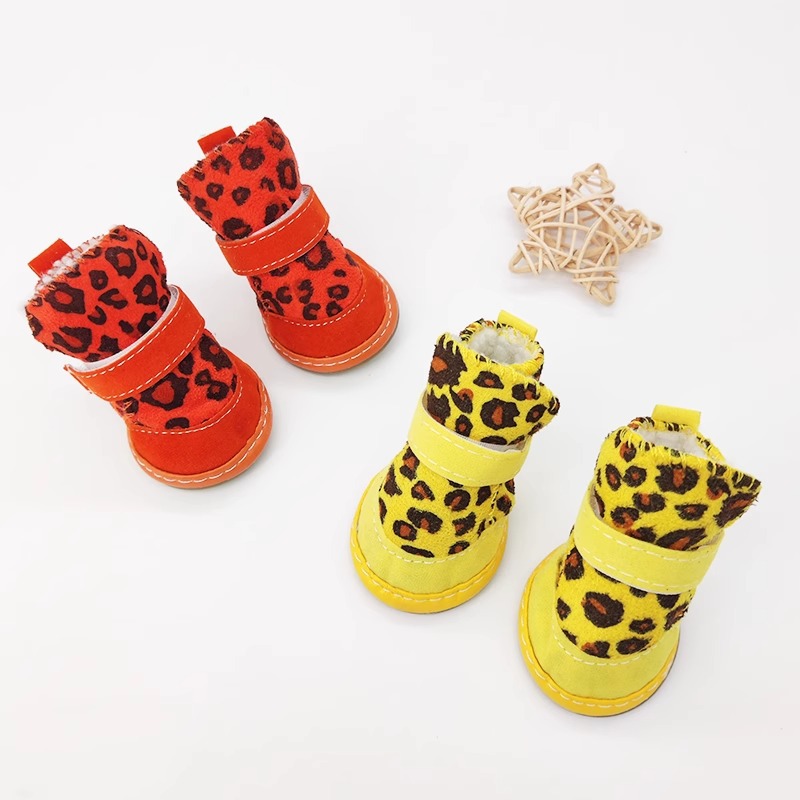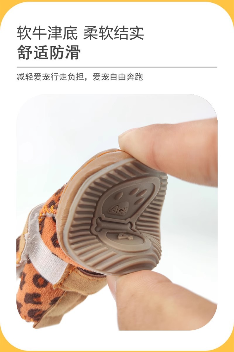 겨울 기모 애완 동물 테디 개 신발 곰보다 면화 신발 작은 개 표범 신발 겨울 발은 머리를 대체 할 수 있습니다