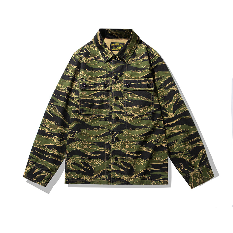 OKONKWO 타이거 스트라이프 카모 타이거 프린트 카모 셔츠 남성 워크웨어 엔지니어 긴팔 셔츠