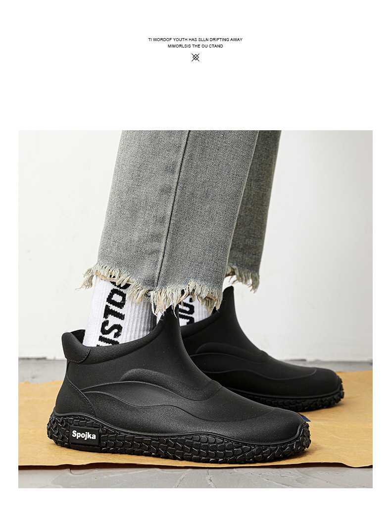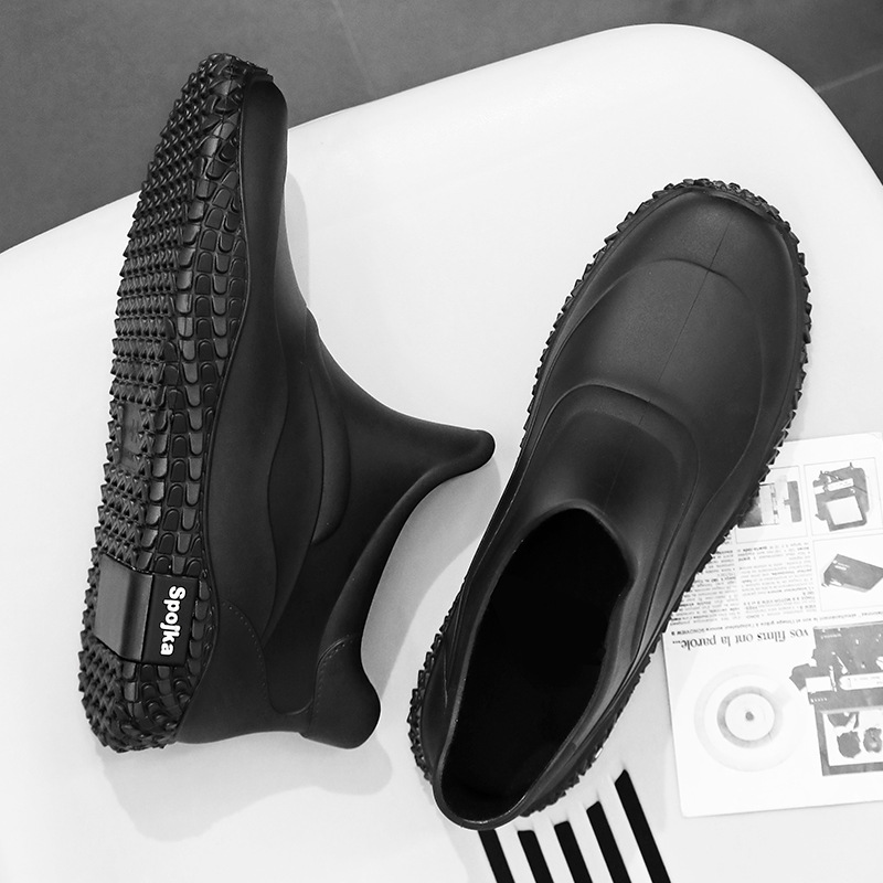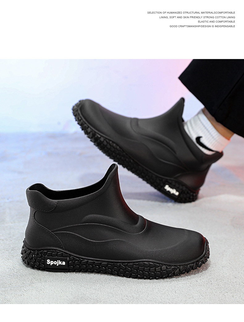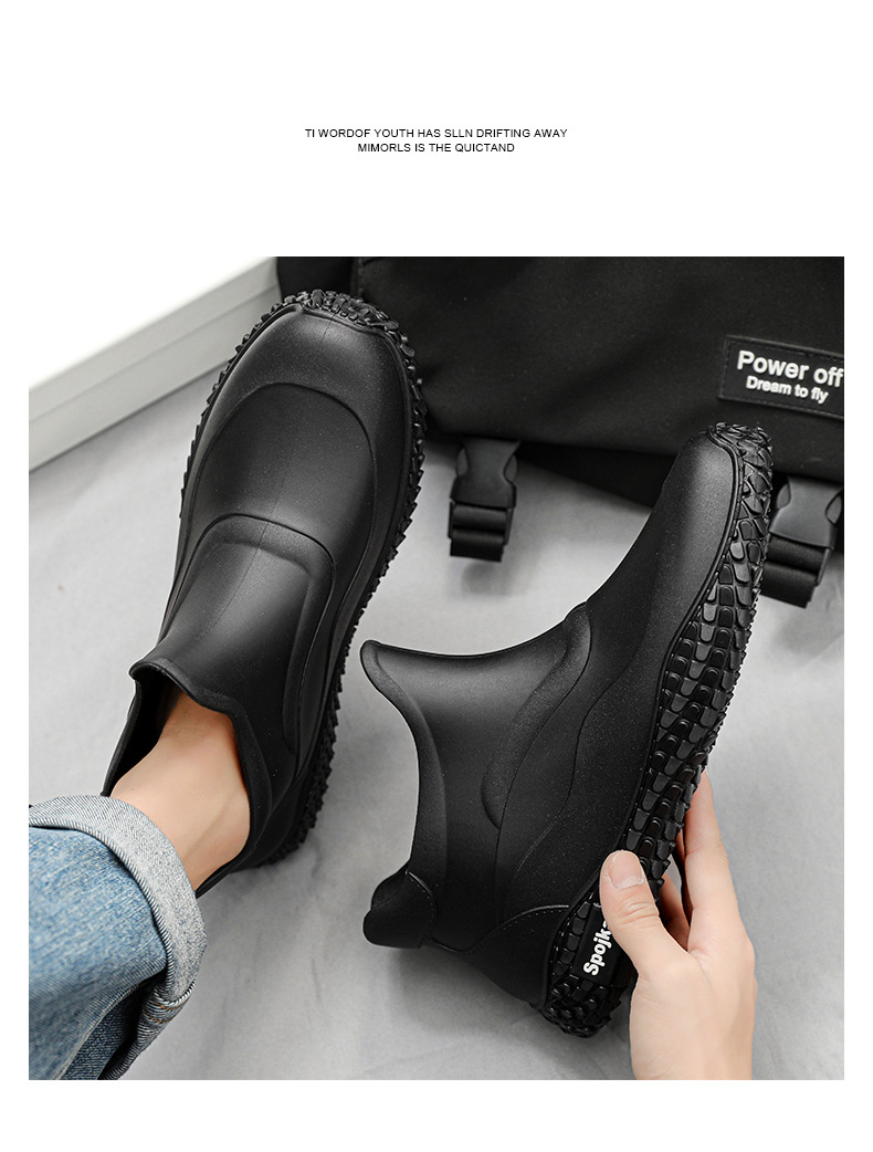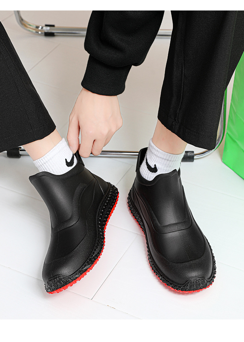 고급 레인 부츠 남성용 새로운 방수 방수 신발 짧은 미드 튜브 미끄럼 방지 레인 부츠 야외 낚시 부츠 주방 고무 신발