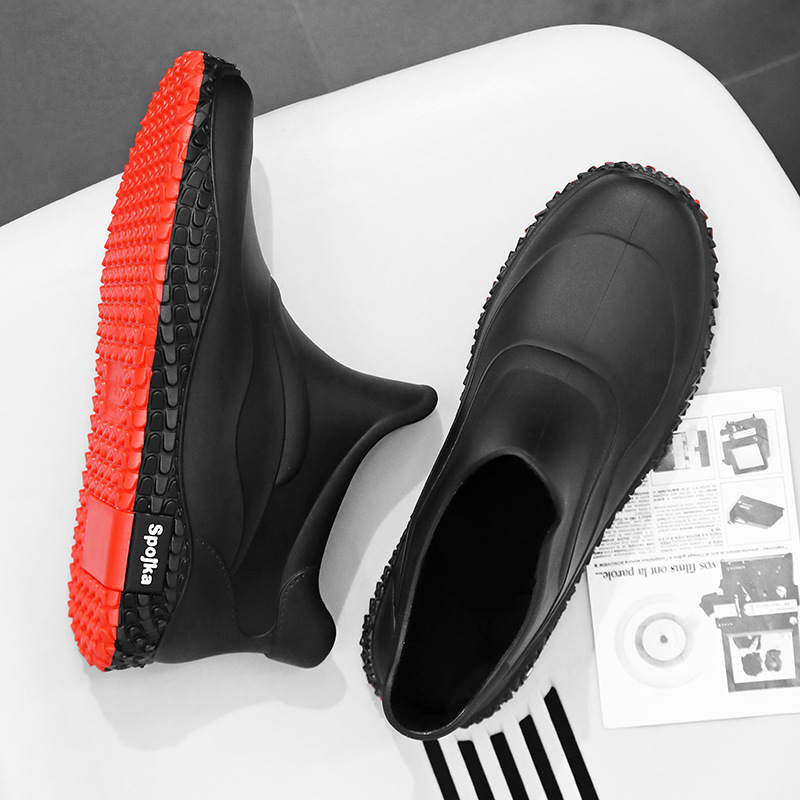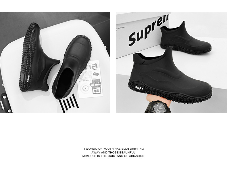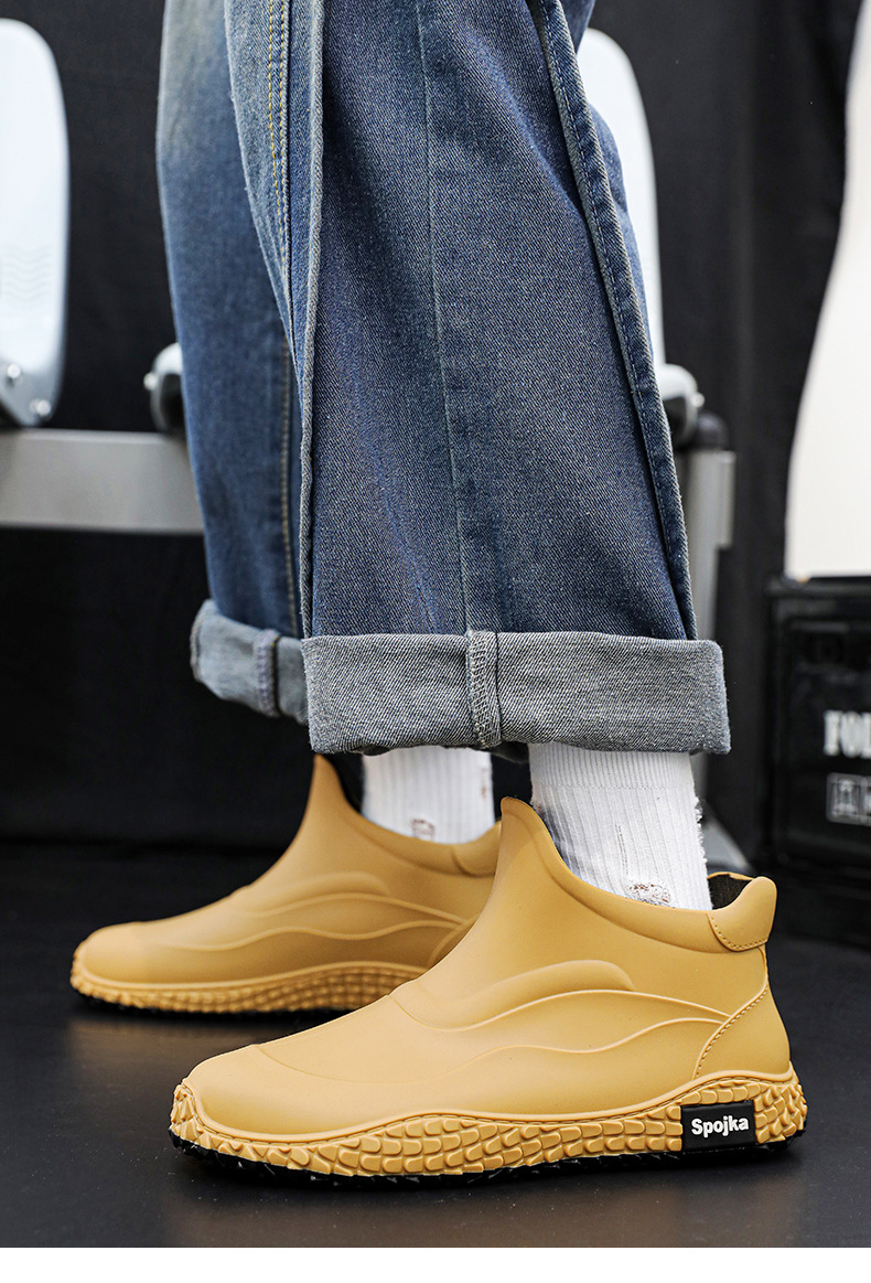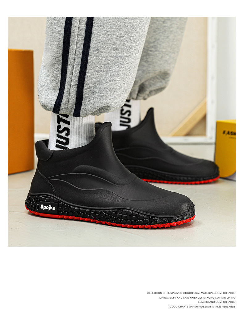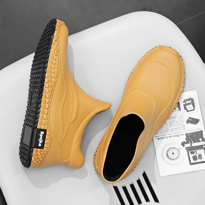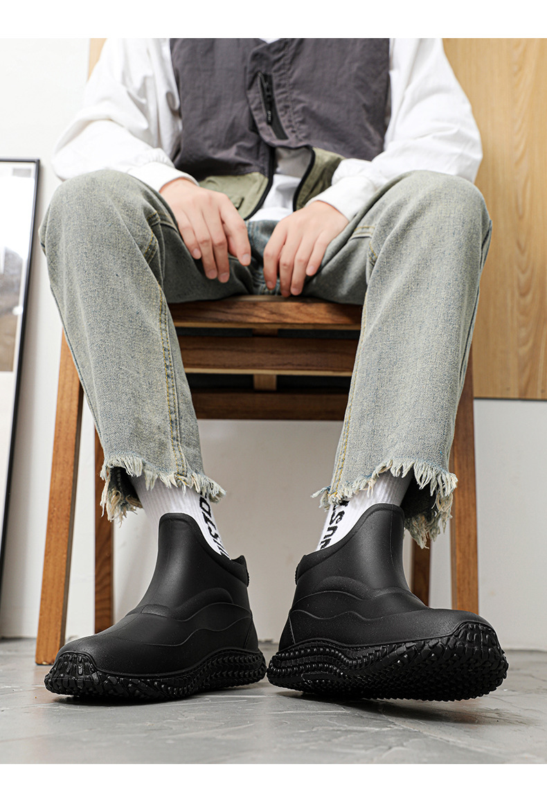 고급 레인 부츠 남성용 새로운 방수 방수 신발 짧은 미드 튜브 미끄럼 방지 레인 부츠 야외 낚시 부츠 주방 고무 신발