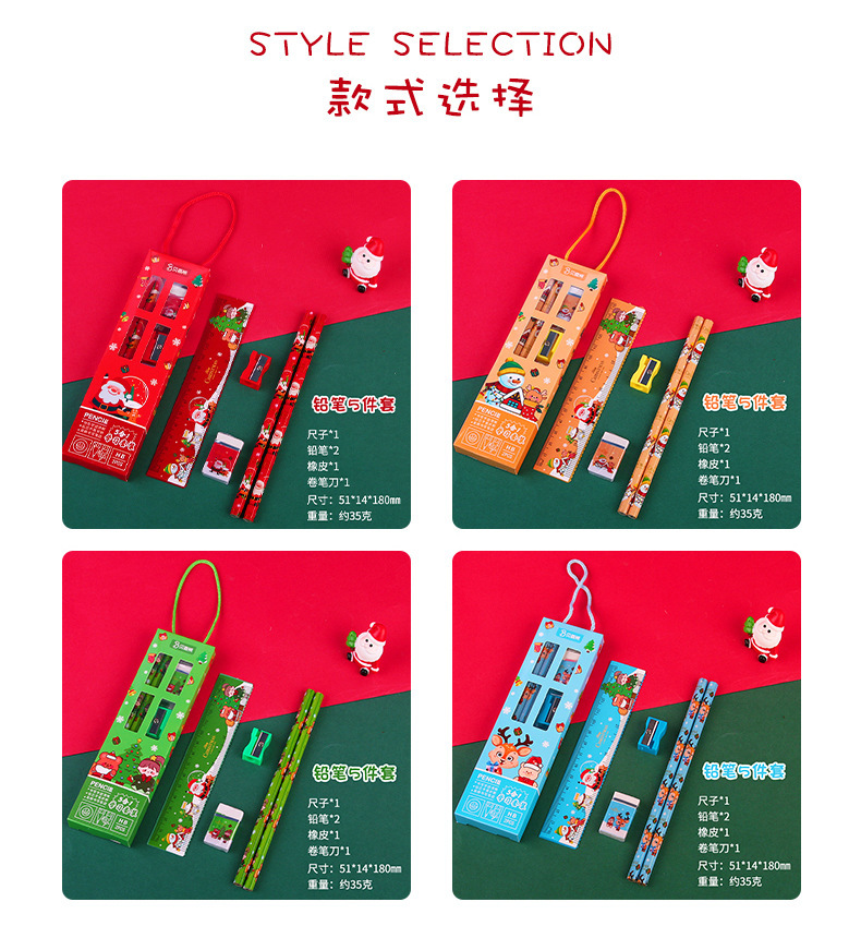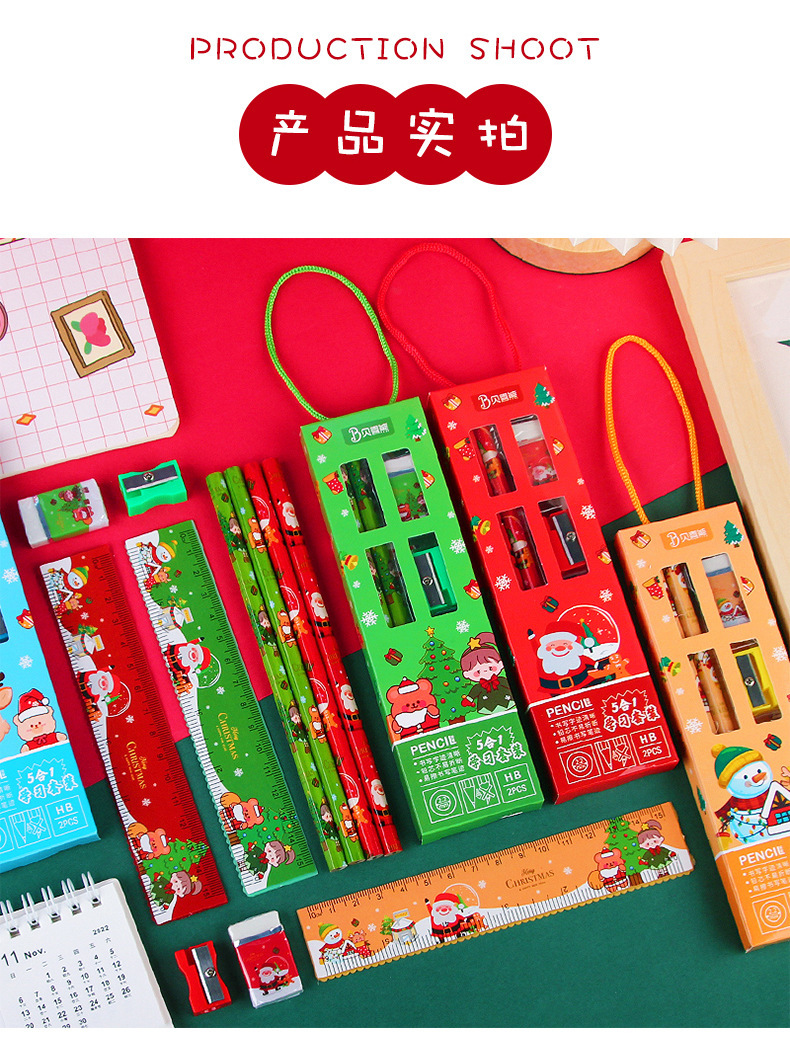어린이 크리스마스 연필 문구 휴대용 5-in-1 학습 세트 선물 상자 유치원 크리스마스 생일 동반 선물스토어 가기