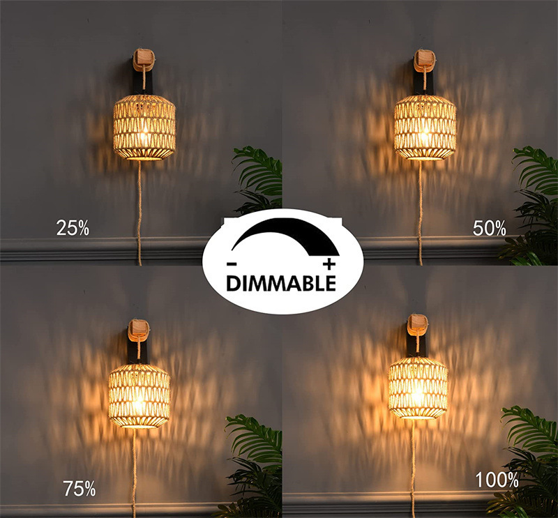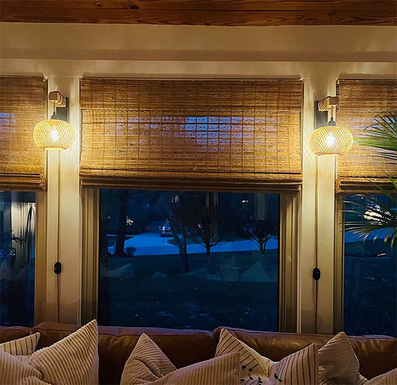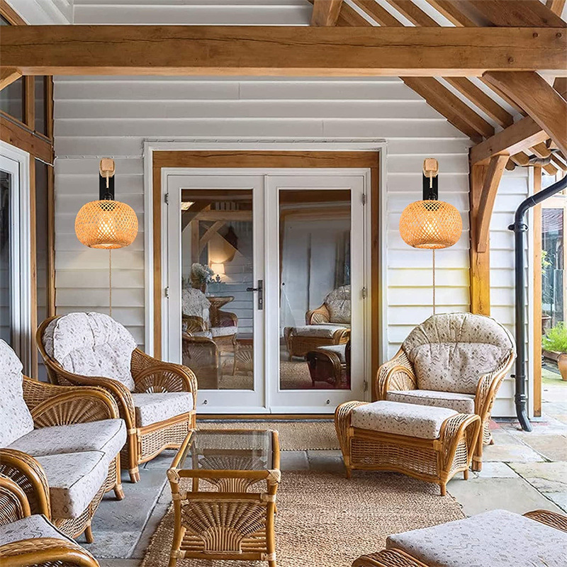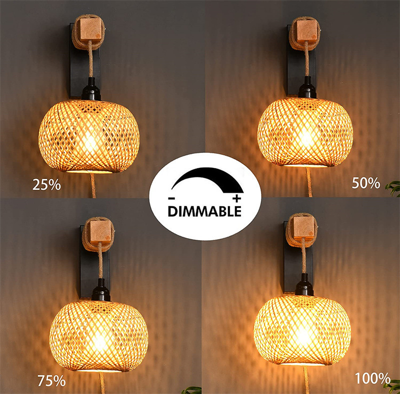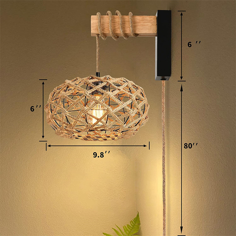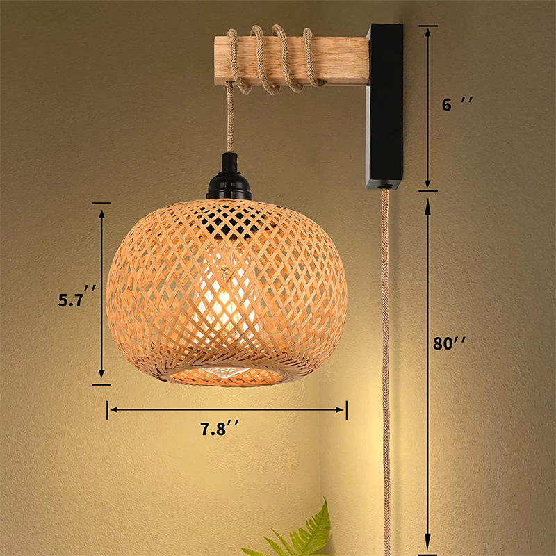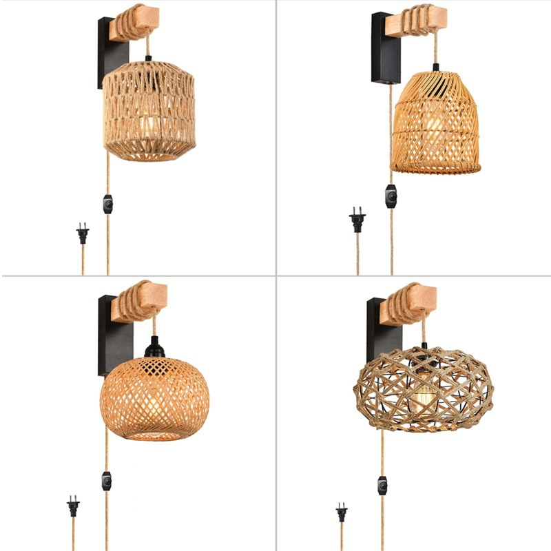 플러그인 복고풍 일본 대나무 머리맡 벽 램프 레스토랑 등나무 램프 침실 농가 국가 실내 배경 벽 램프