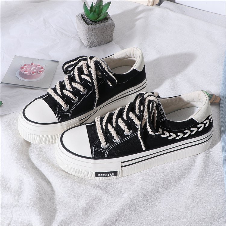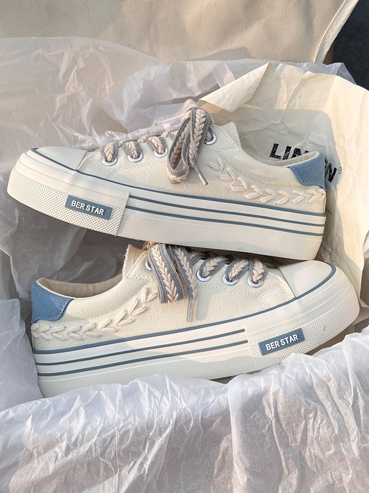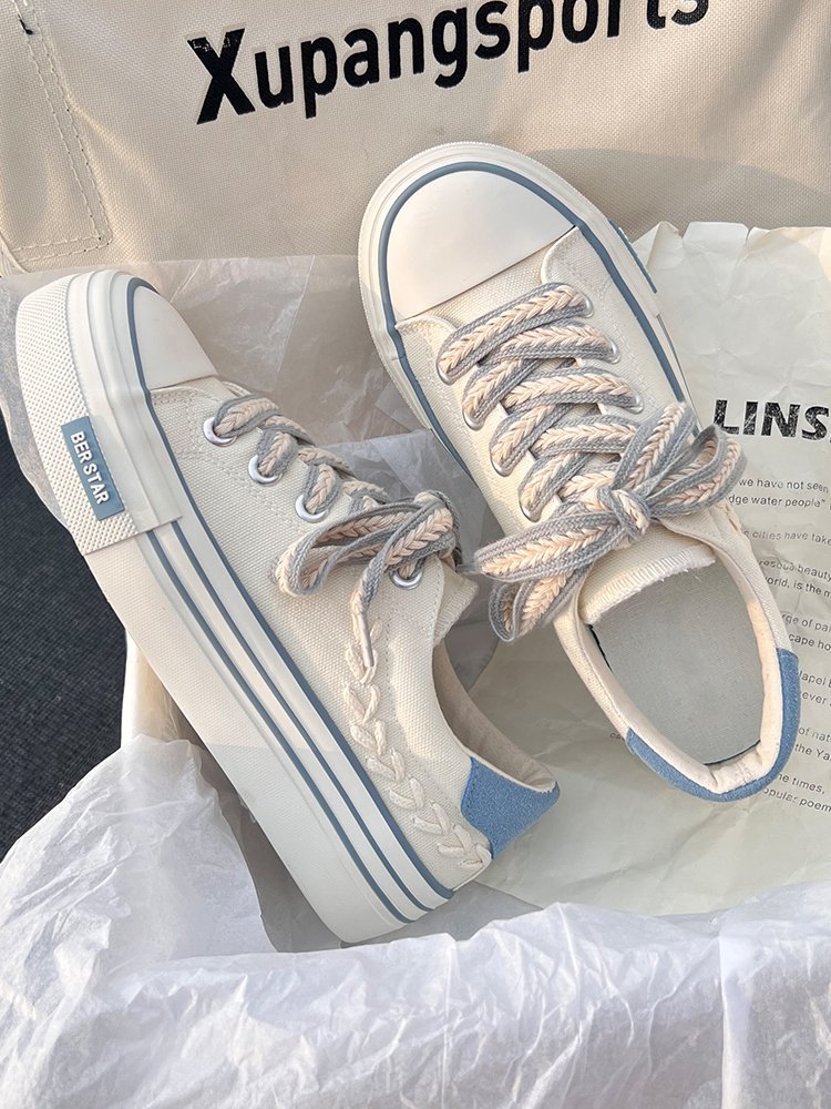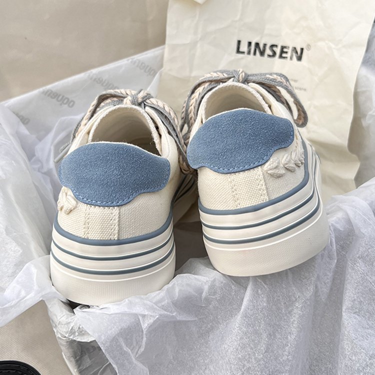 캔버스 슈즈 여성용 봄 통기성 틈새 최신 유행 신발 2023 새로운 한국식 올매치 화이트 슈즈 플랫폼 스니커즈스토어 가기