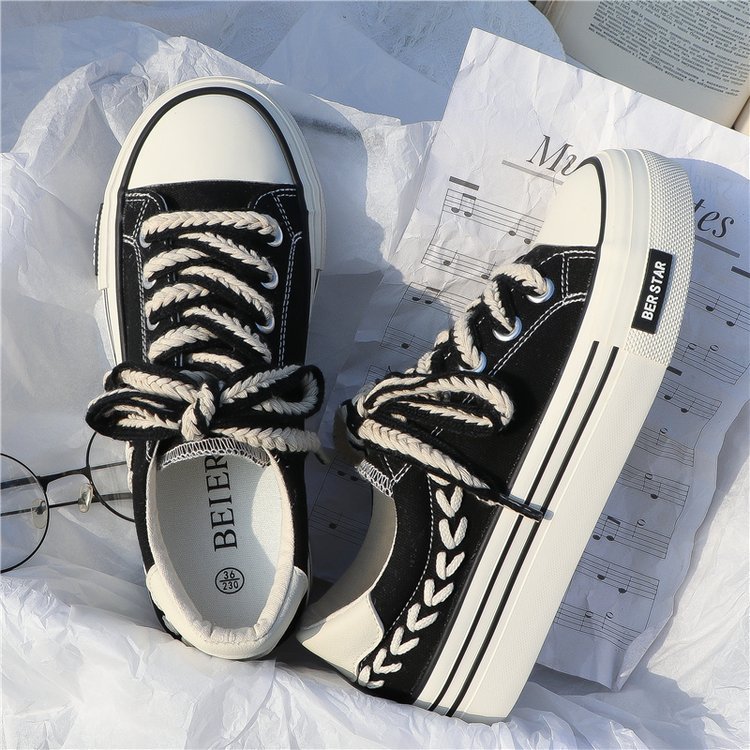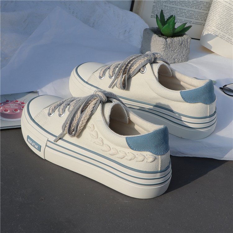캔버스 슈즈 여성용 봄 통기성 틈새 최신 유행 신발 2023 새로운 한국식 올매치 화이트 슈즈 플랫폼 스니커즈