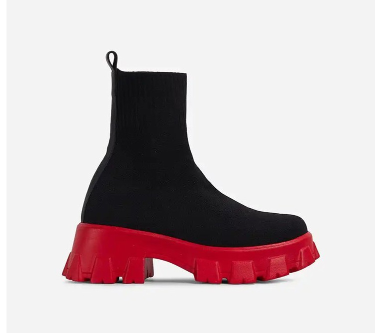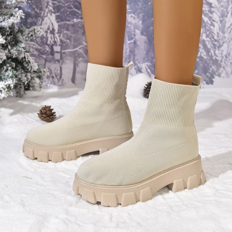 가을 겨울 신상 대형 사이즈 여성 신발, 플라이 니트 갑피, 두꺼운 밑창, 하이탑, 키높이 여성화