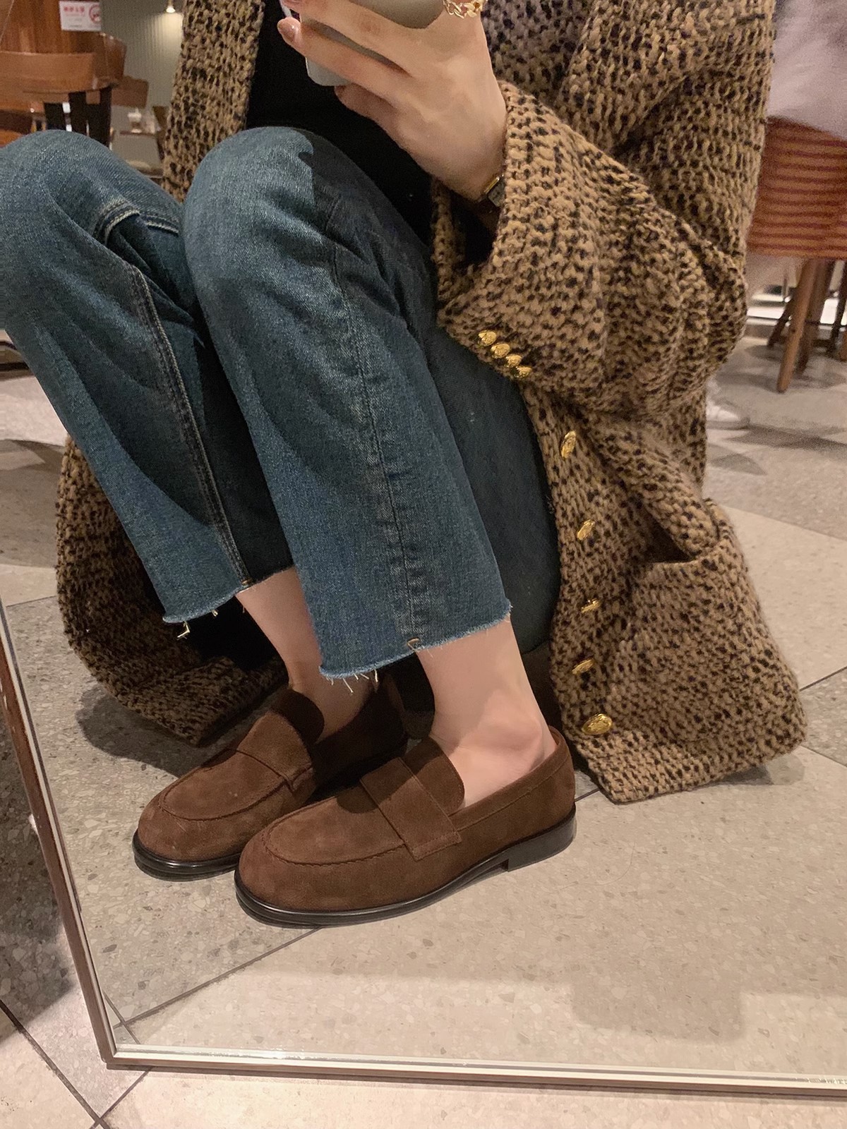 • 카키 다크 브라운 스웨이드