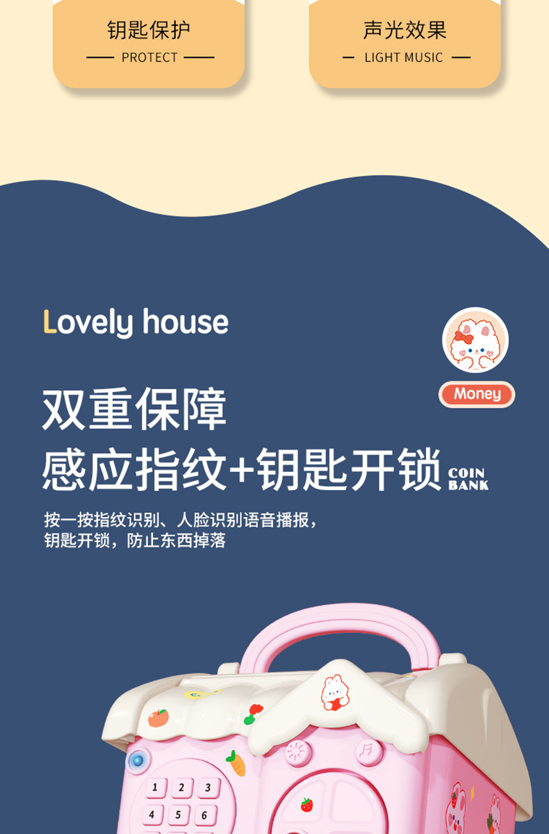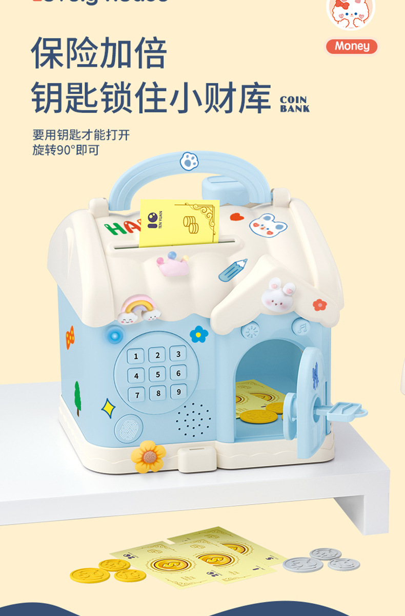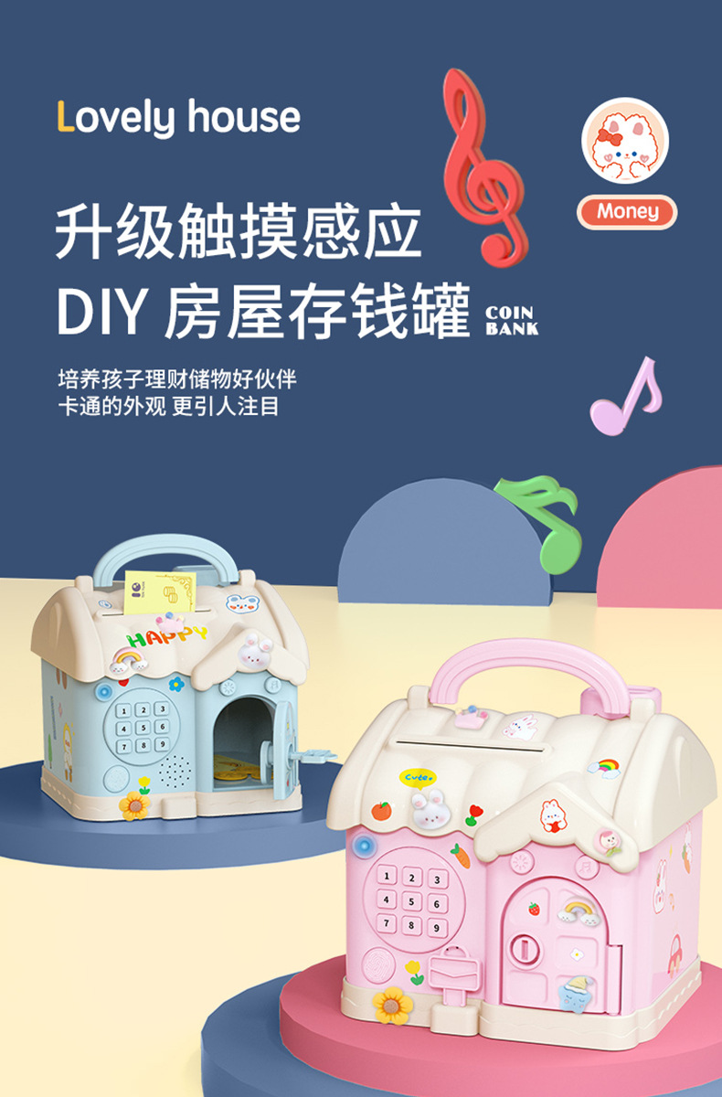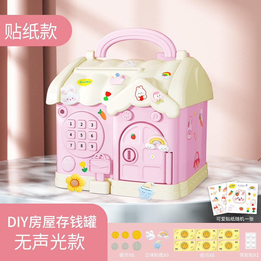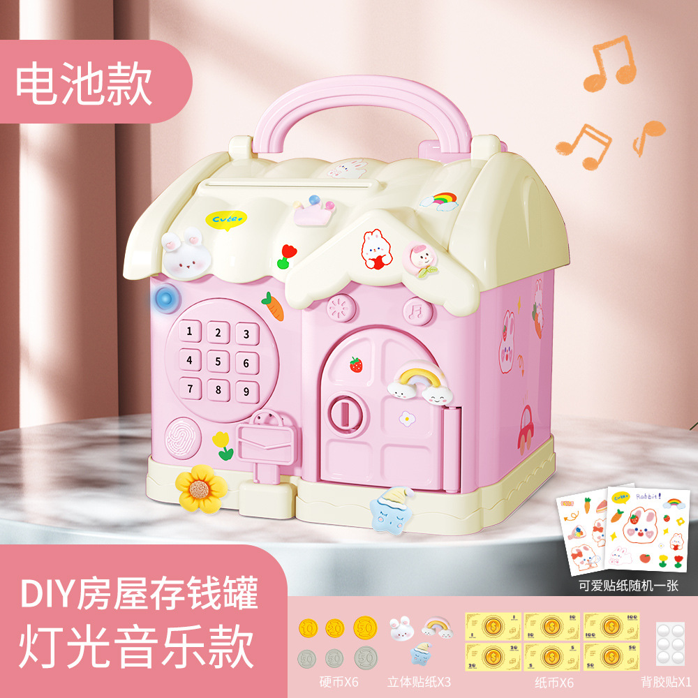 어린이 DIY 장난감 돼지 저금통 시뮬레이션 지문 얼굴 소리와 소년과 소녀를위한 가벼운 안전 선물 하우스 돼지 저금통