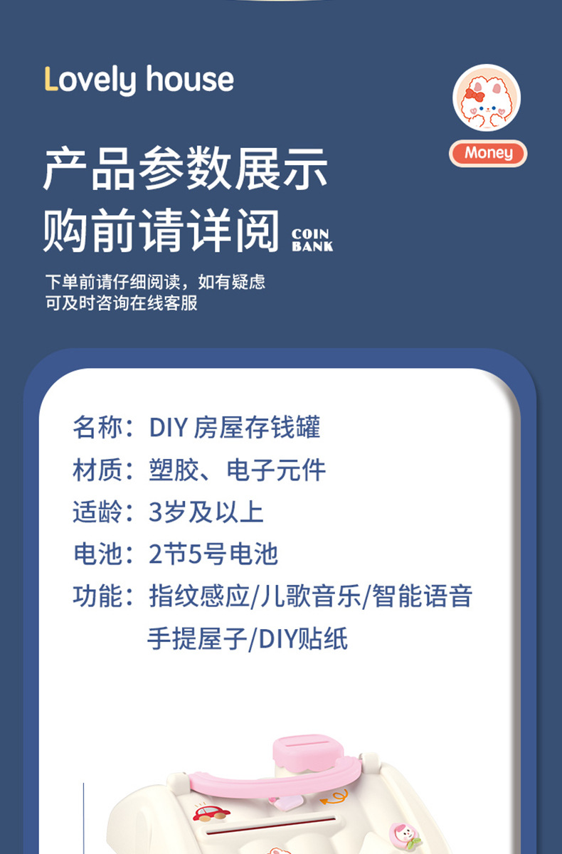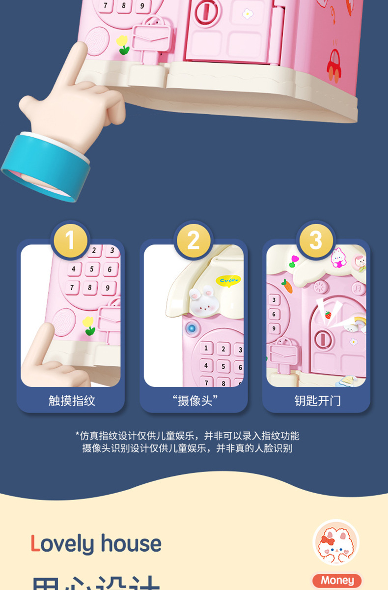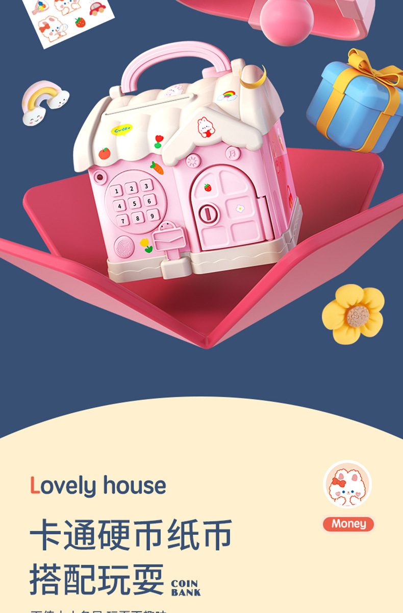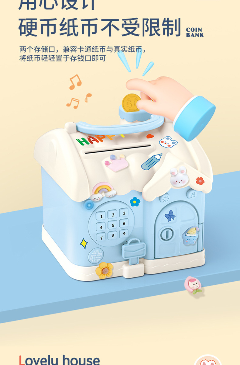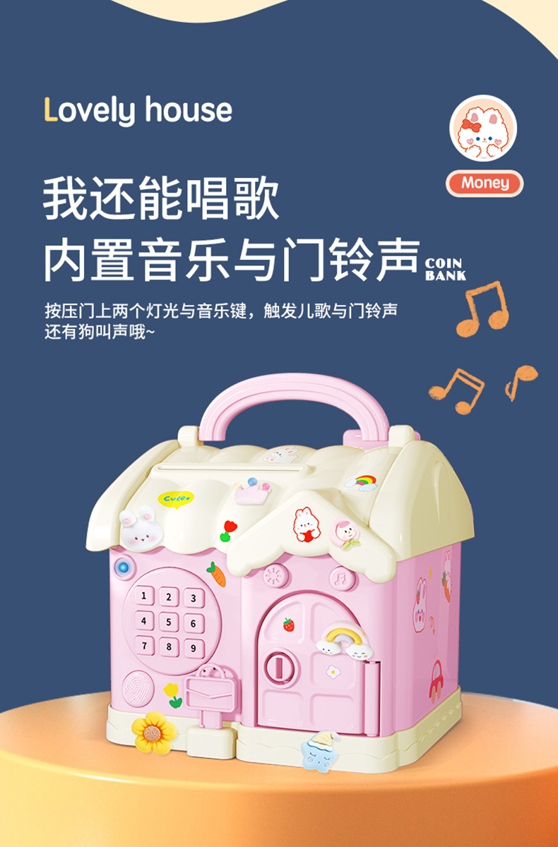 어린이 DIY 장난감 돼지 저금통 시뮬레이션 지문 얼굴 소리와 소년과 소녀를위한 가벼운 안전 선물 하우스 돼지 저금통