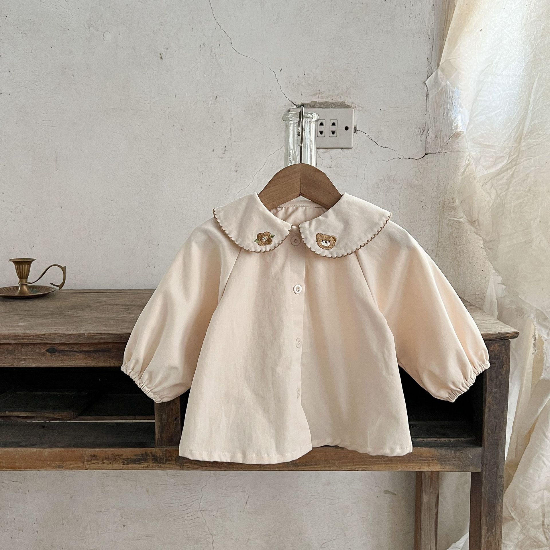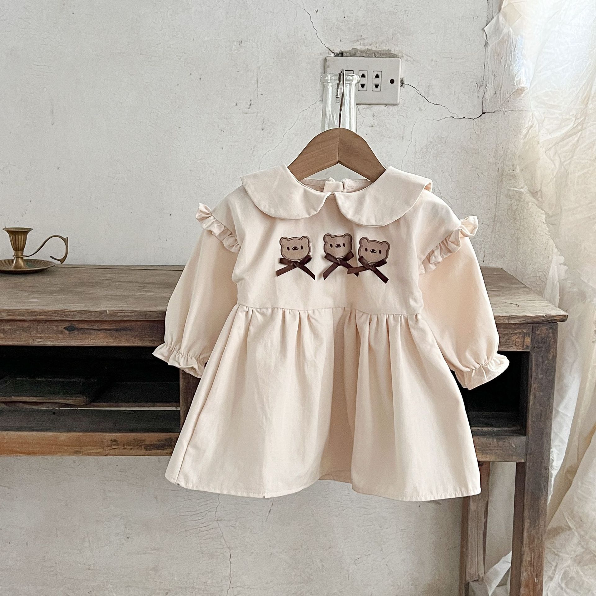 한국식 봄 어린이 면화 곰 탑 멜빵 세트 in 나비 조끼 스웨터 만화 치마스토어 가기