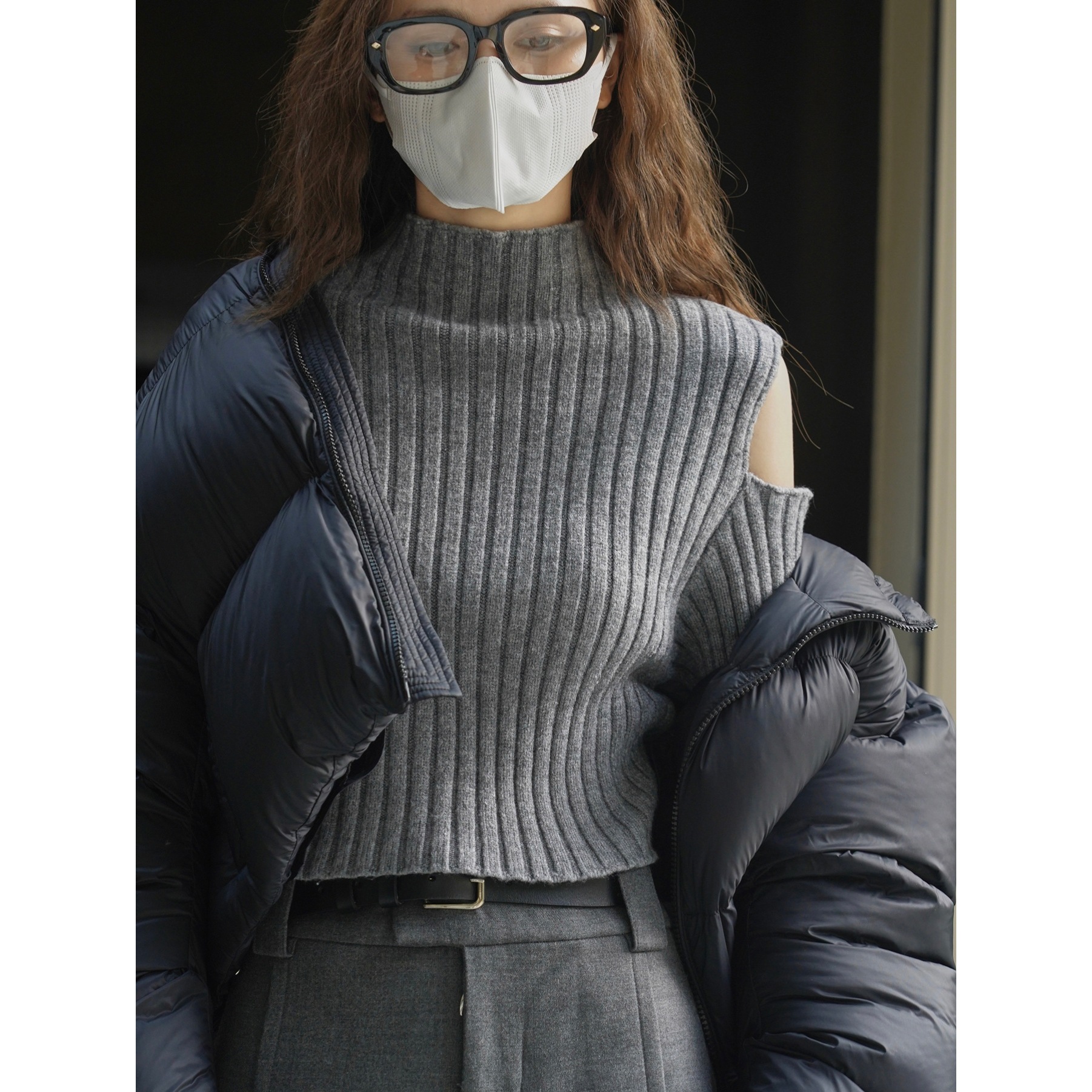 루브르 겨울 새로운 한국 스타일 유행 현대 짧은 오프 숄더 스웨터 슬림핏 슬리밍 부드러운 밀랍 피부 친화적 인 여성용 탑