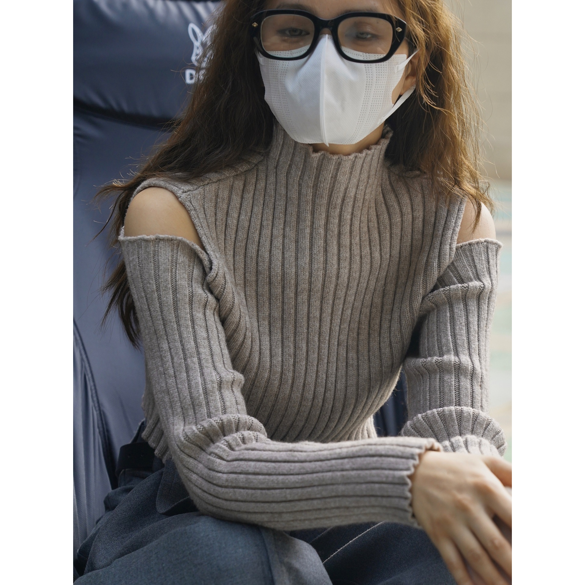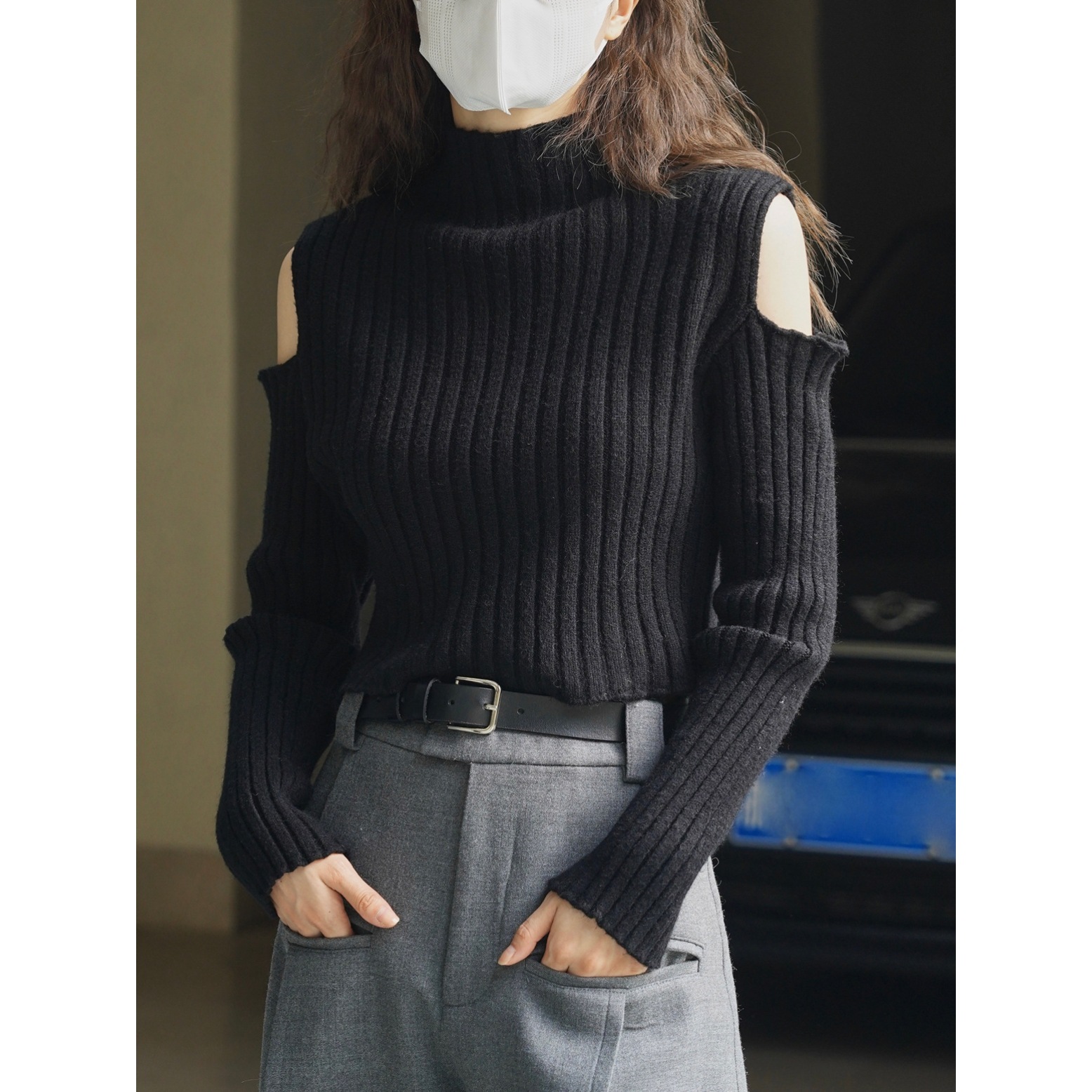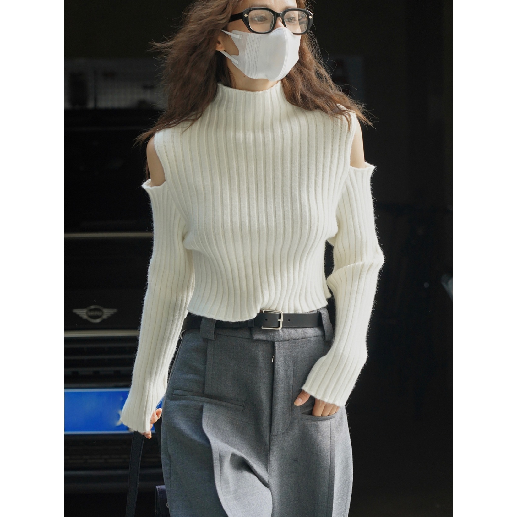 루브르 겨울 새로운 한국 스타일 유행 현대 짧은 오프 숄더 스웨터 슬림핏 슬리밍 부드러운 밀랍 피부 친화적 인 여성용 탑스토어 가기