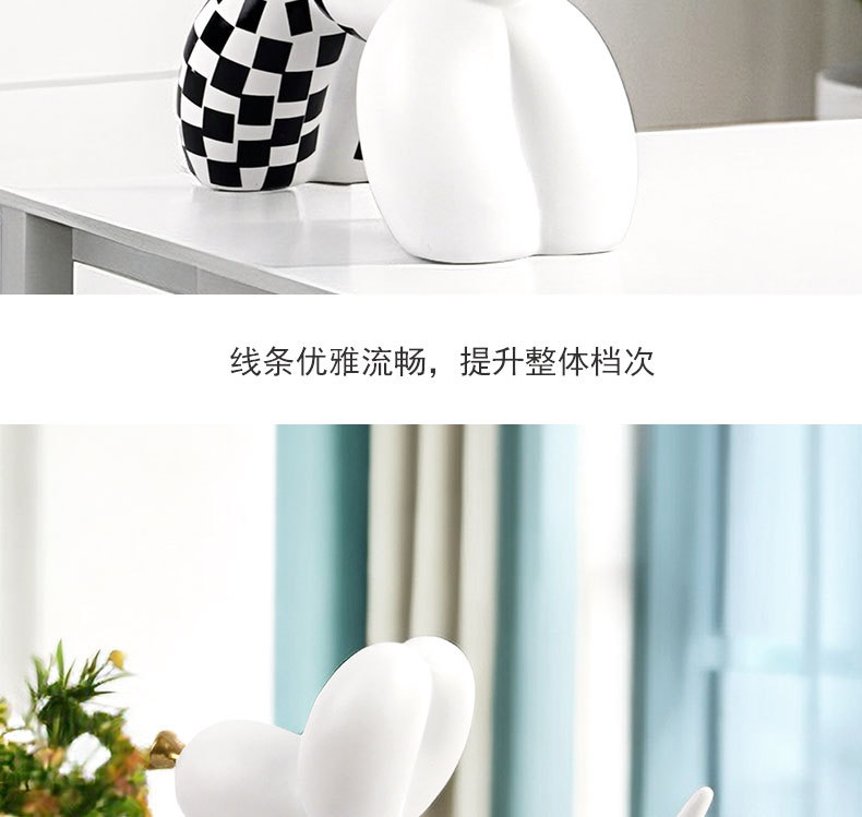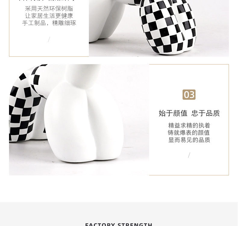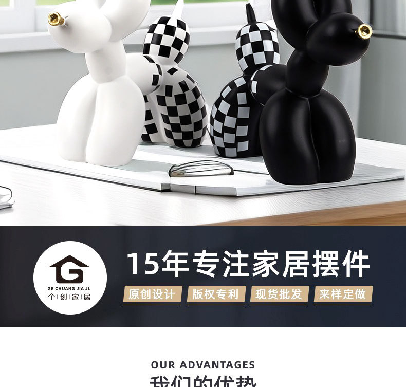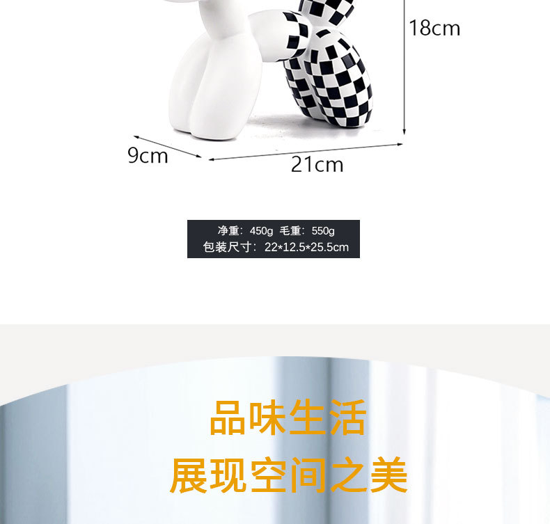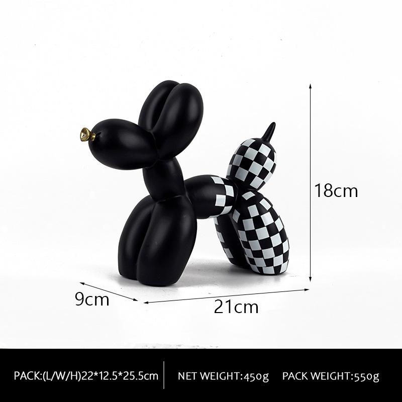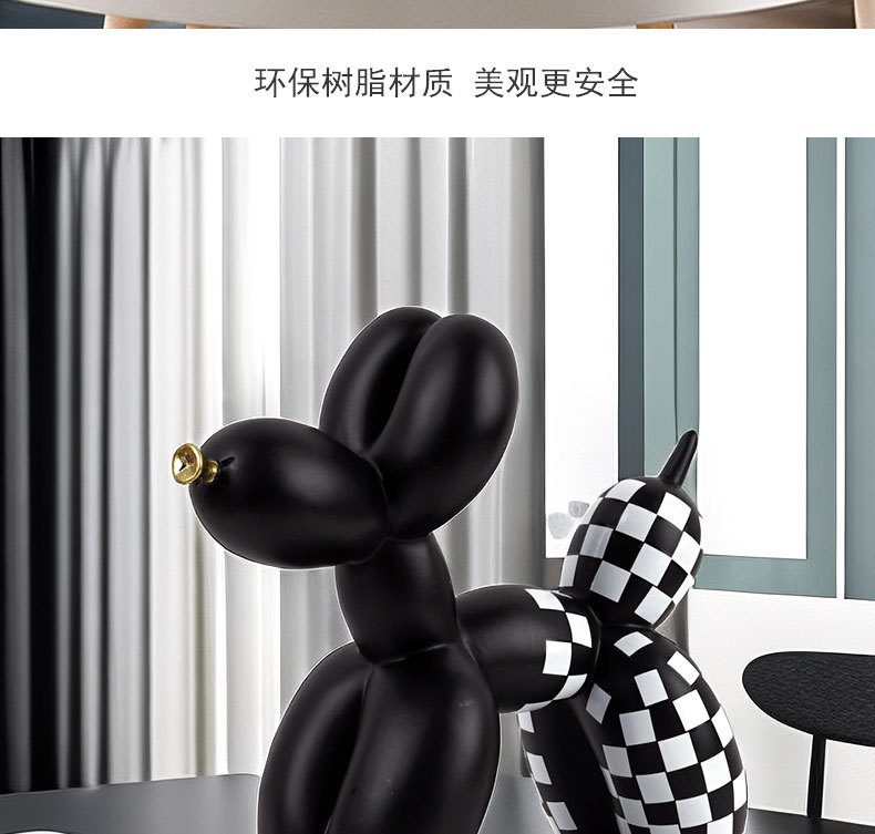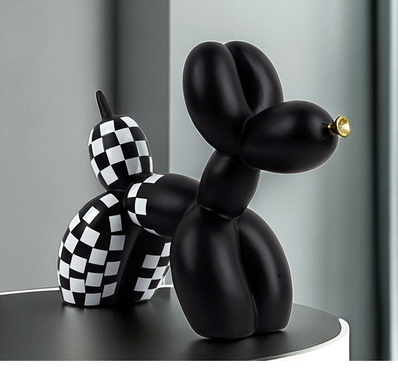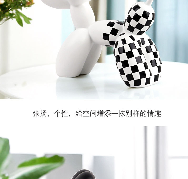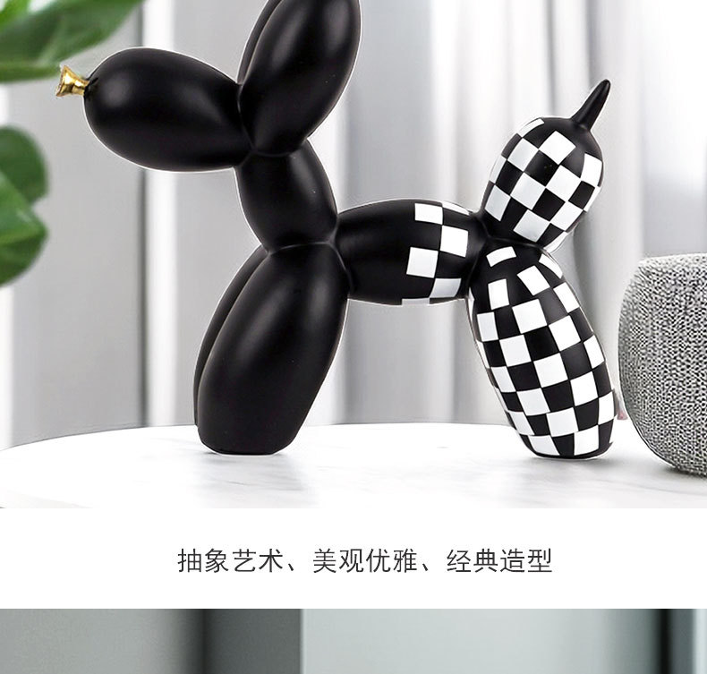 국경을 넘는 흑백 체커보드 무늬 골드 입 풍선 개 장식품, 가정 거실 TV 캐비닛 부드러운 장식용 수지 공예품