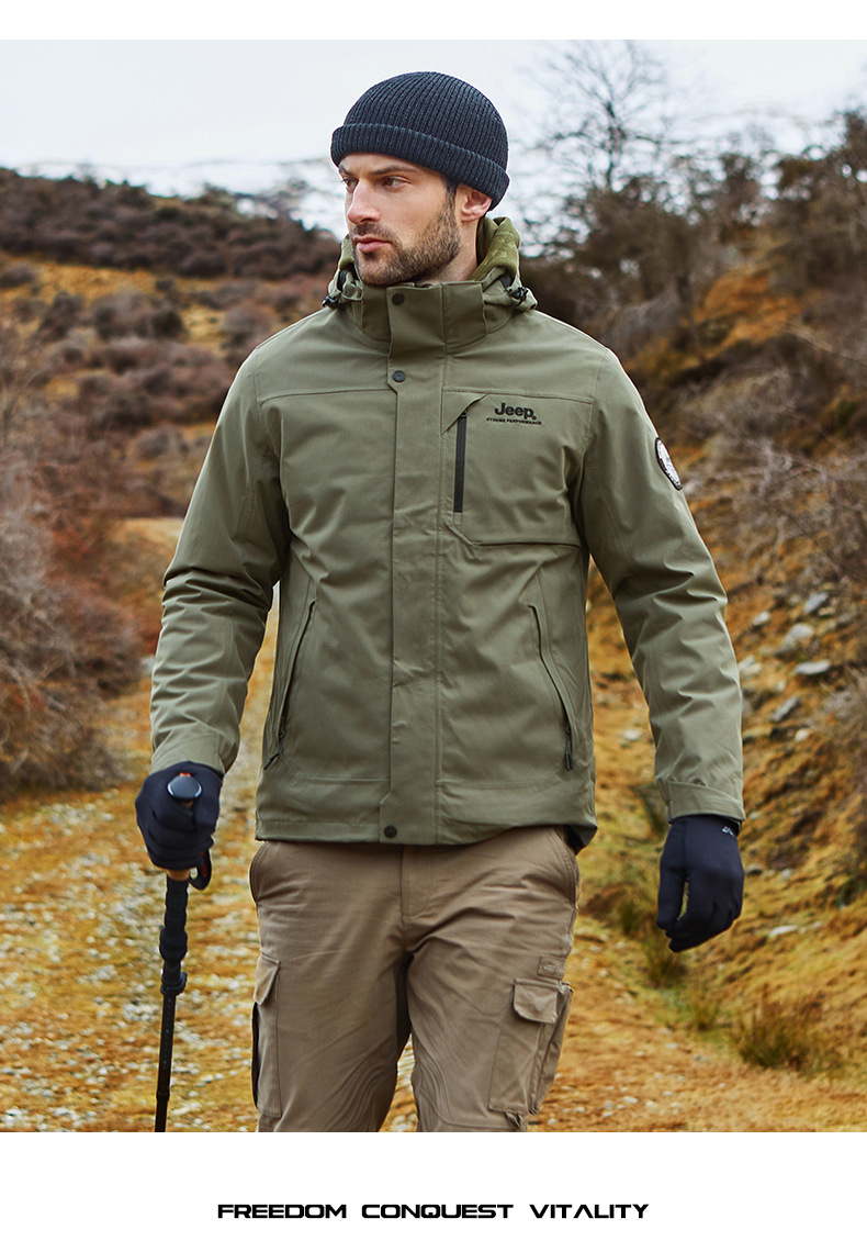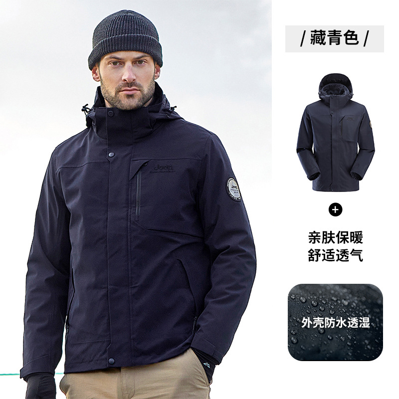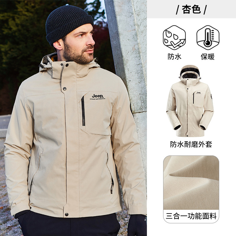 지프 지프 방수 재킷 남성용 3-in-One 분리형 등산 세트 소프트 쉘 방한 두꺼운 재킷
