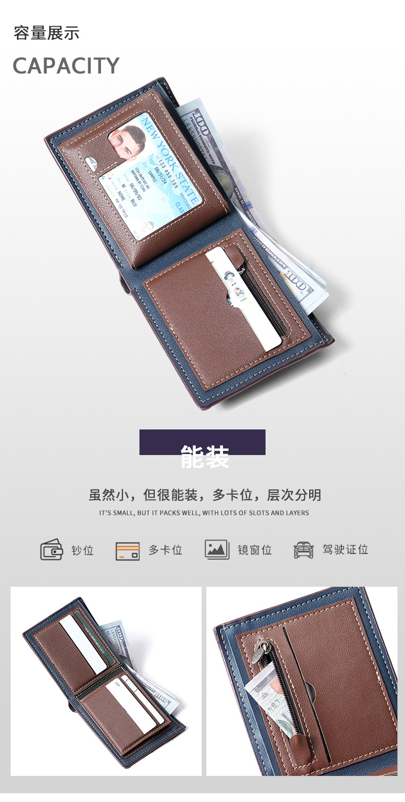 남성용 짧은 멀티 카드 비즈니스 지갑 패션 남성용 지퍼 동전 지갑 대용량 남성용 청소년 머니 클립