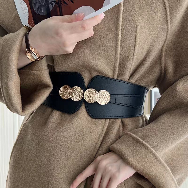 한국 스타일 심플 샤넬 스타일 여성의 우아한 우아한 느슨한 장식 와이드 벨트 스커트 코트 2023 New스토어 가기