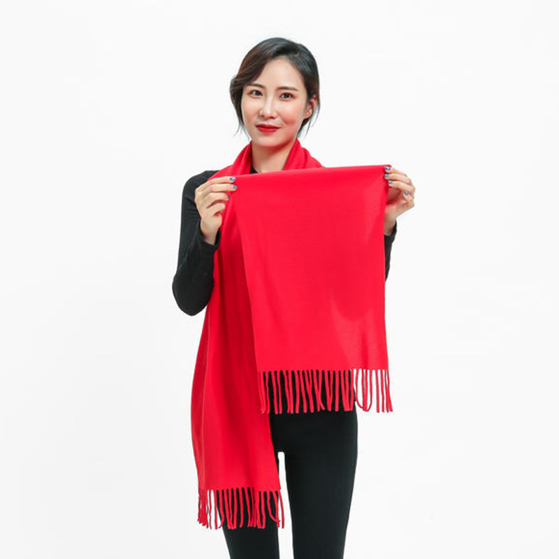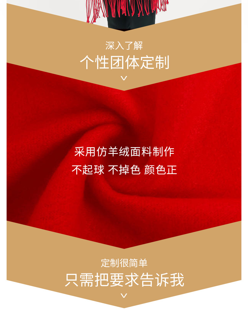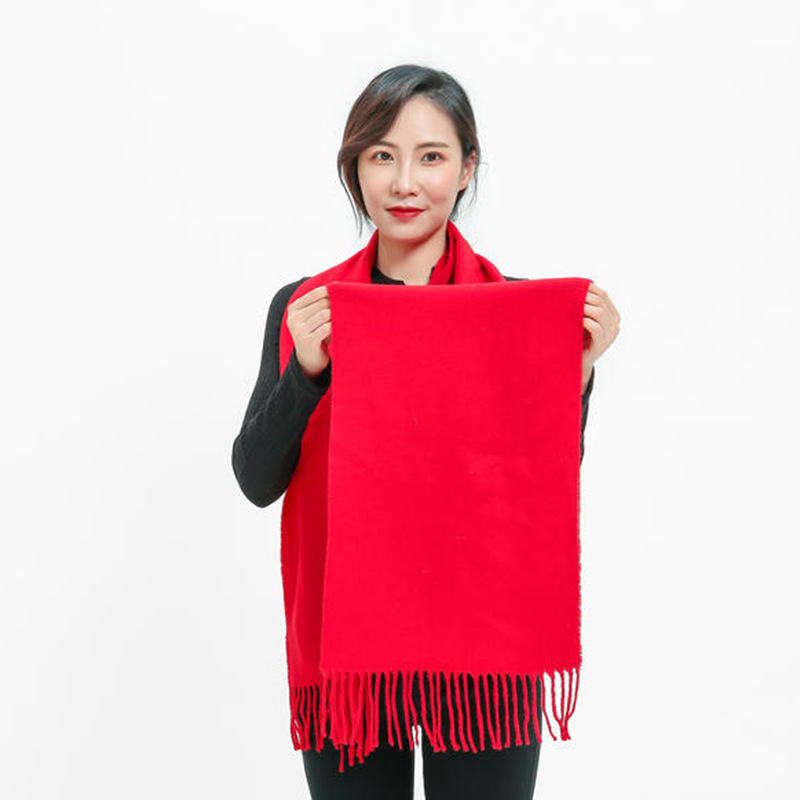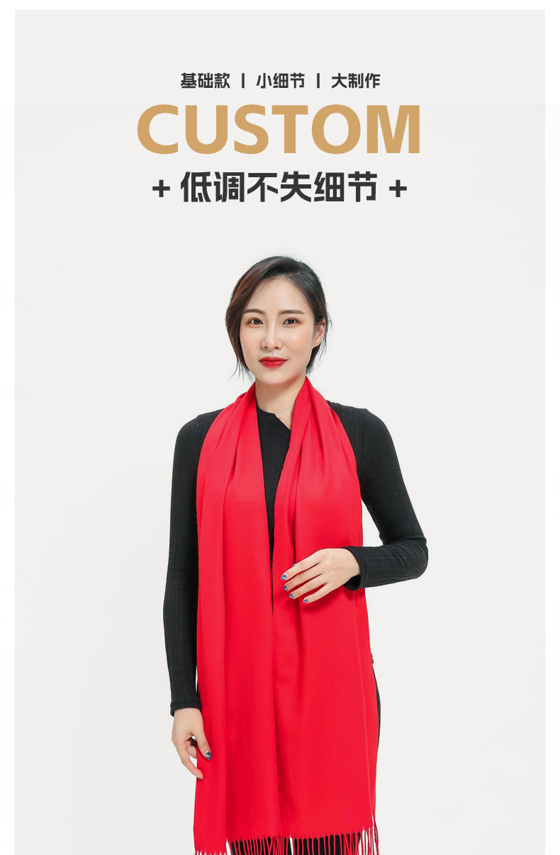 중국산 빨간 스카프 자수 로고 인쇄 회사 연례 행사 동창회 결혼식 제작 캐시미어 빨간 스카프