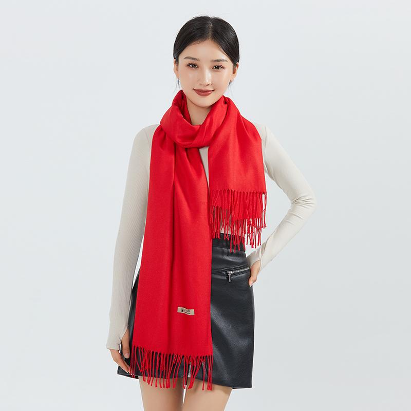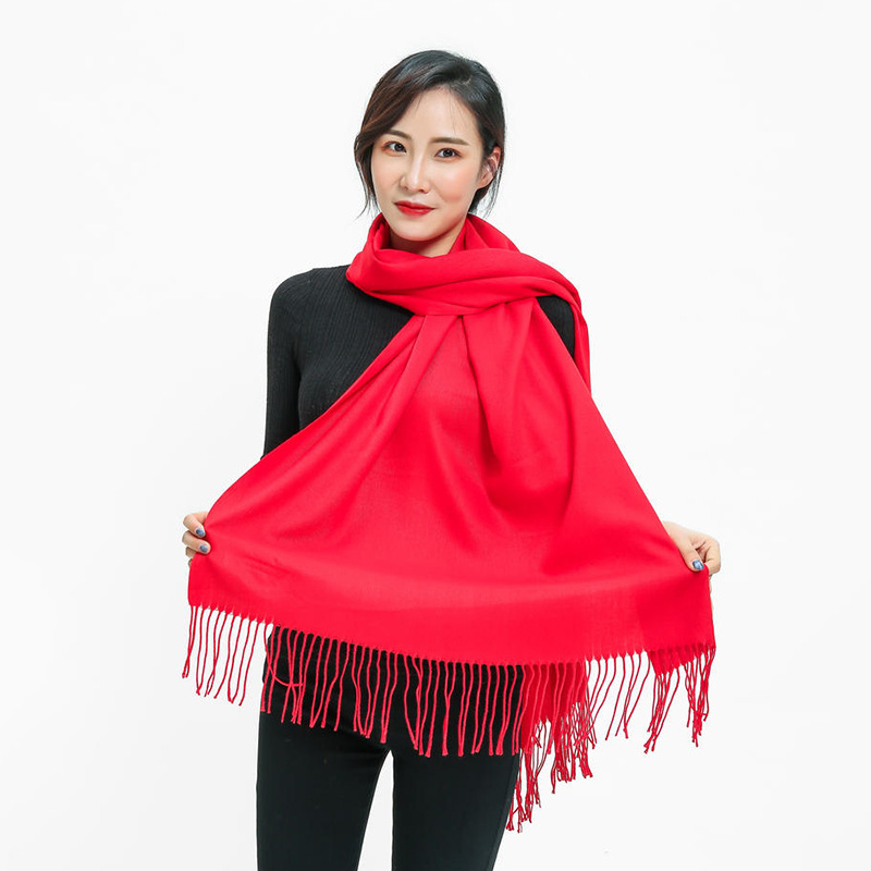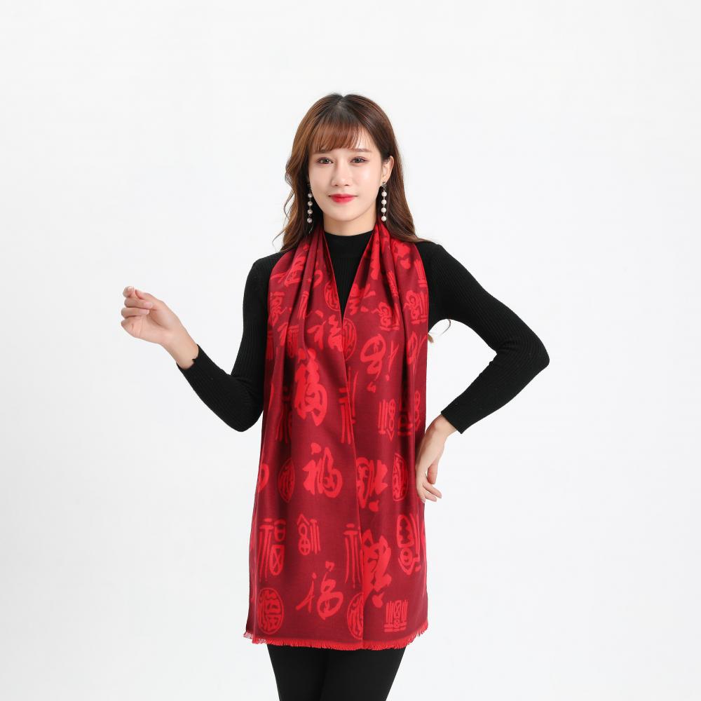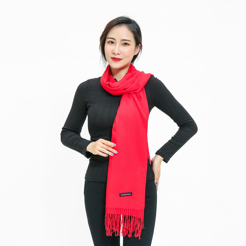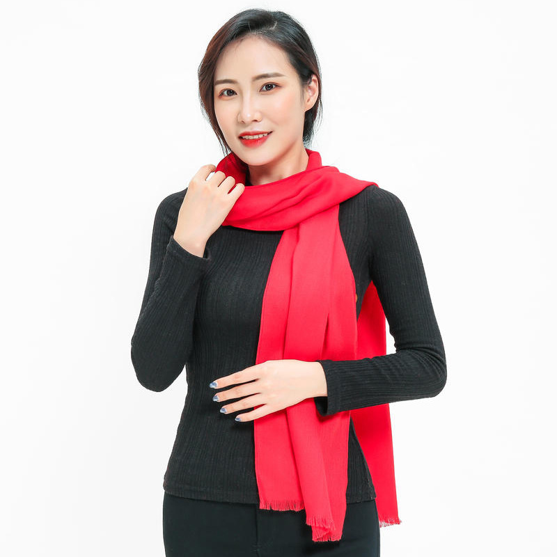 중국산 빨간 스카프 자수 로고 인쇄 회사 연례 행사 동창회 결혼식 제작 캐시미어 빨간 스카프