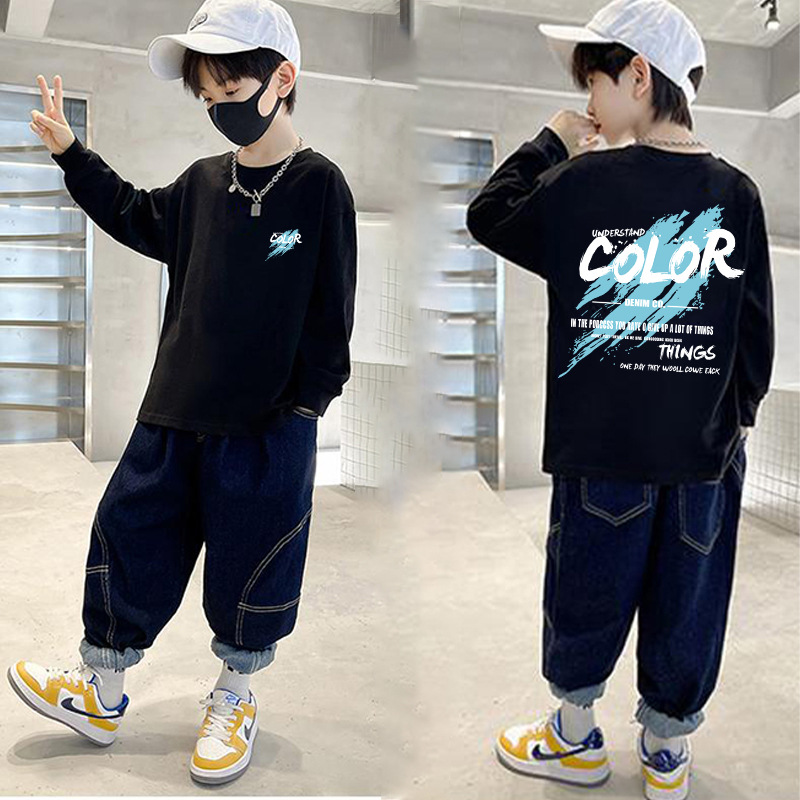 220g 순면 무거운 무게 아동복 소년 티셔츠 긴 소매 가을 어린이 큰 소년 코트 반소매 바닥 셔츠스토어 가기